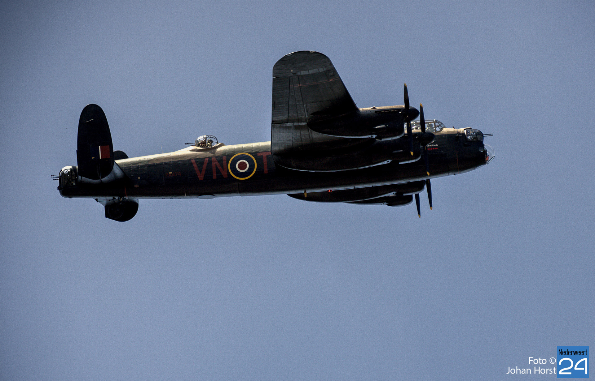 Ruim 77 jaar na de bevrijding van Zuid-Nederland vond woensdagmiddag in Heythuysen een flypast plaats van de authentieke AVRO Lancaster bommenwerper PA474 van de Battle of Britain Memorial Flight.