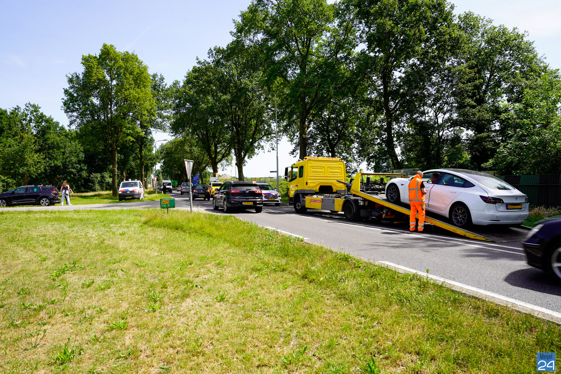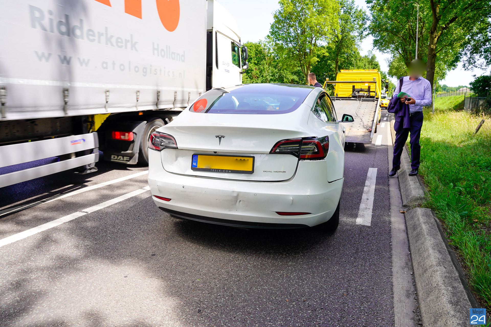 Inmiddels is de weg weer vrijgegeven. Een berger heeft de beschadigde voertuigen opgehaald.
