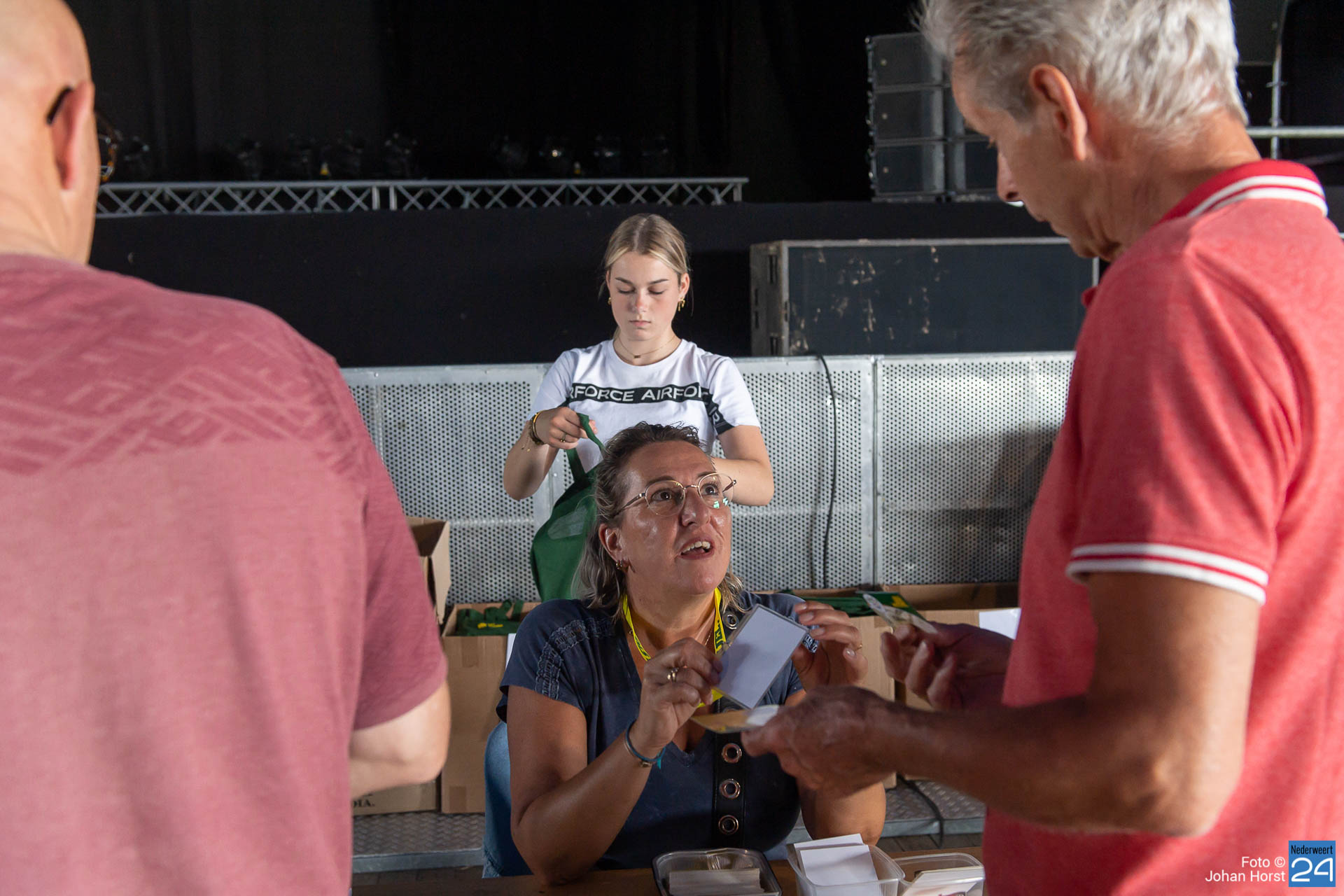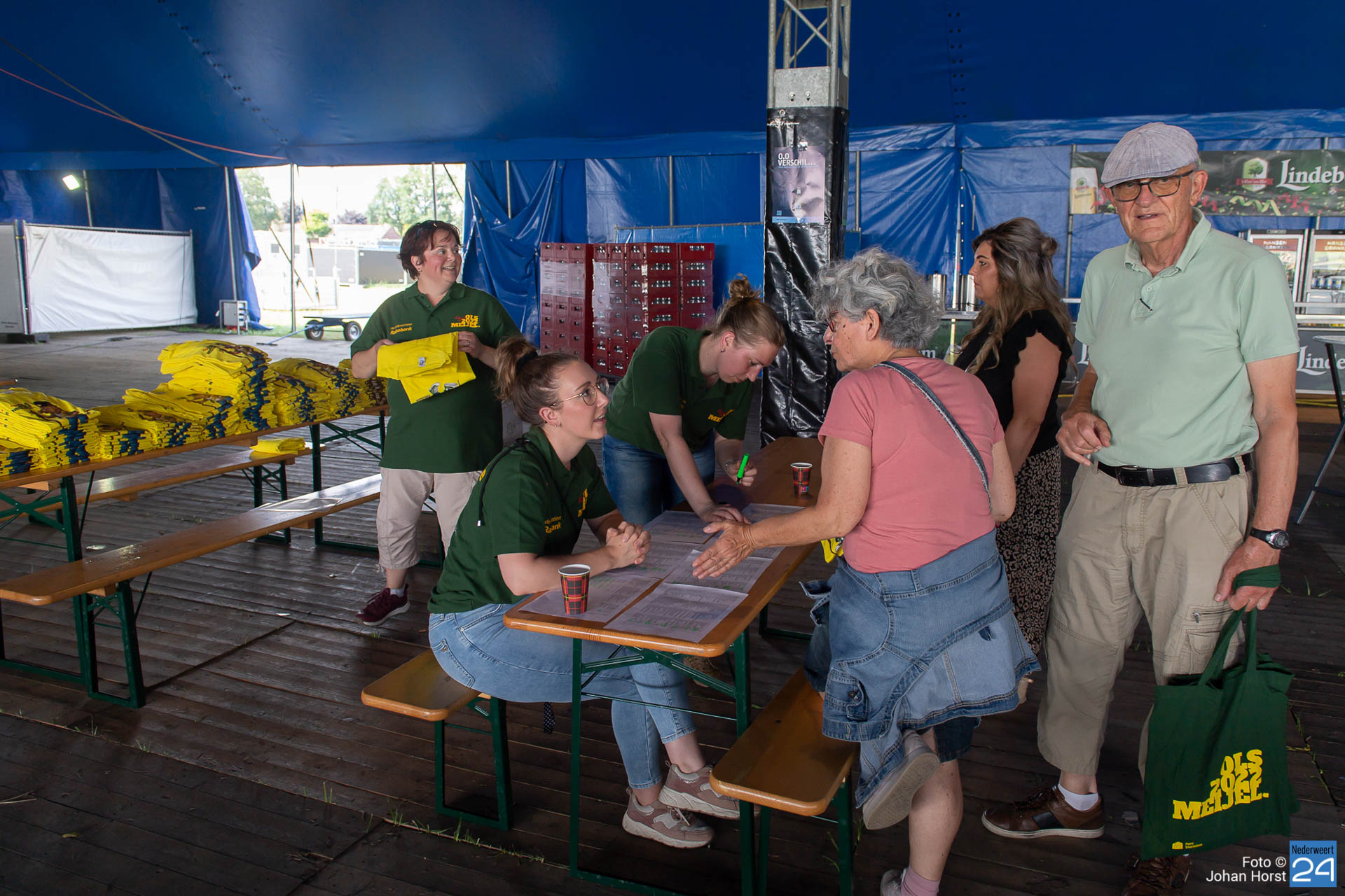 Gisteren werden de werksets voor de vrijwilligers uitgereikt. Alle vrijwilligers kregen op de infodag een tas met informatie over het OLS, een T-shirt, een keycord en een badge. Daarmee zijn ze allemaal goed herkenbaar op de dagen van het OLS in Meijel.