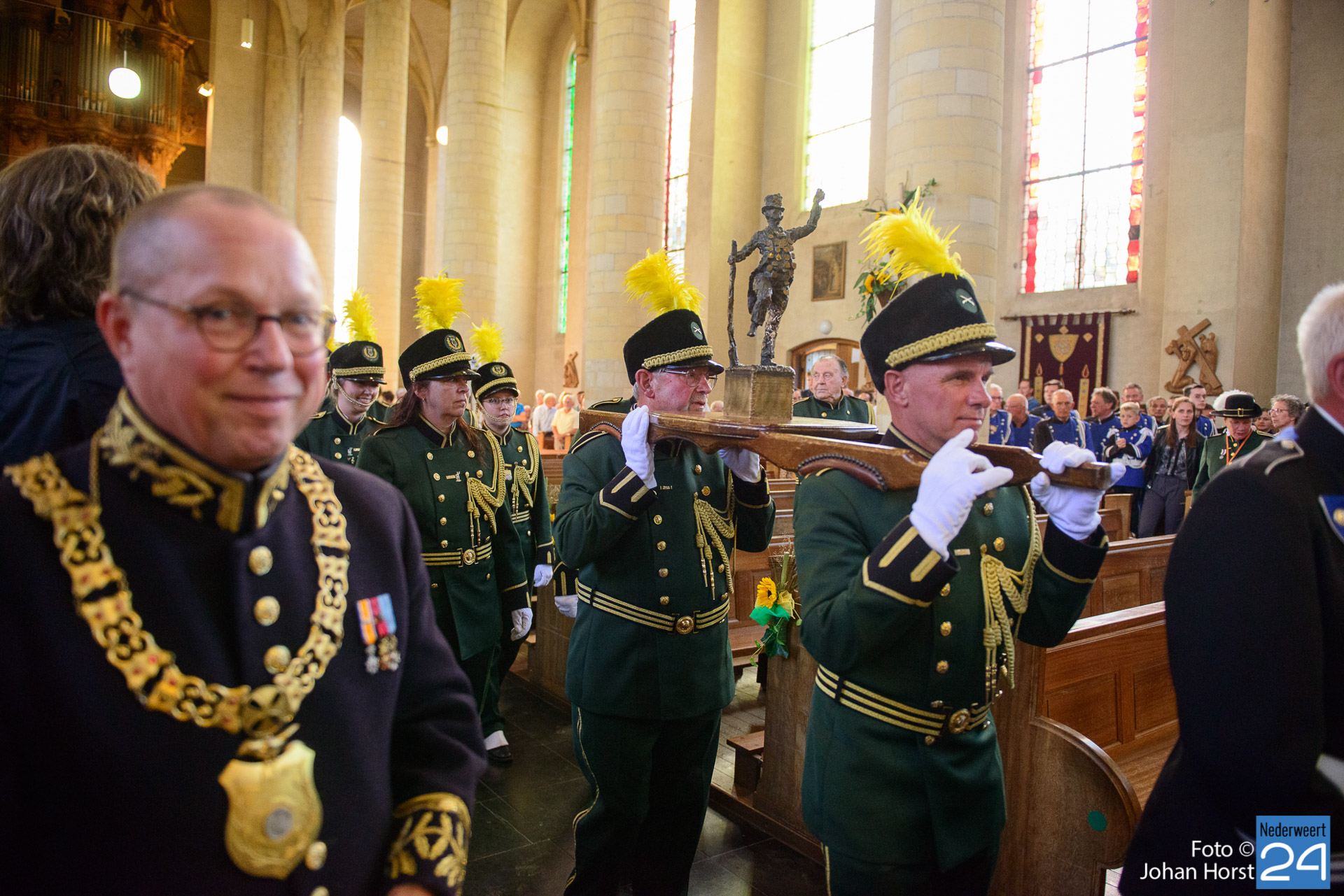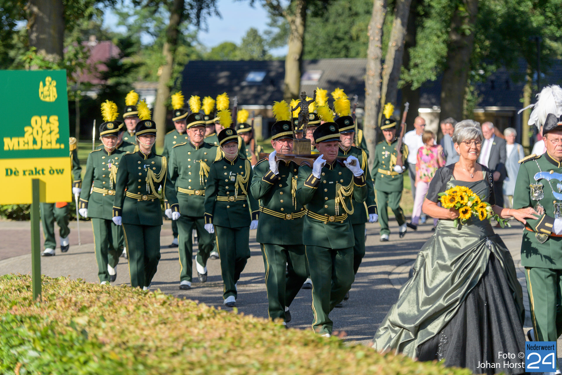 Traditiegetrouw wordt er ieder jaar één dag voor het OLS een Heilige Mis georganiseerd. Er bestaat hiervoor in Meijel geen mooier decor dan onze prachtige gerestaureerde St. Nicolaaskerk, die op deze avond uitbundig uitverlicht en versierd zal zijn in de kleuren groen en geel; de kleuren van onze Schutterij St. Willibrordus.