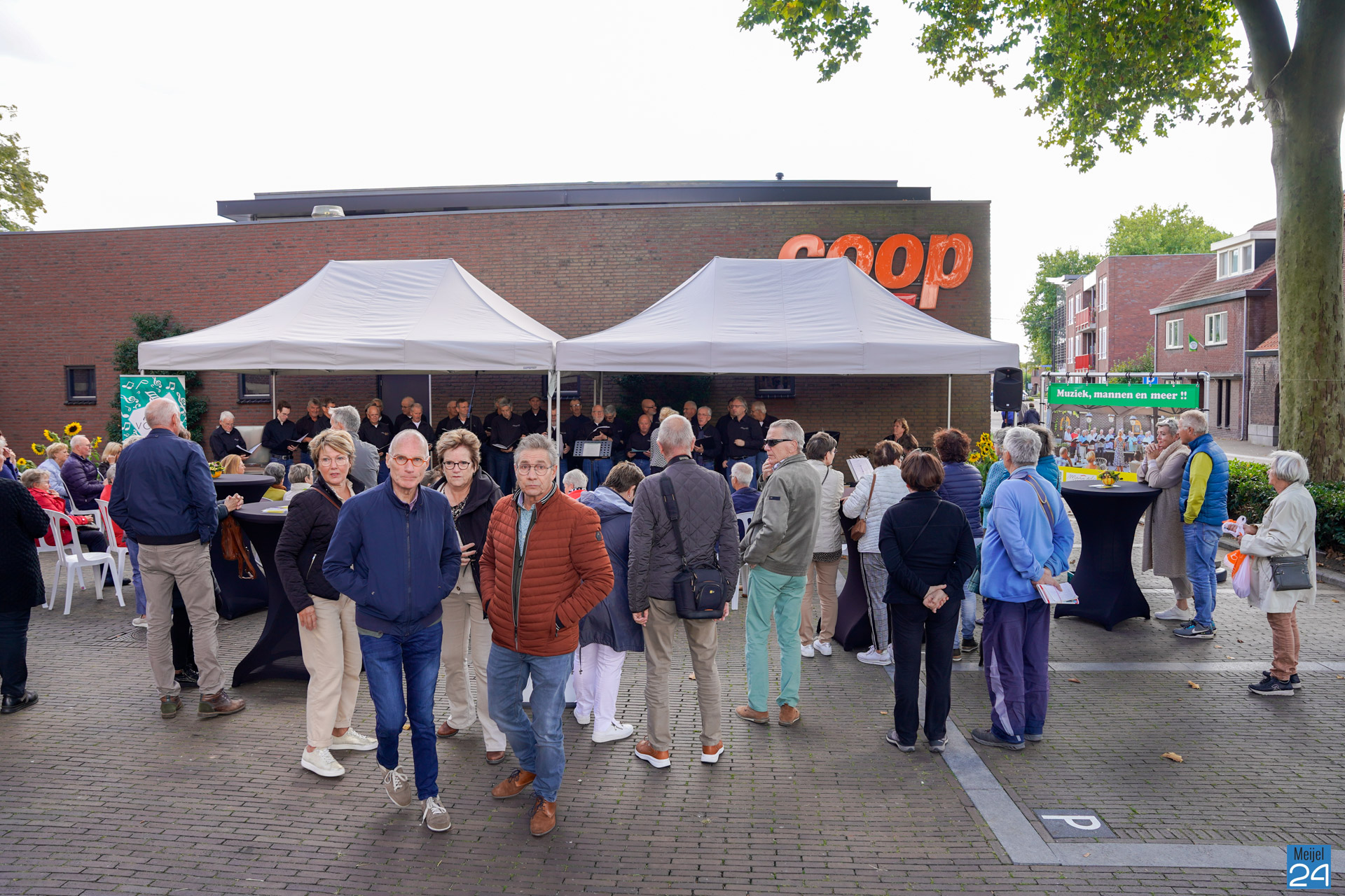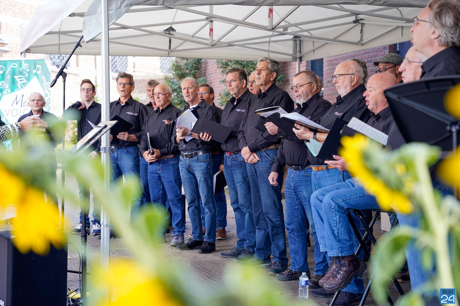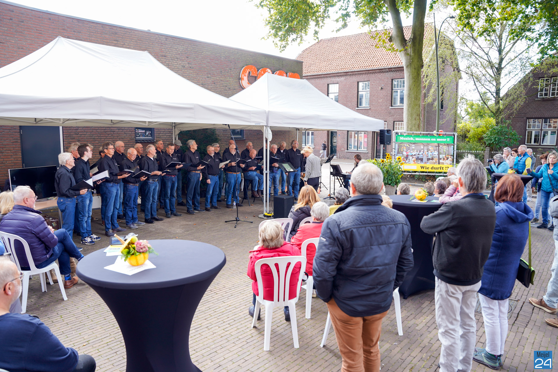 Zondag gaf het Meijels Mannenkoor Méél Voices een drietal buiten concerten tijdens het Oogstdankfeest in Meijel. Het was gezellig druk in het dorp.