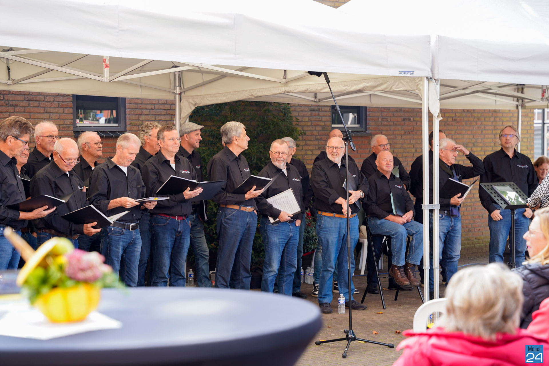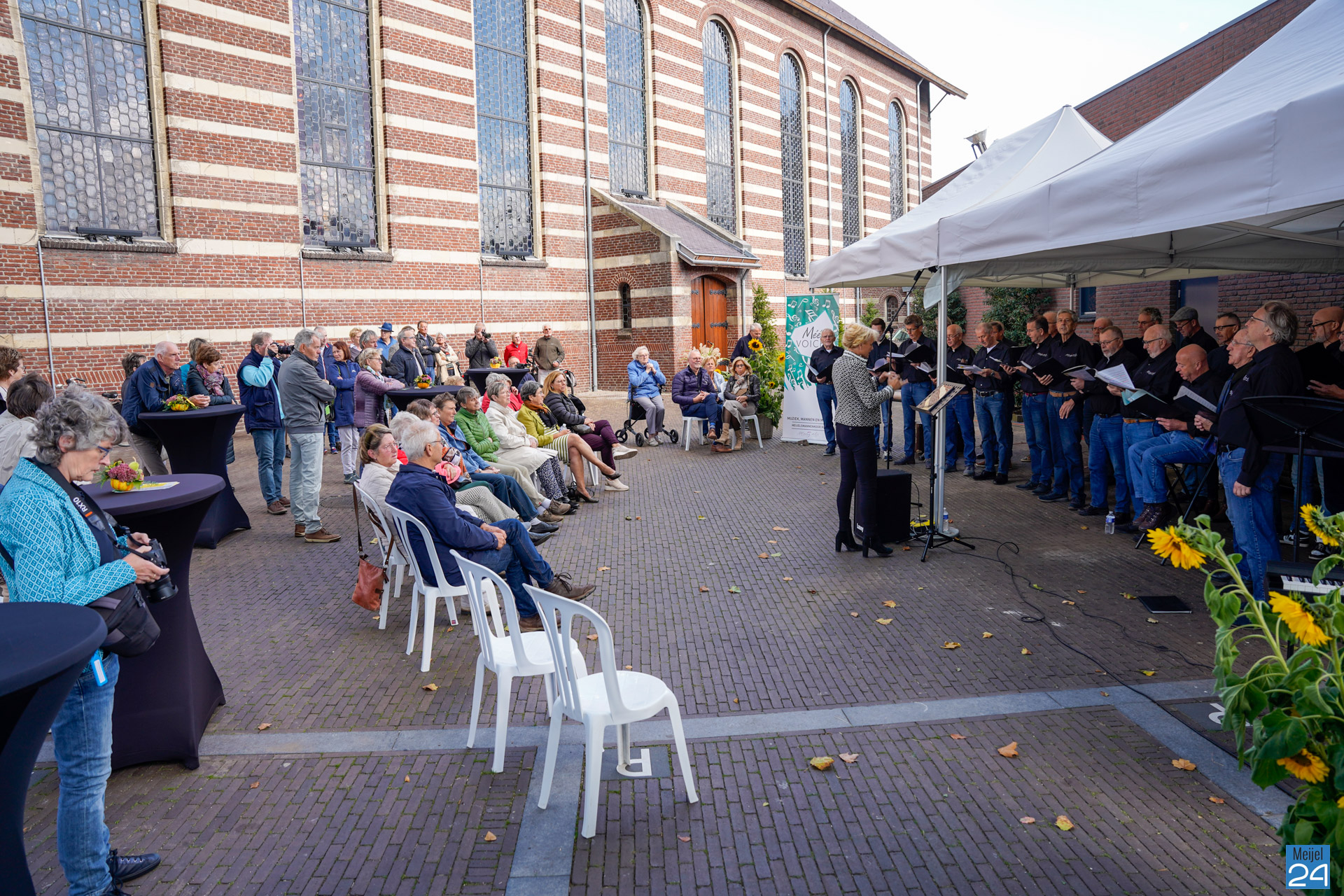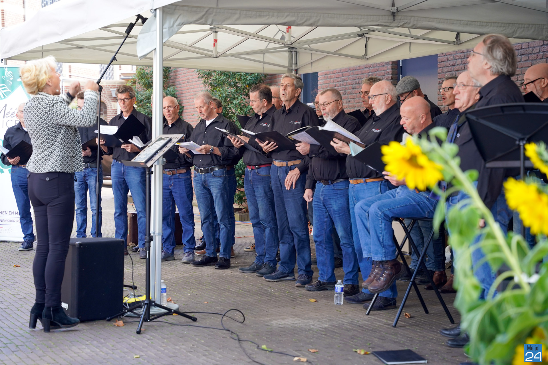 Zondag gaf het Meijels Mannenkoor Méél Voices een drietal buiten concerten tijdens het Oogstdankfeest in Meijel. Het was gezellig druk in het dorp.