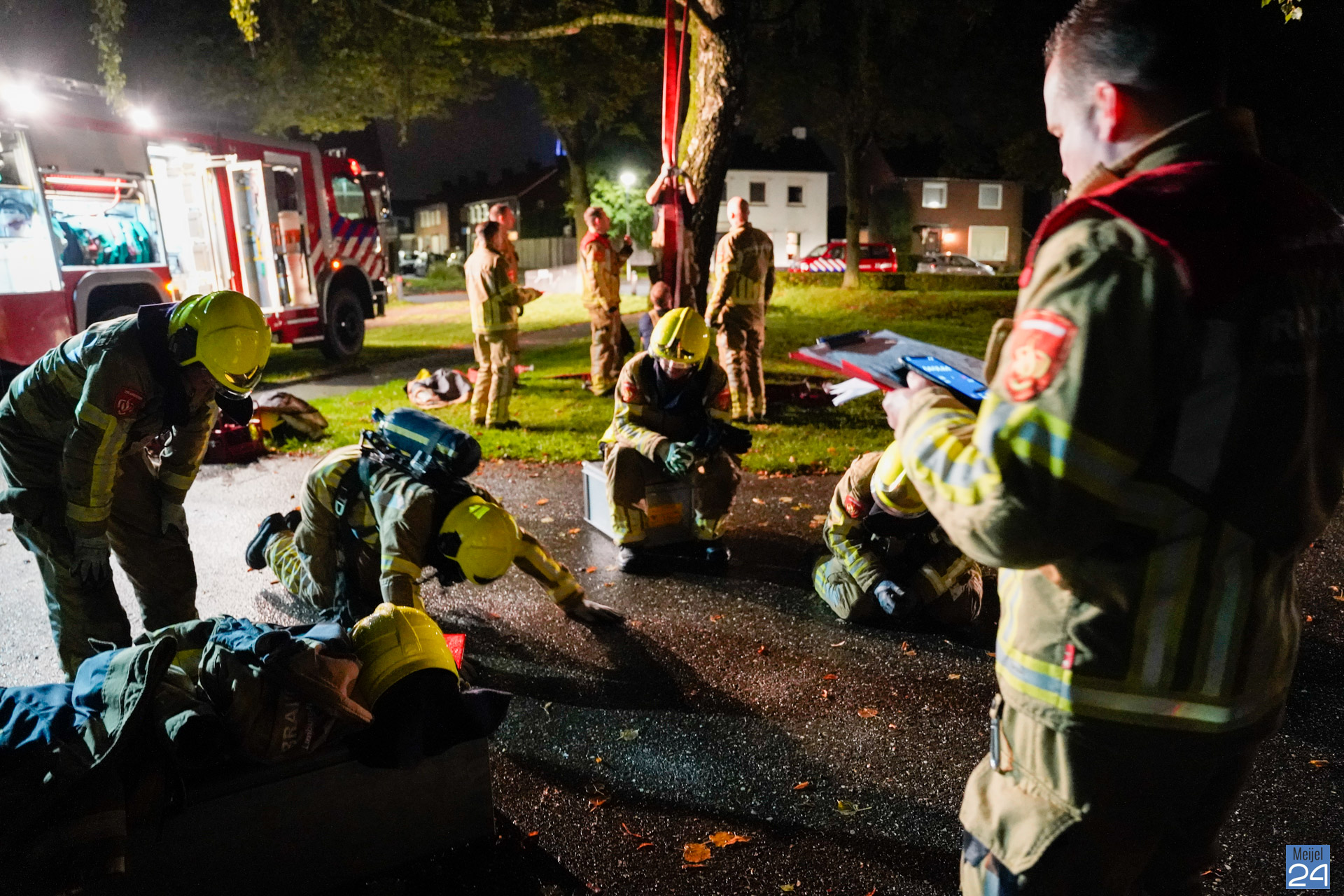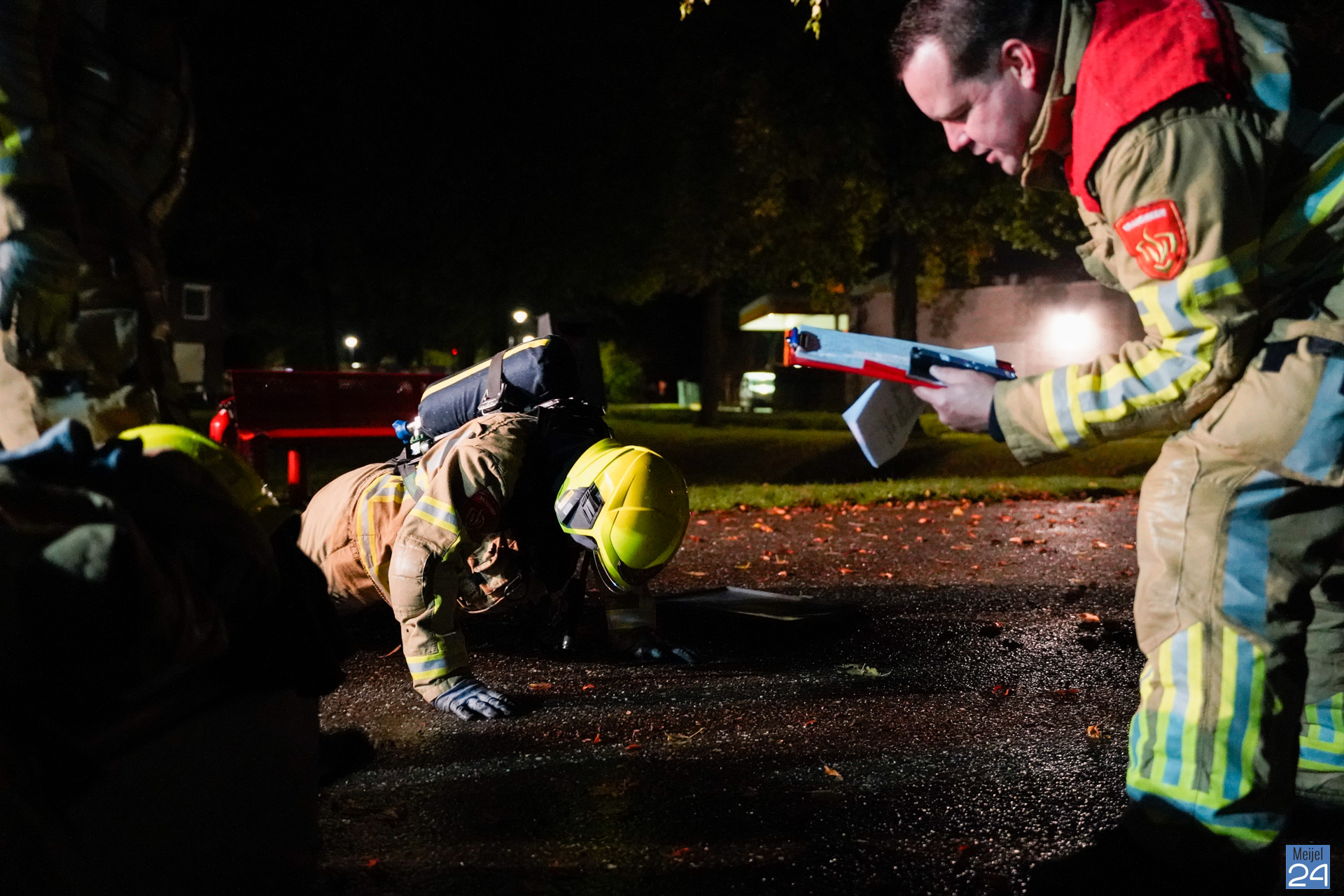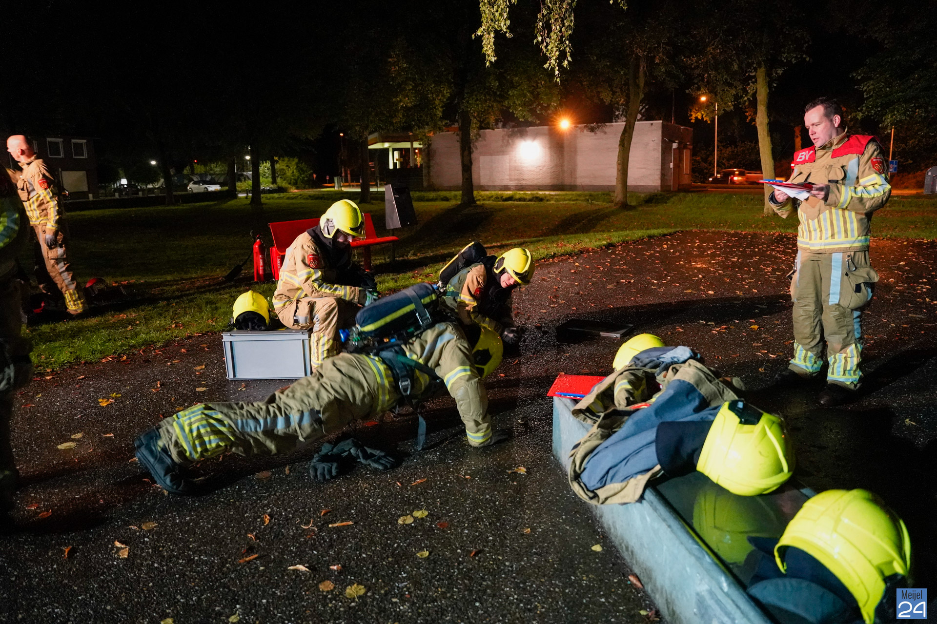 Maandagavond werden er verschillende oefeningen uitgezet op het grasveld aan de Trambaan in Meijel. De vrijwilligers uit Meijel en Panningen gingen samen aan de slag om verschillende opdrachten uit te voeren. Op een ludieke wijze werd de conditie op de proef gesteld. ”Iedereen was erg fanatiek en we vonden het een mooie samenwerkingsoefening. Een keer wat anders als een normale inzet,” aldus één van de betrokkenen.