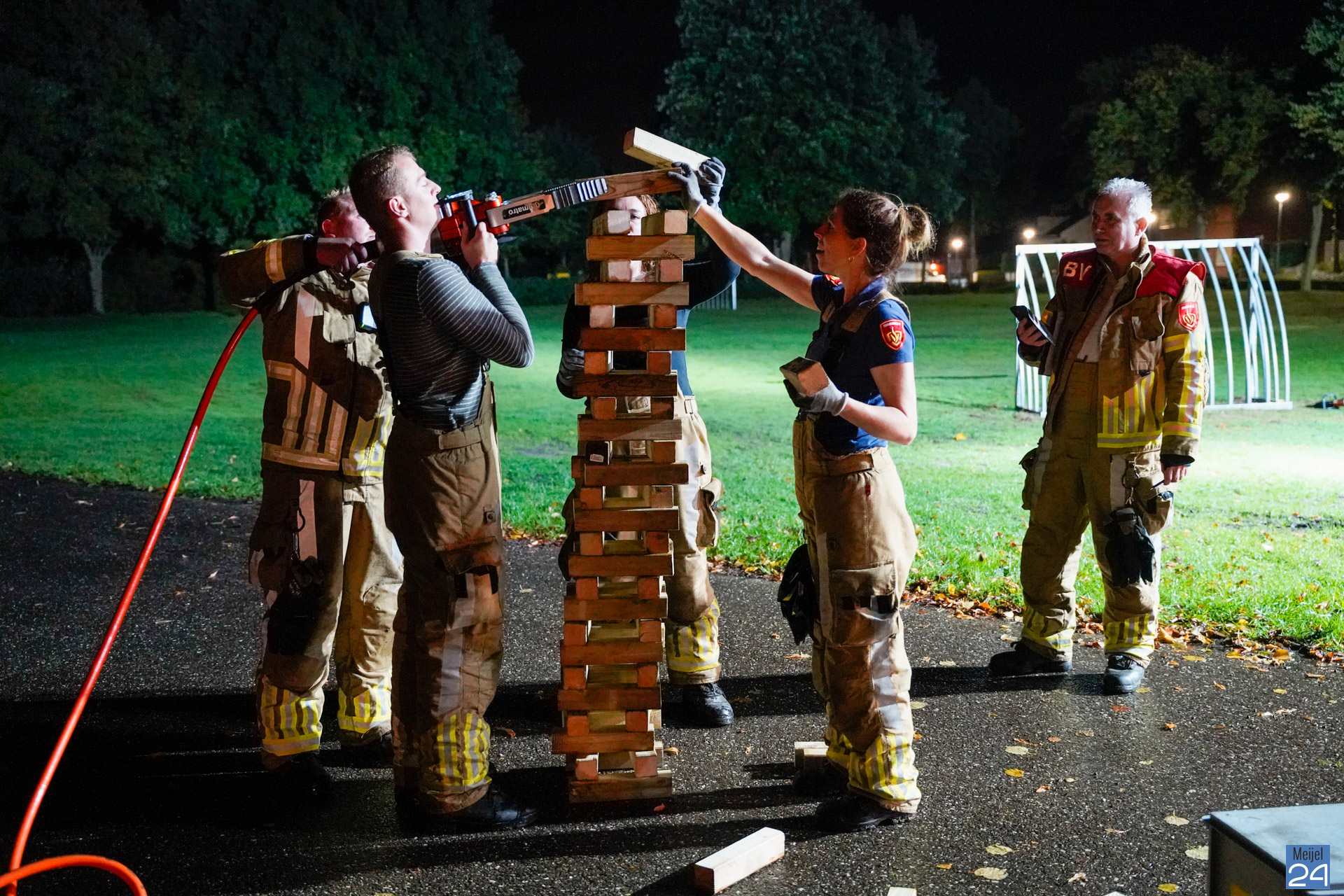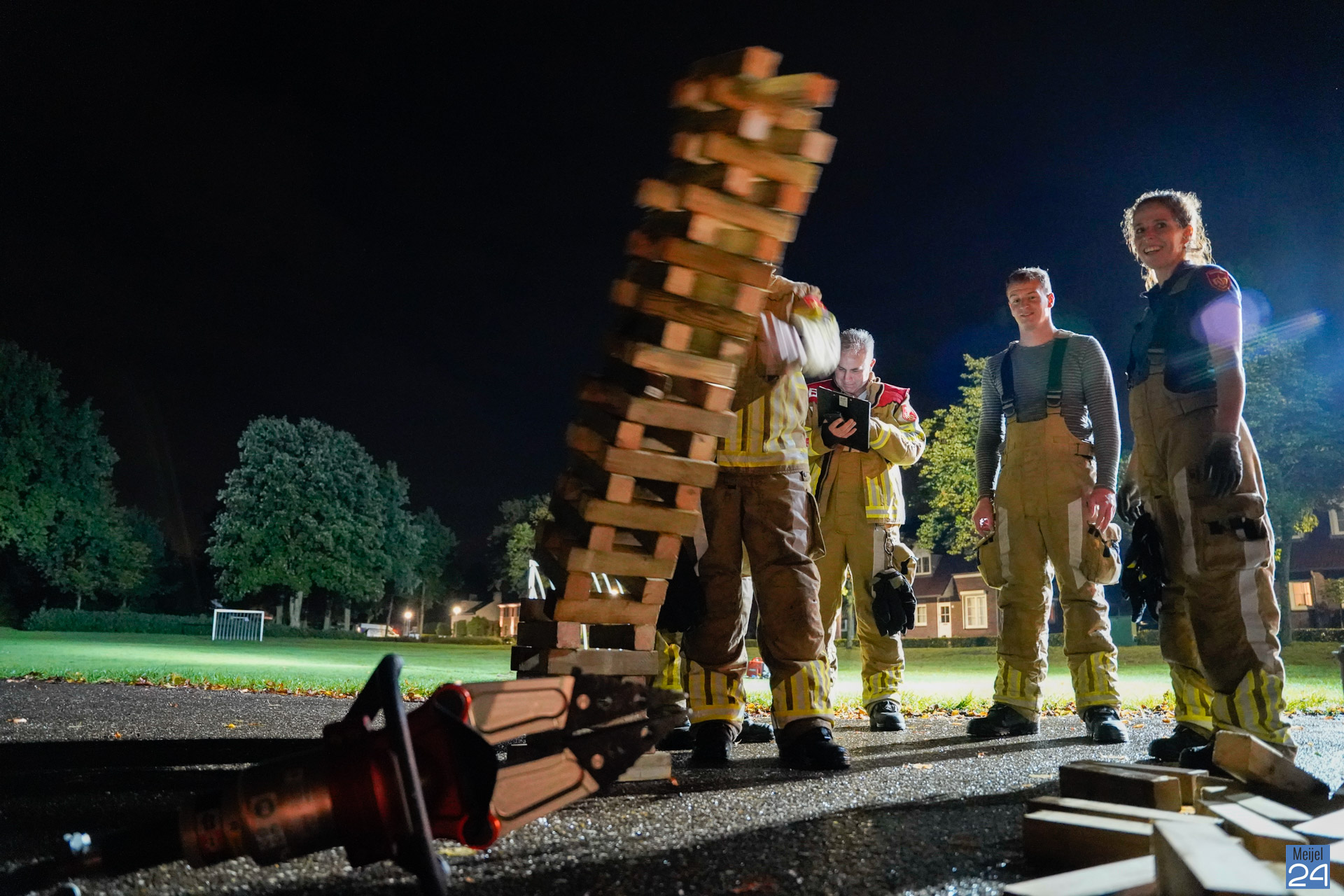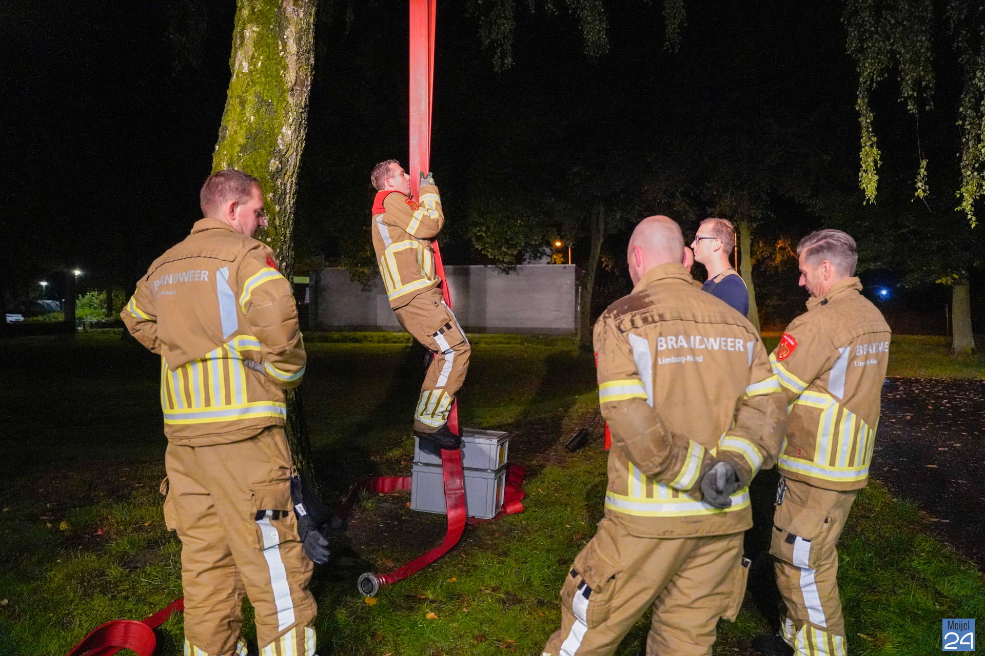 Maandagavond werden er verschillende oefeningen uitgezet op het grasveld aan de Trambaan in Meijel. De vrijwilligers uit Meijel en Panningen gingen samen aan de slag om verschillende opdrachten uit te voeren. Op een ludieke wijze werd de conditie op de proef gesteld. ”Iedereen was erg fanatiek en we vonden het een mooie samenwerkingsoefening. Een keer wat anders als een normale inzet,” aldus één van de betrokkenen.