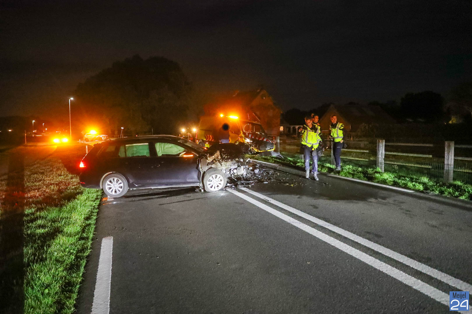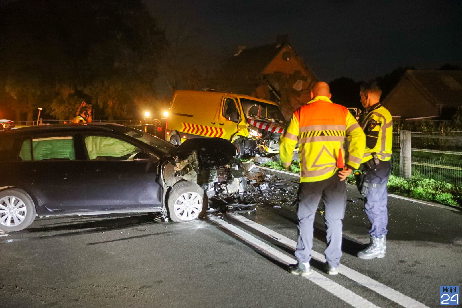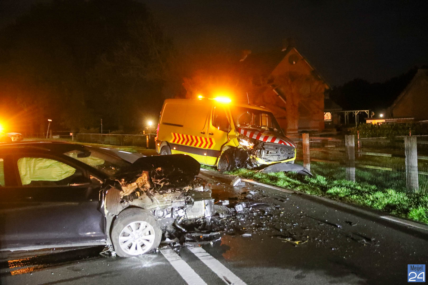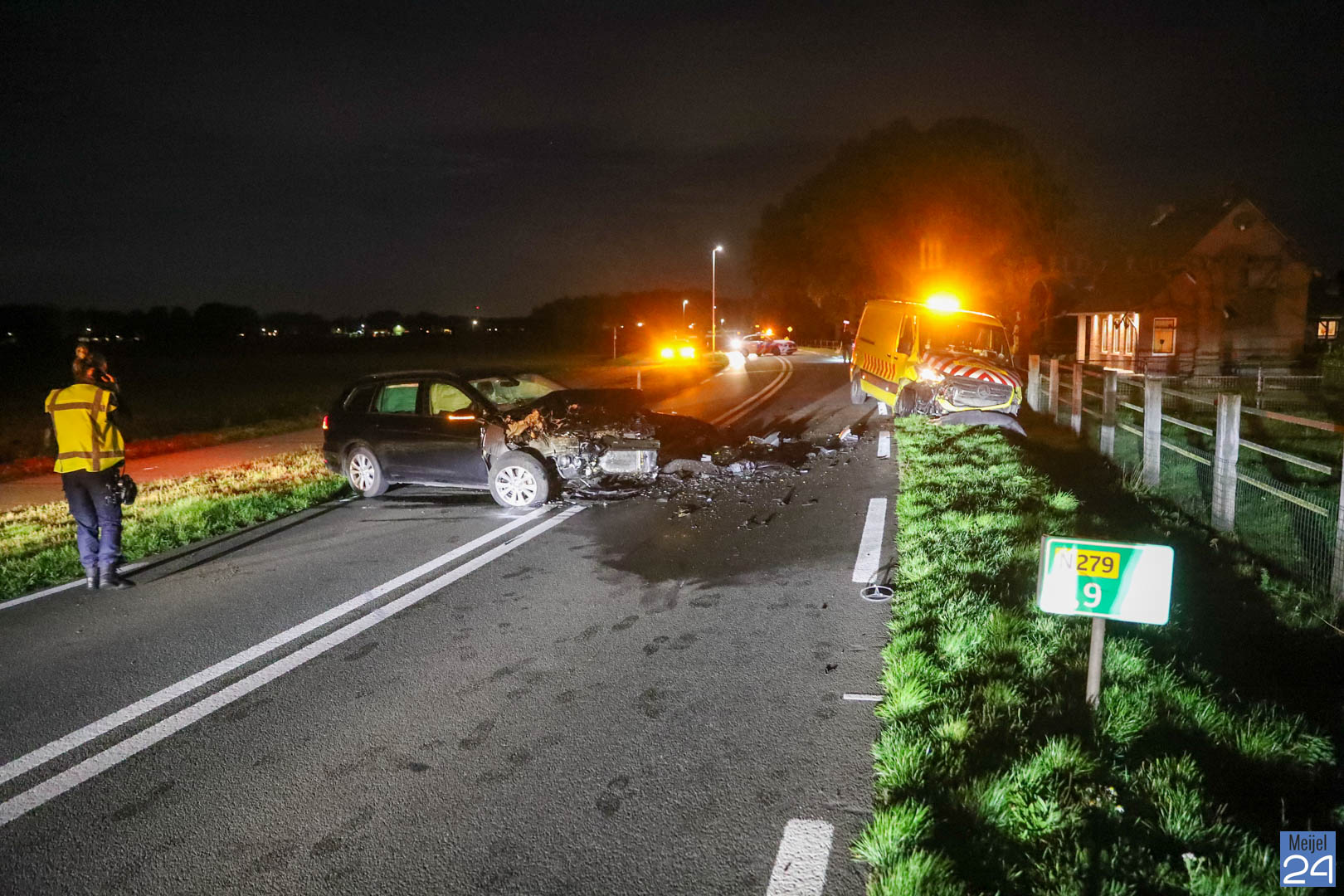 Maandagavond, rond kwart voor acht, zijn een bestelbus en een personenauto frontaal met elkaar in botsing geraakt op de Schaapsbrug (N279) in Heibloem.