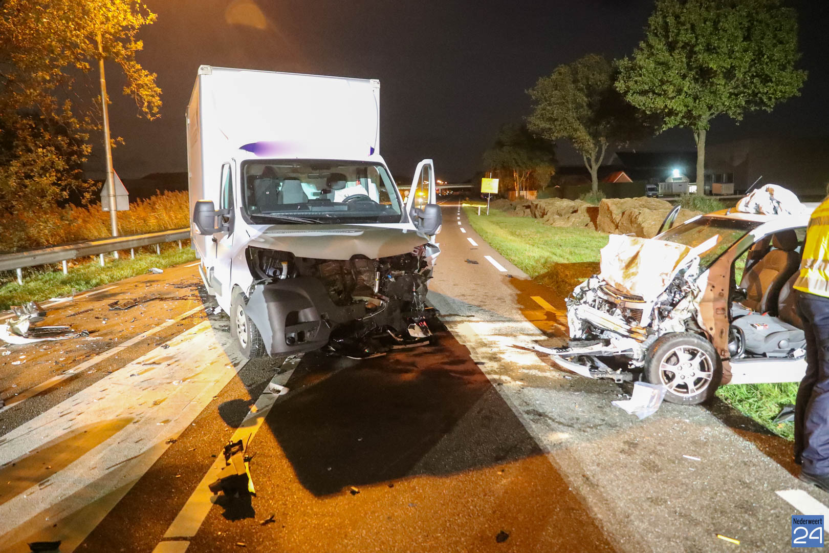 Dinsdagavond, even na half acht, zijn een personenauto en een klein vrachtwagentje frontaal op elkaar gereden op de Kanaaldijk Noord (N266) in Someren.