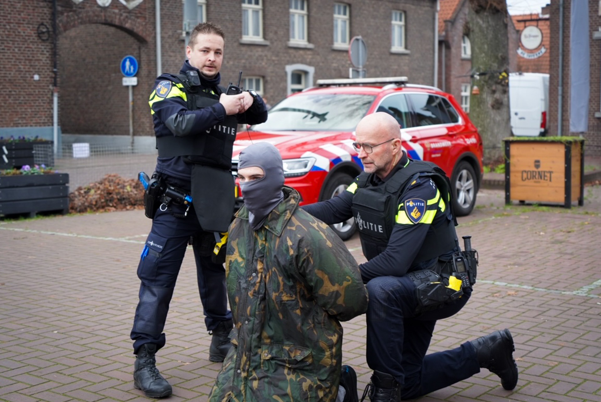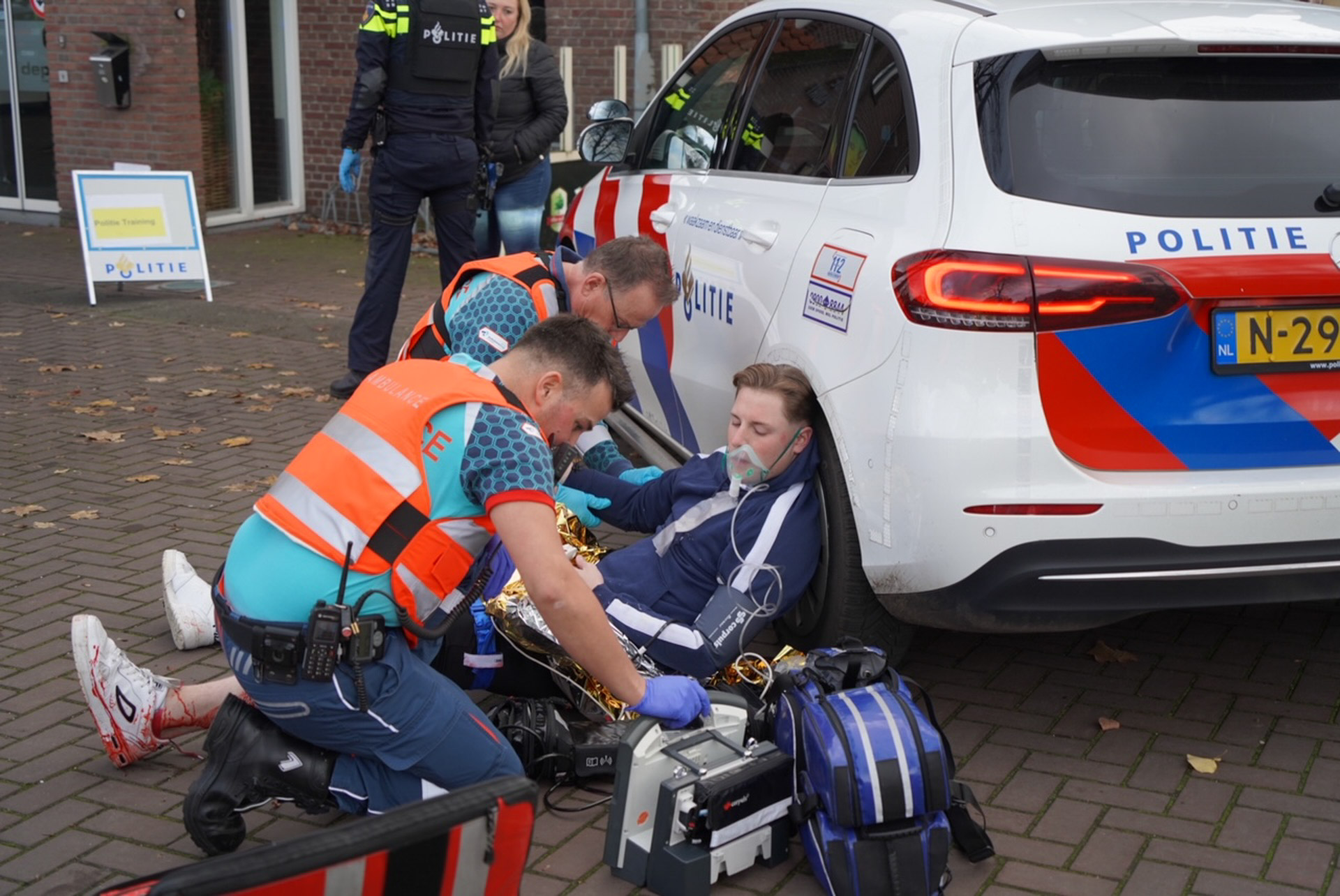 De hulpdiensten waren in grote getalen aanwezig. Zo was de politie met 5 eenheden ter plaatse. Ook deed er een ambulance en een ploeg van de brandweer mee aan de dag. Men had vooraf via social media aangegeven dat er een grote oefening zou plaatsvinden.