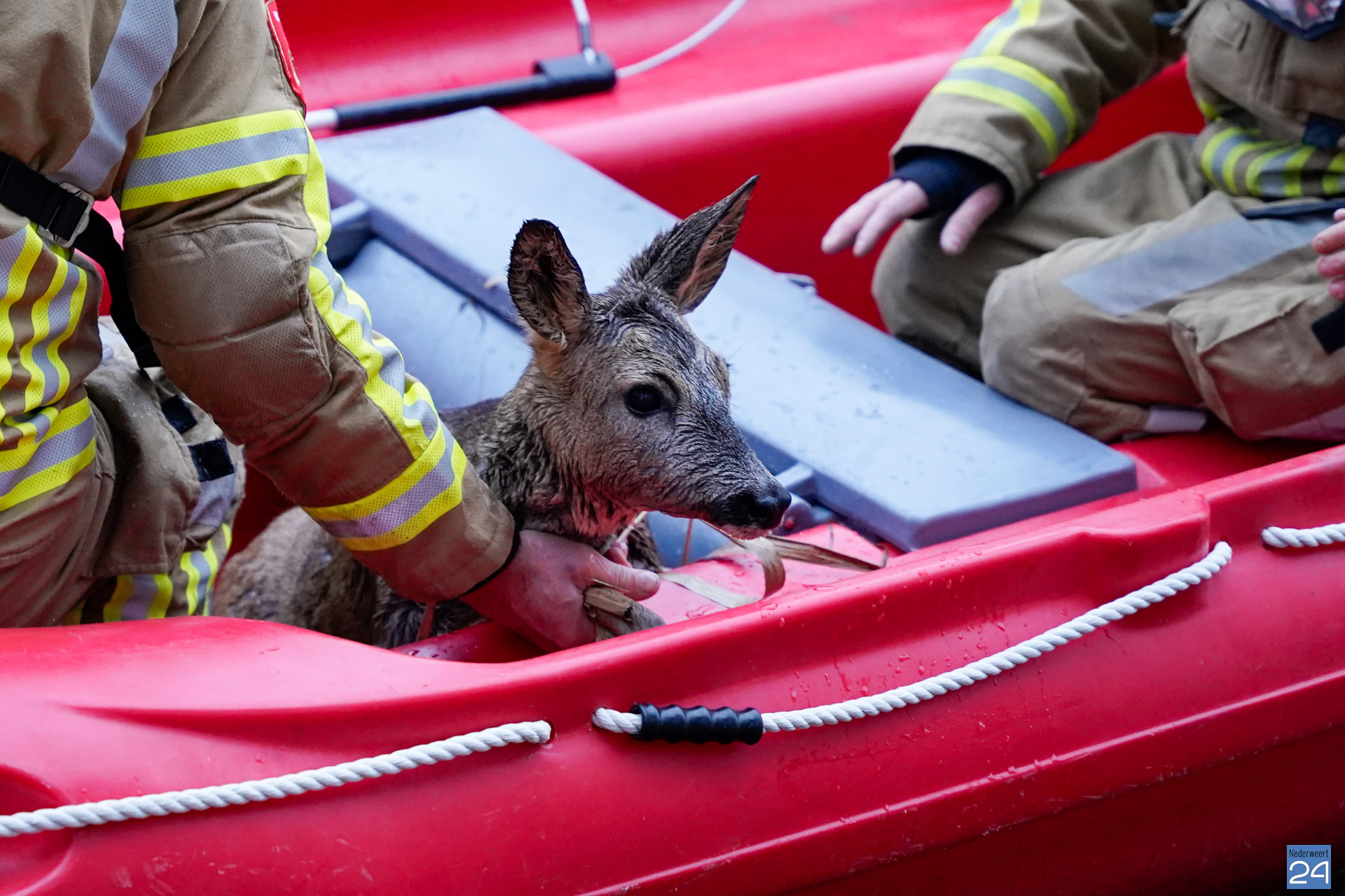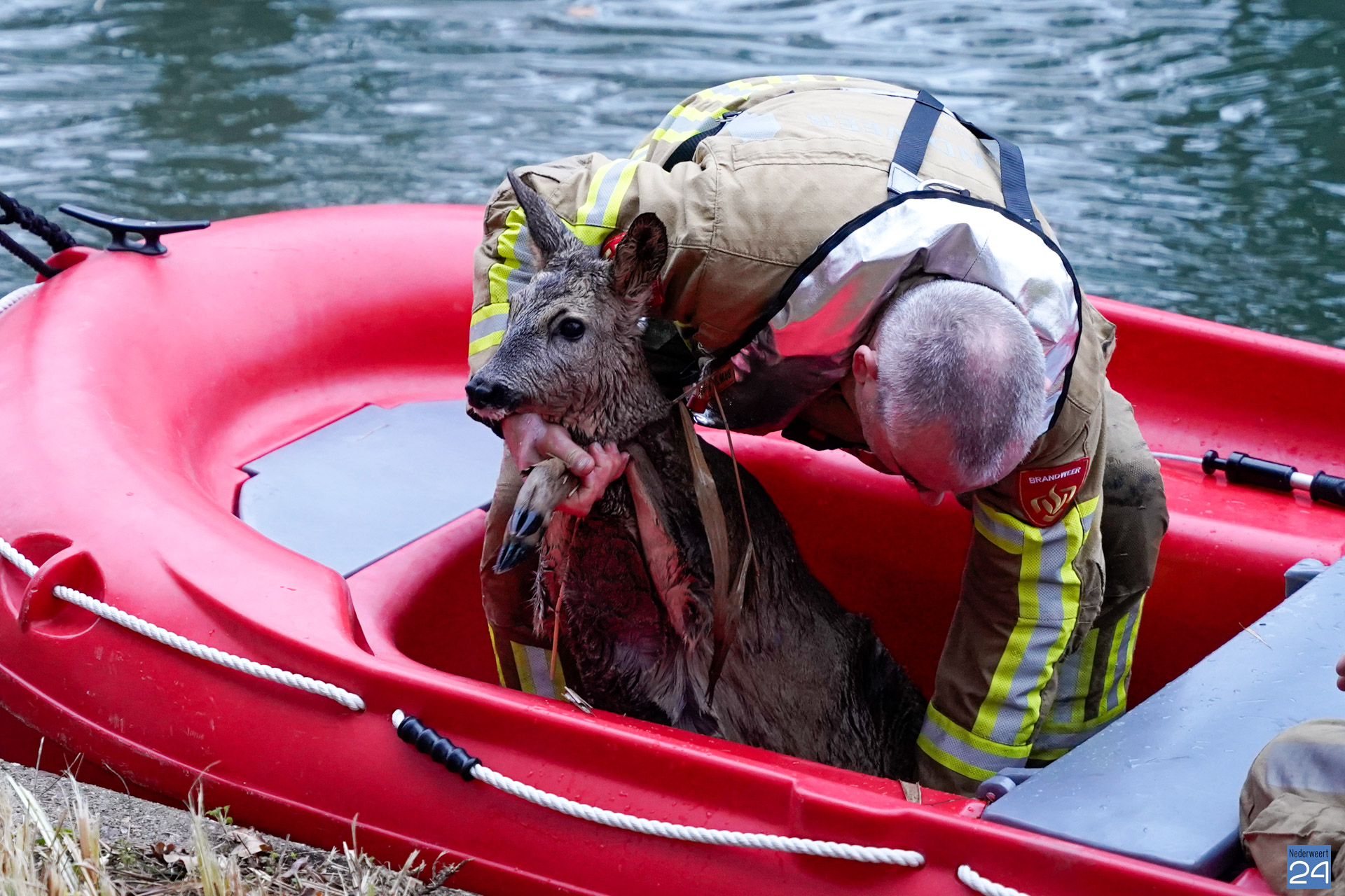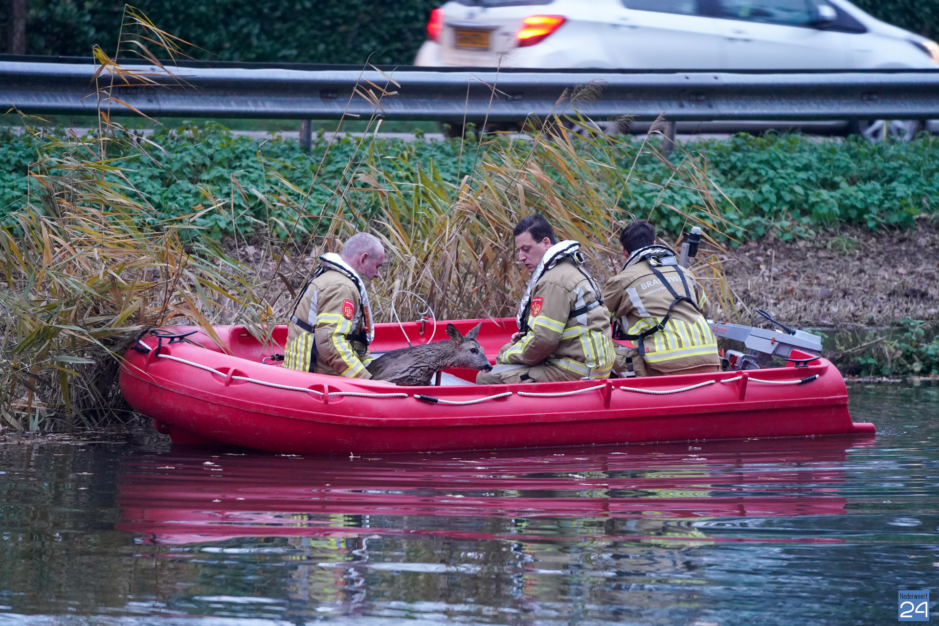 Brandweer redt ree uit Noordervaart in Ospel