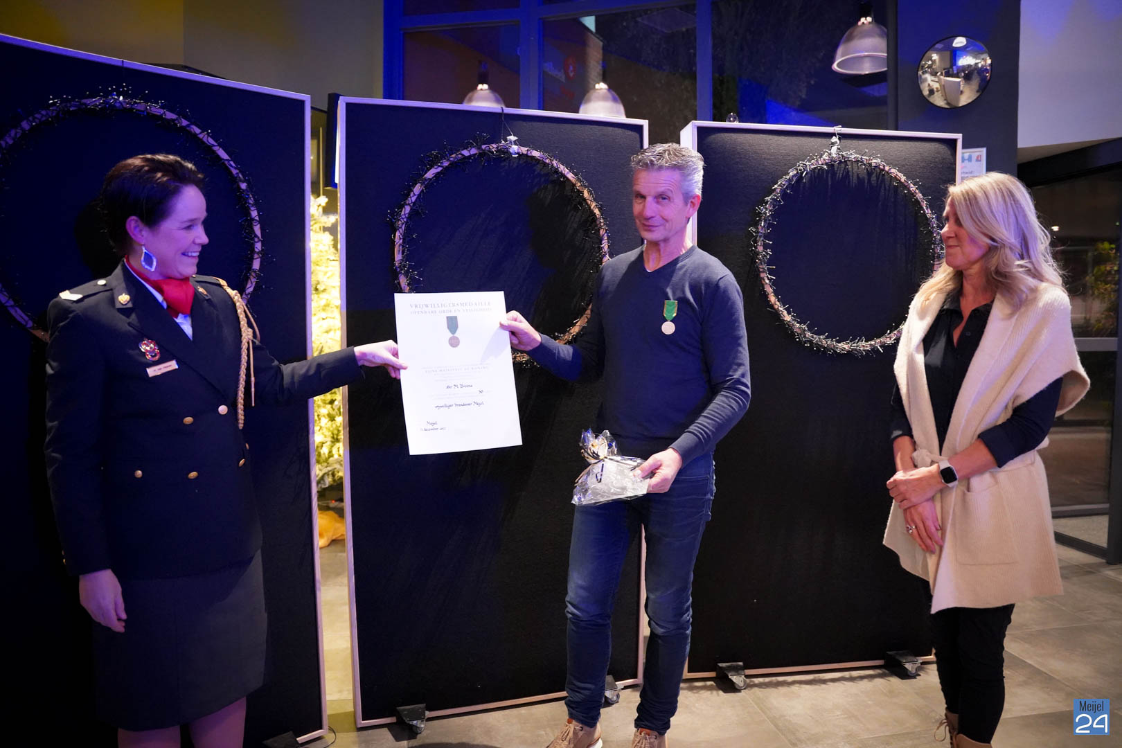 Dit jaar was de avond extra speciaal voor Mart Broens, aangezien hij zijn afscheid bij de brandweer “vierde”. Mart is 30 jaar bij de brandweer geweest waarin hij de eerste jaren zelfs samen met zijn vader Mies actief lid was. Mart is als oud lid ook nog actief. Hij helpt vaak mee met het uitzetten van THV oefeningen. Iedere eerste maandag van de maand is er een oefenavond waarbij alle “oud” leden ook aansluiten en daar is ook Mart een vast gezicht. Tijdens de avond werden herinneringen opgehaald en ook zijn dochter Maud heeft verteld hoe trots ze altijd zijn geweest! Mart heeft gister voor zijn jarenlange inzet een welverdiende vrijwilligers medaille ontvangen.