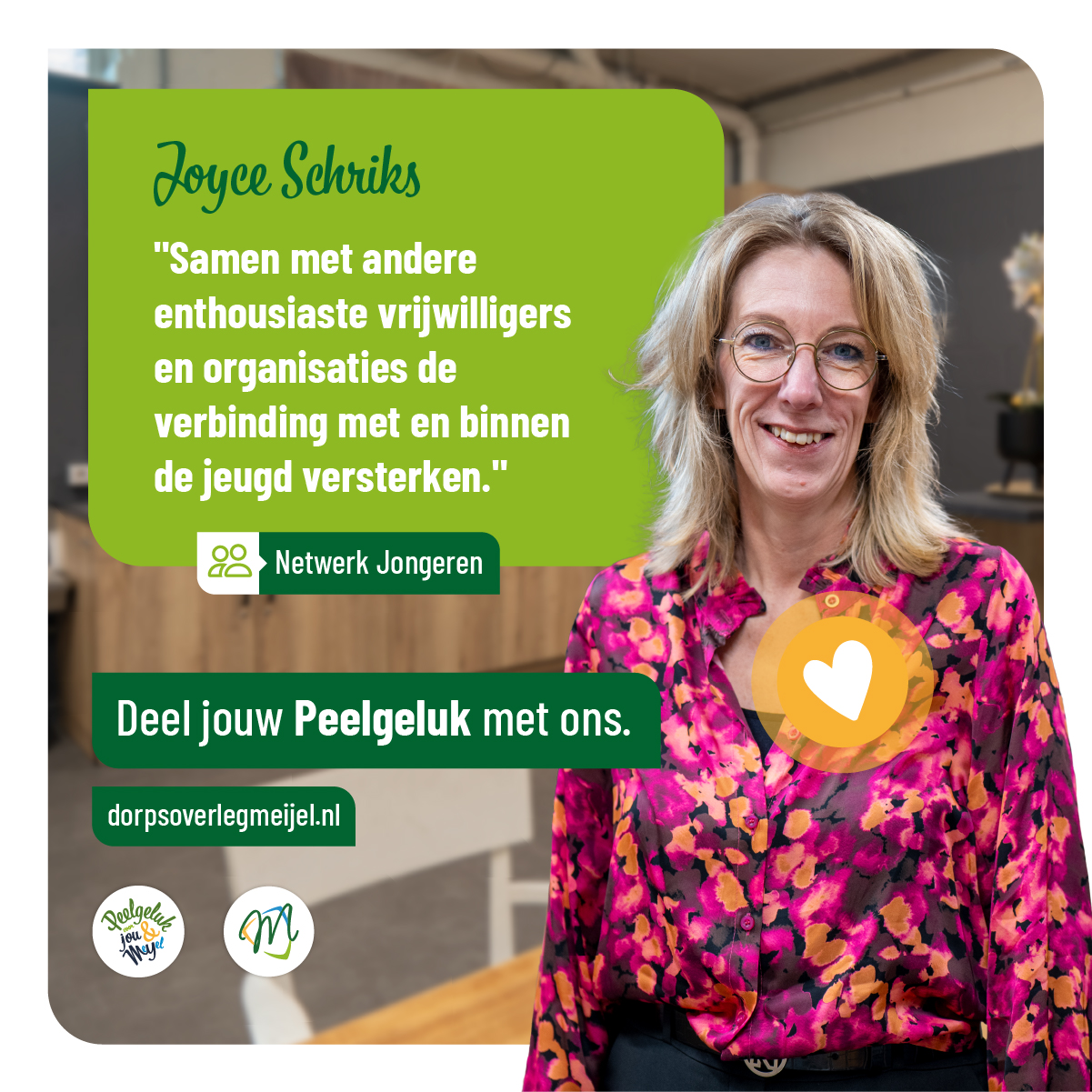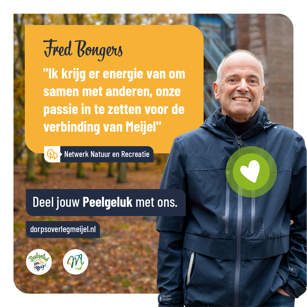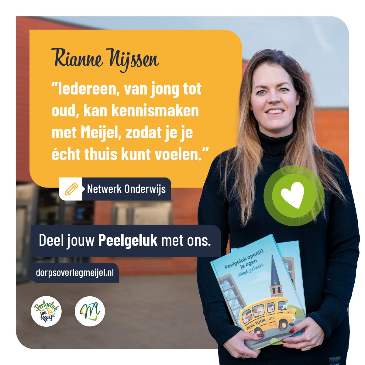 Er gebeurt veel in Meijel om het dorp leefbaar te maken en te houden. Daarom is het goed om hier bij stil te staan. Iedereen kan op zijn of haar manier hieraan bijdragen, zodat we ook in de toekomst op een fijne plek kunnen wonen waar kinderen naar school kunnen gaan, je een boodschap kunt doen of lekker kunt uiteten. Een plek waar we kunnen sporten, recreëren, bezig kunnen zijn met de toekomst, maar ook de Meijelse historie en het dialect behouden. Een plek waar jij je veilig voelt met betrokken dorpsgenoten om je heen.