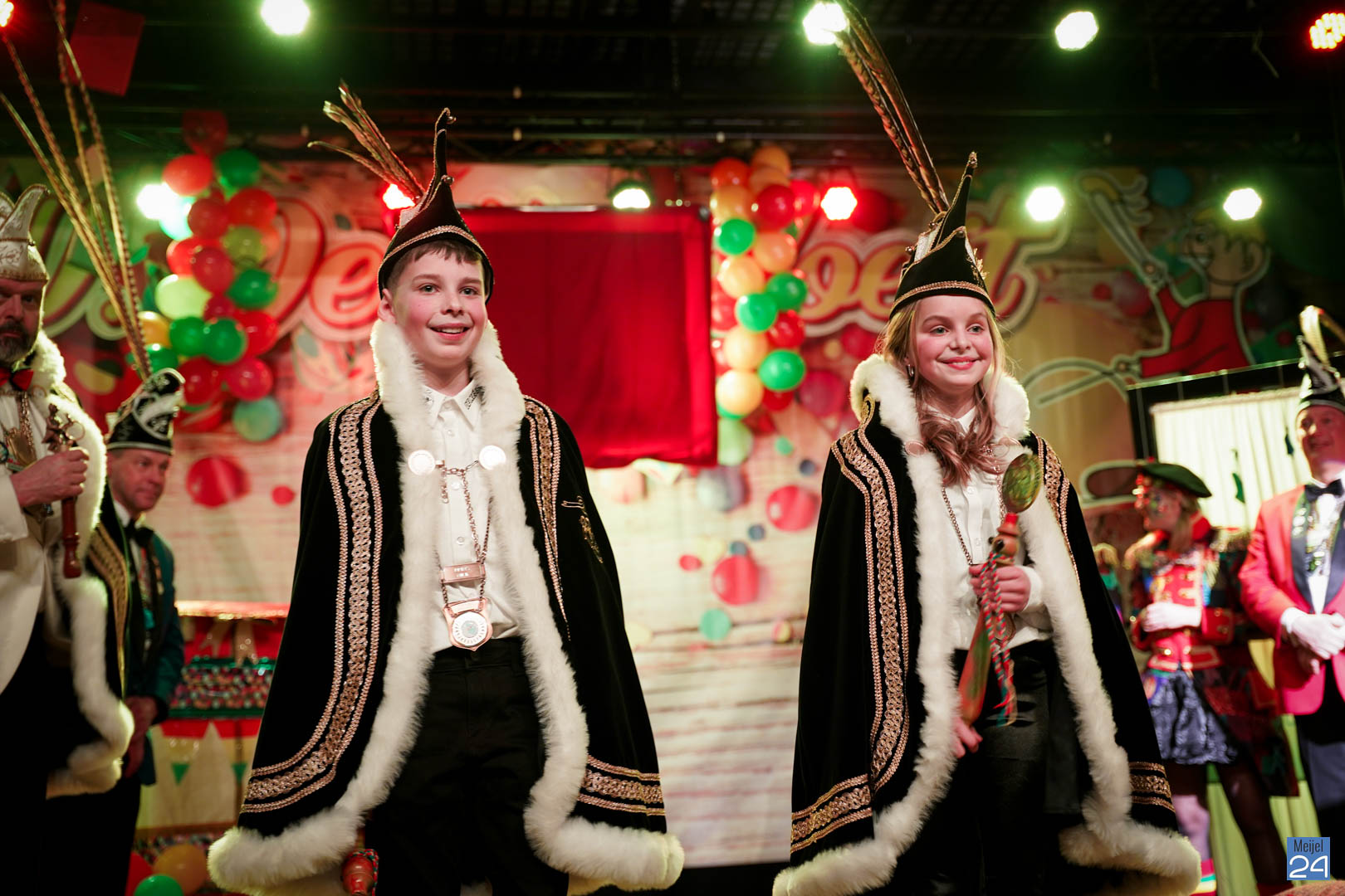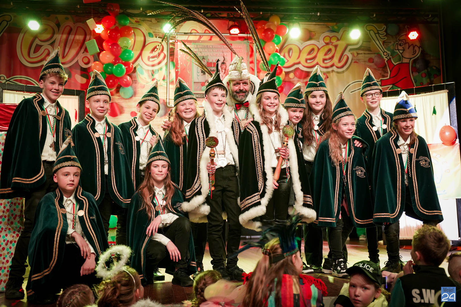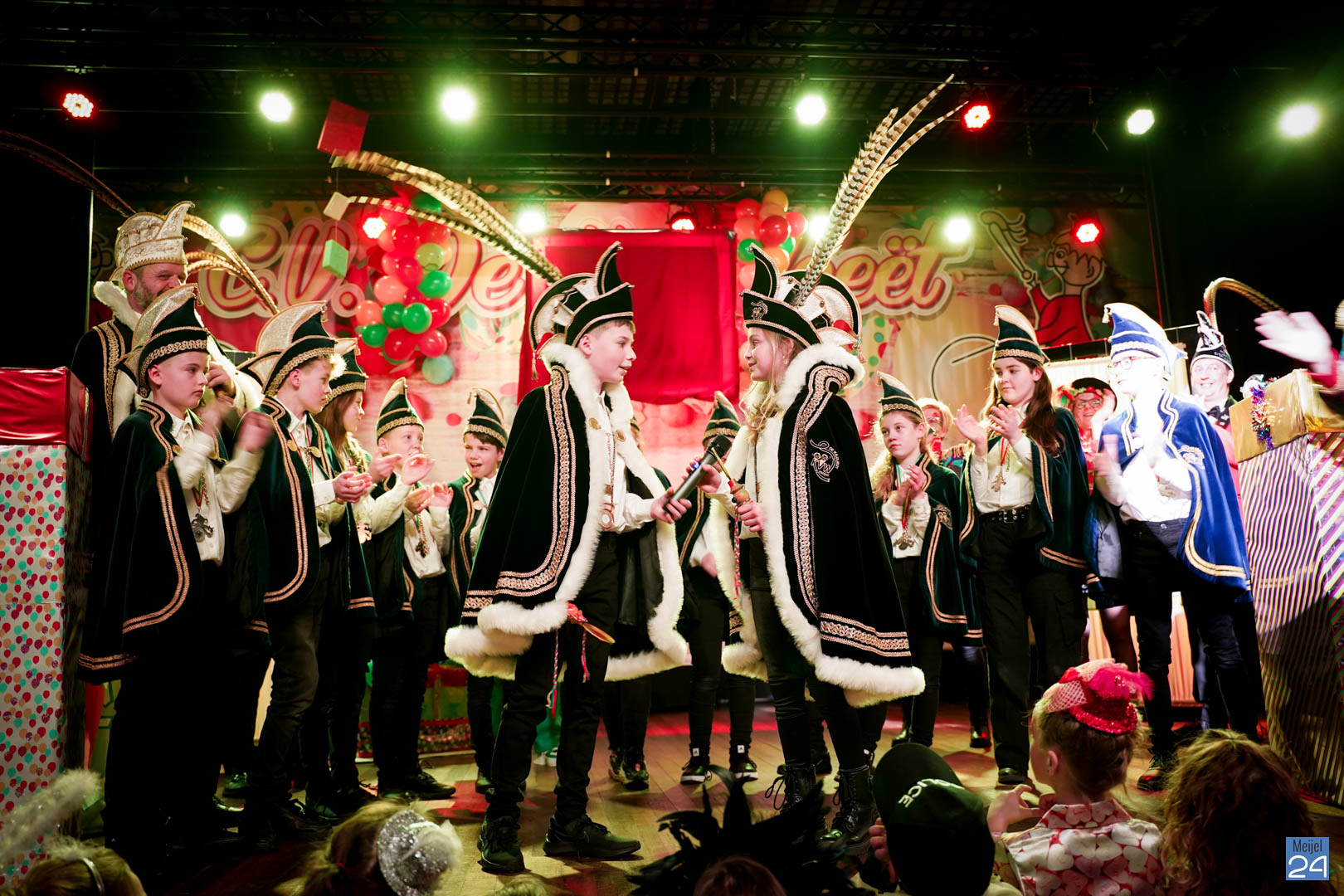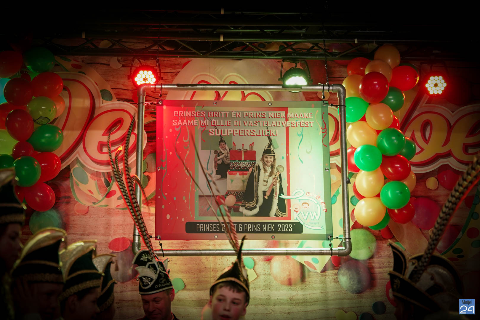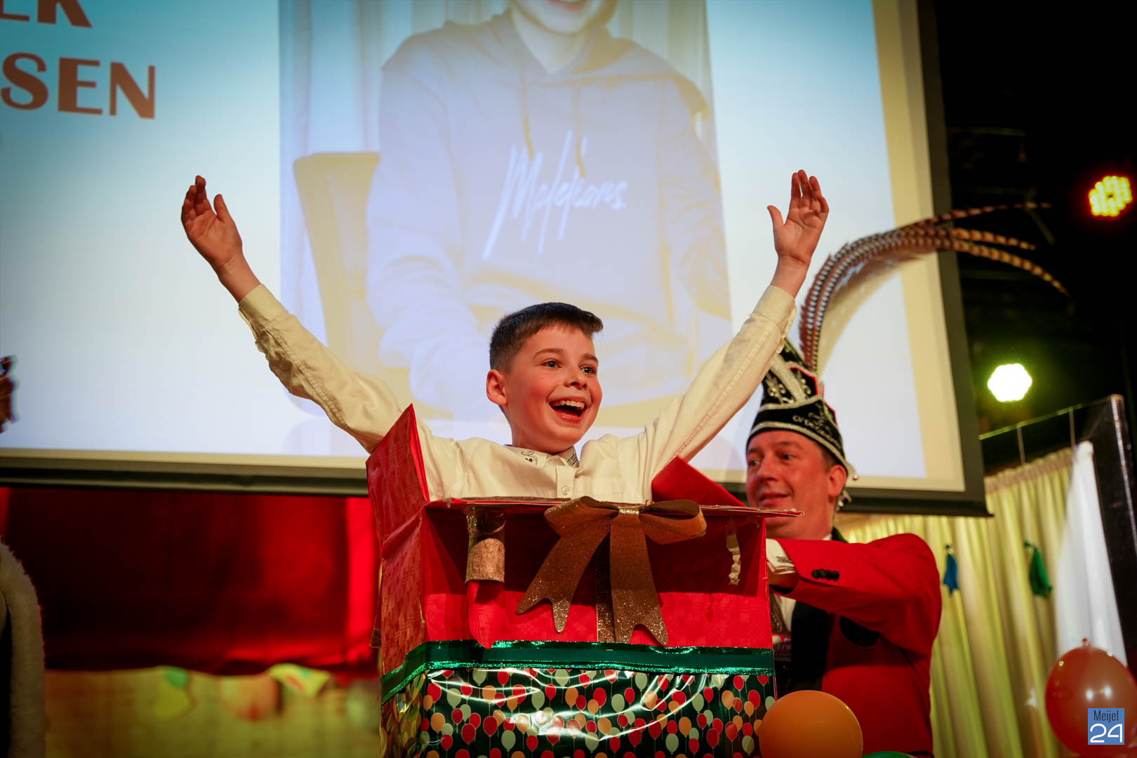 Maar ja, wat is een Kéjsjeutebal zonder Kéjsjeut? Nadat er afscheid was genomen van de ‘club van de Kéjsjeut’ van 2022, was het tijd voor de onthulling. Welke kinderen zaten er al in weken in spanning? Wie moest geheim houden dat hij/zij voorop mocht gaan dit jaar? De grote cadeaus die op het podium stonden kwamen nog wat meer in beeld en 1 voor 1 sprongen hier de leden van de spiksplinternieuwe Raad van 11 uit; Indy Meuwissen, Noud Rooijakkers, Lucy van Haaren, Lieke Theeuwen, Juul Hoefnagels, Fer Vercoulen, Fiep Rooijakkers, Britt Verstappen, Sam Strijbos, Kris Lansbergen en Ymke Tillemans!