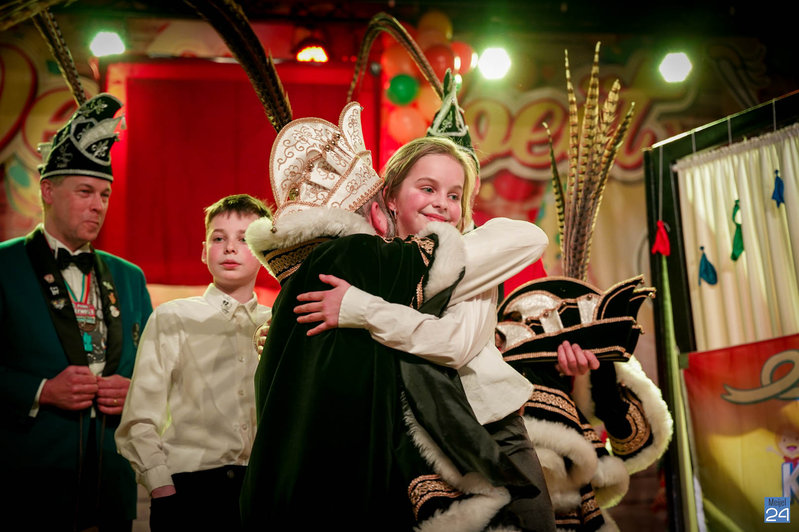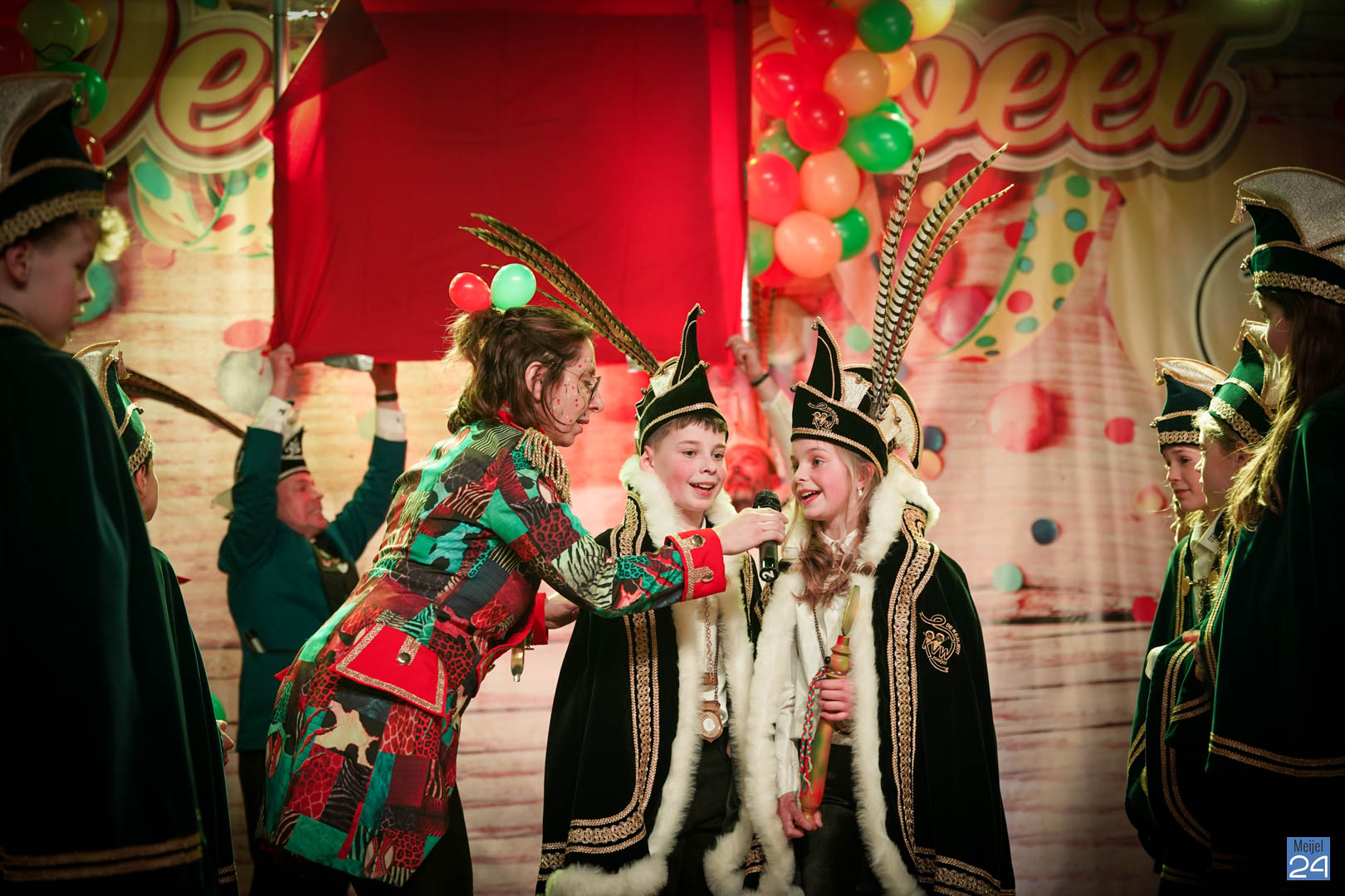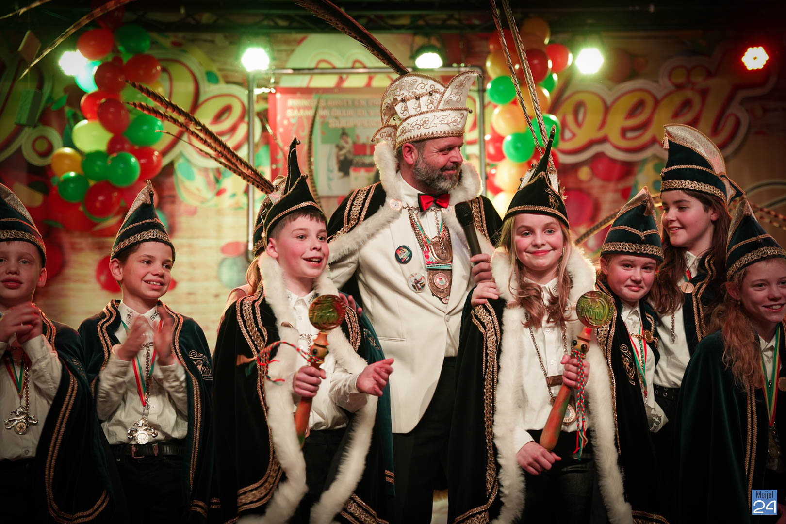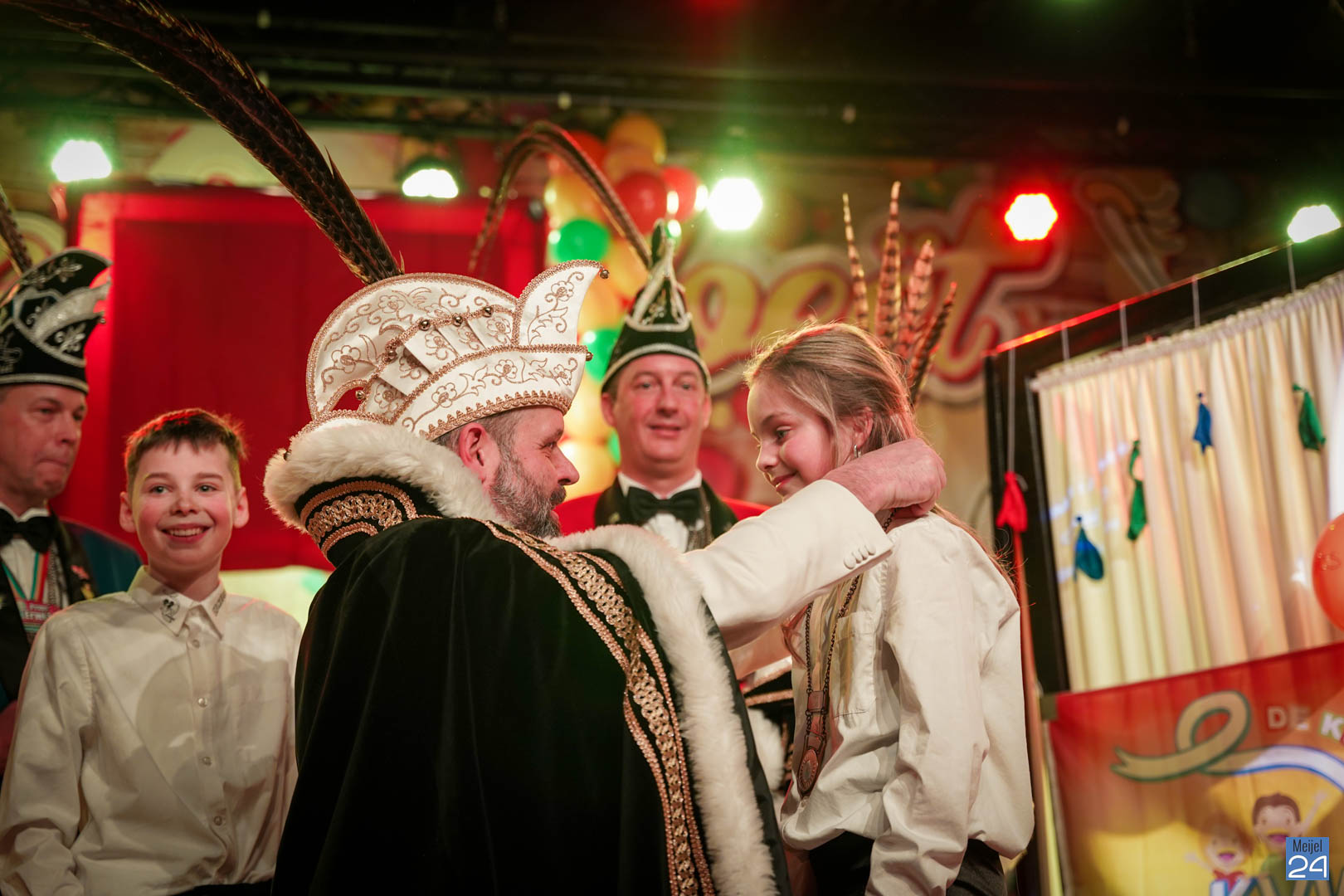 Maar ja, wat is een Kéjsjeutebal zonder Kéjsjeut? Nadat er afscheid was genomen van de ‘club van de Kéjsjeut’ van 2022, was het tijd voor de onthulling. Welke kinderen zaten er al in weken in spanning? Wie moest geheim houden dat hij/zij voorop mocht gaan dit jaar? De grote cadeaus die op het podium stonden kwamen nog wat meer in beeld en 1 voor 1 sprongen hier de leden van de spiksplinternieuwe Raad van 11 uit; Indy Meuwissen, Noud Rooijakkers, Lucy van Haaren, Lieke Theeuwen, Juul Hoefnagels, Fer Vercoulen, Fiep Rooijakkers, Britt Verstappen, Sam Strijbos, Kris Lansbergen en Ymke Tillemans!