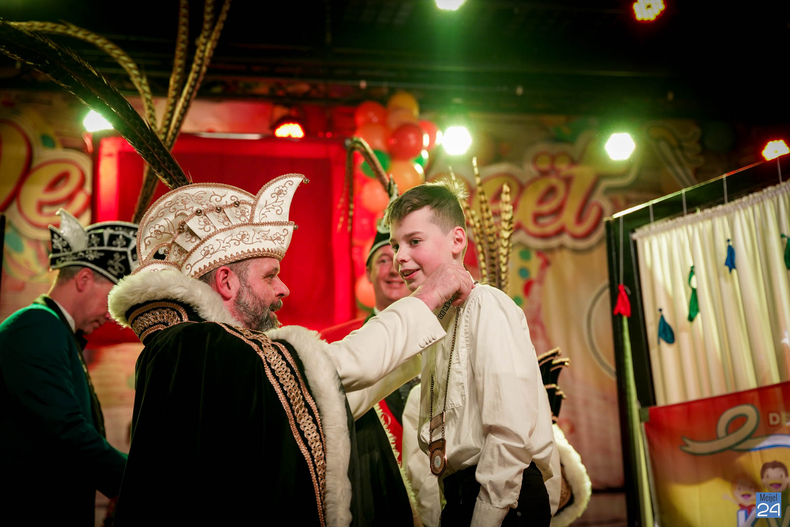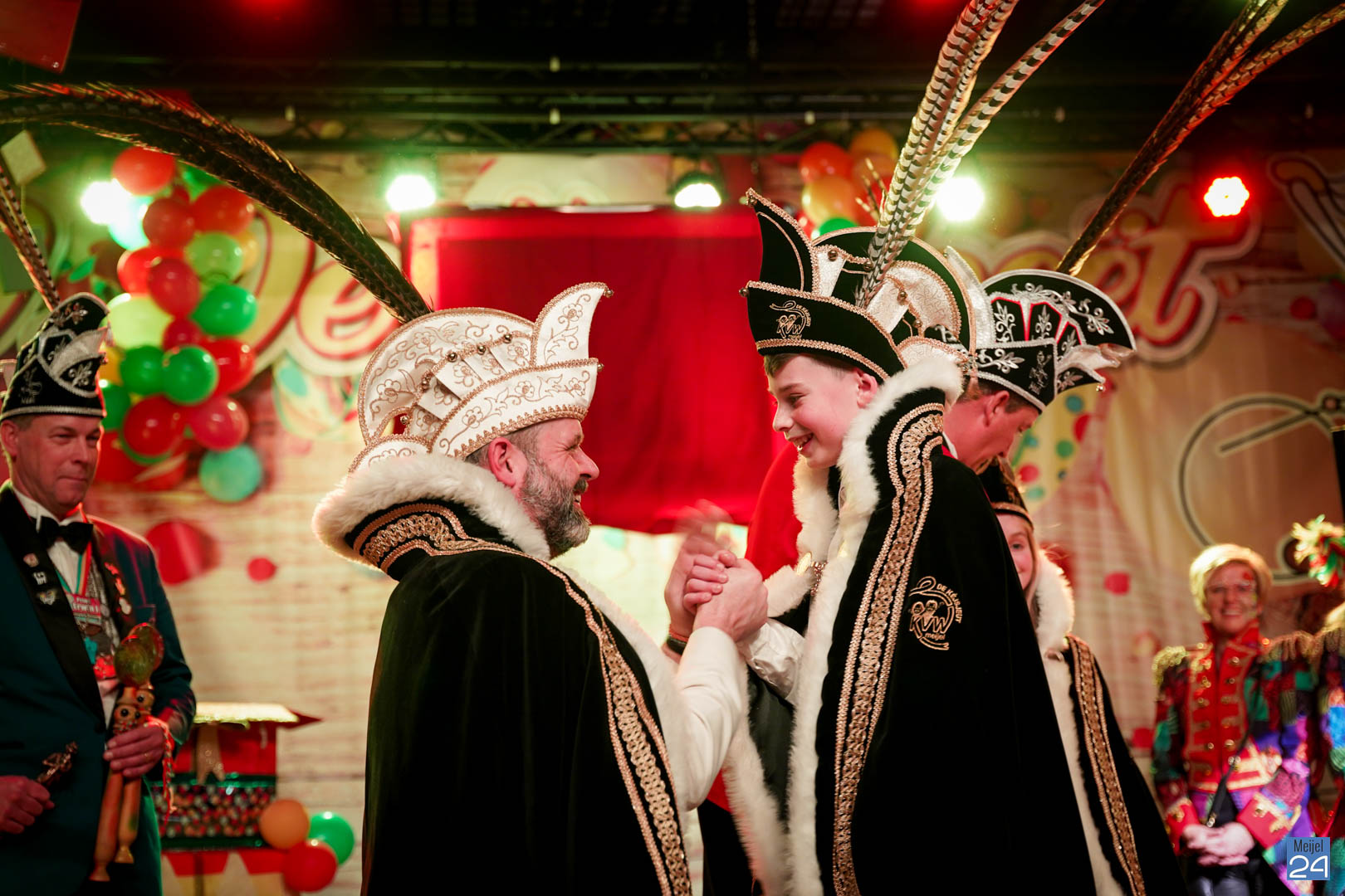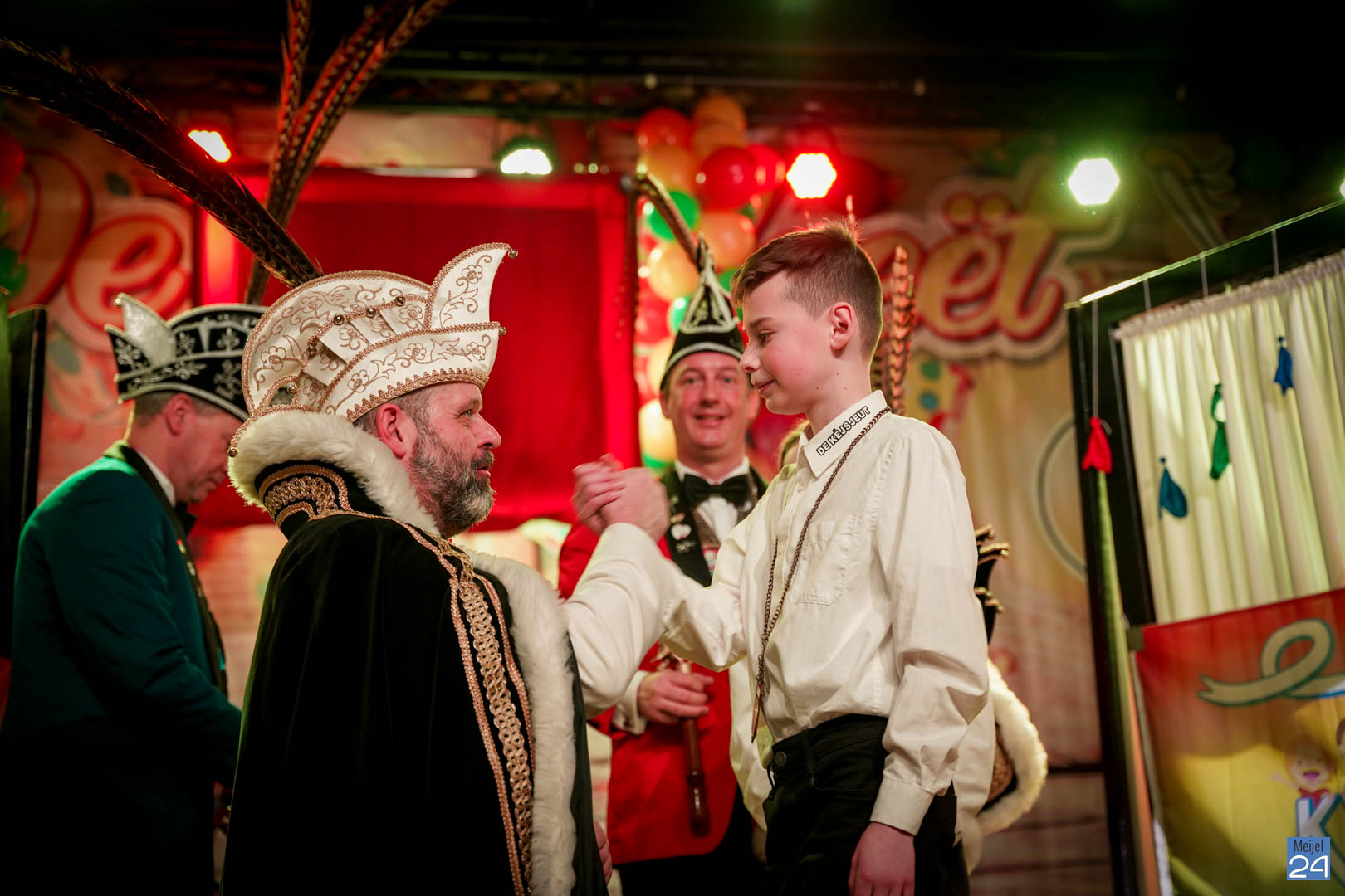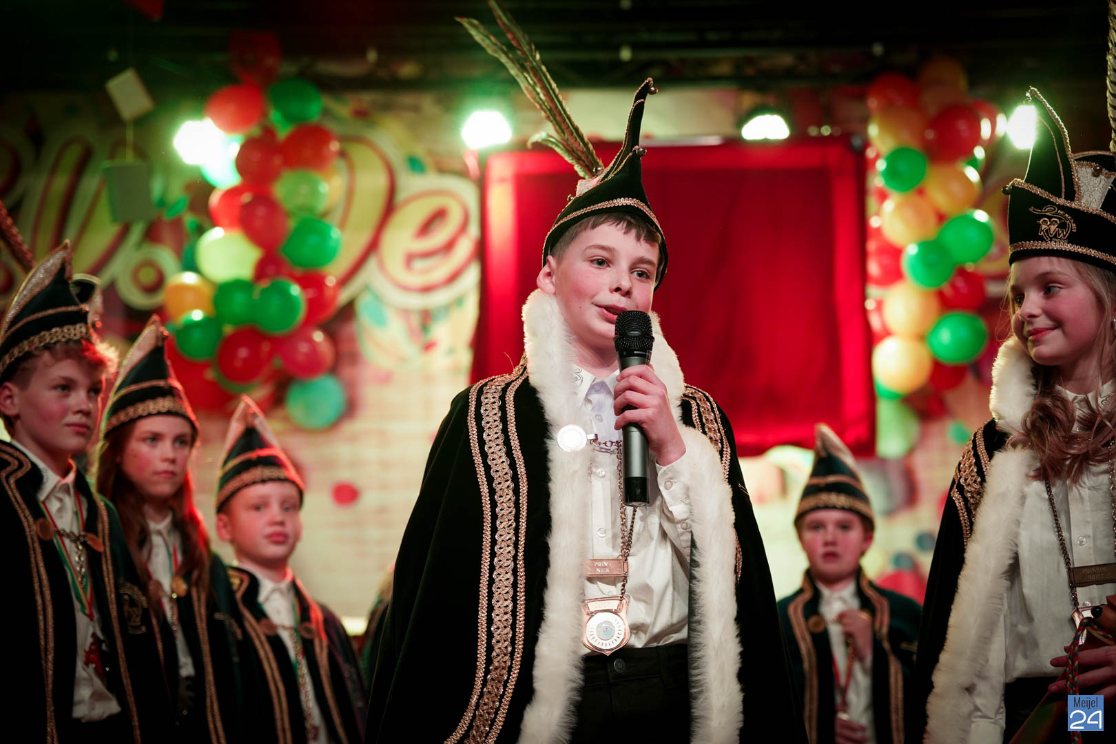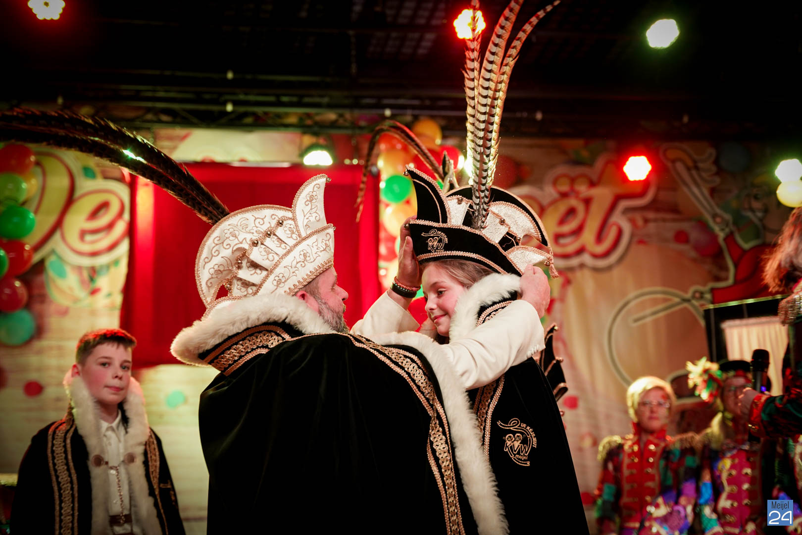 Maar ja, wat is een Kéjsjeutebal zonder Kéjsjeut? Nadat er afscheid was genomen van de ‘club van de Kéjsjeut’ van 2022, was het tijd voor de onthulling. Welke kinderen zaten er al in weken in spanning? Wie moest geheim houden dat hij/zij voorop mocht gaan dit jaar? De grote cadeaus die op het podium stonden kwamen nog wat meer in beeld en 1 voor 1 sprongen hier de leden van de spiksplinternieuwe Raad van 11 uit; Indy Meuwissen, Noud Rooijakkers, Lucy van Haaren, Lieke Theeuwen, Juul Hoefnagels, Fer Vercoulen, Fiep Rooijakkers, Britt Verstappen, Sam Strijbos, Kris Lansbergen en Ymke Tillemans!