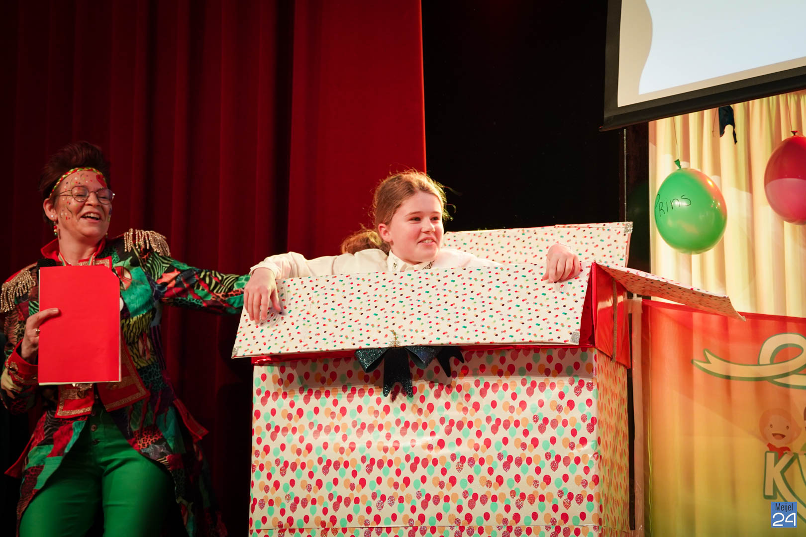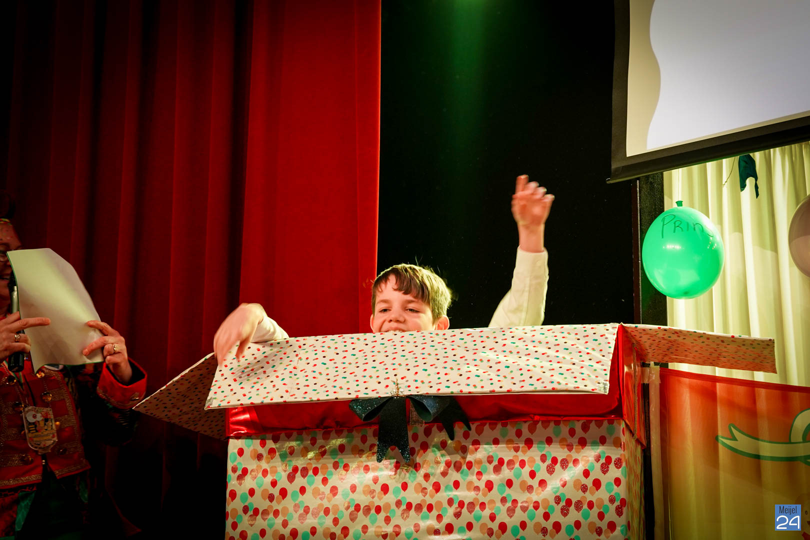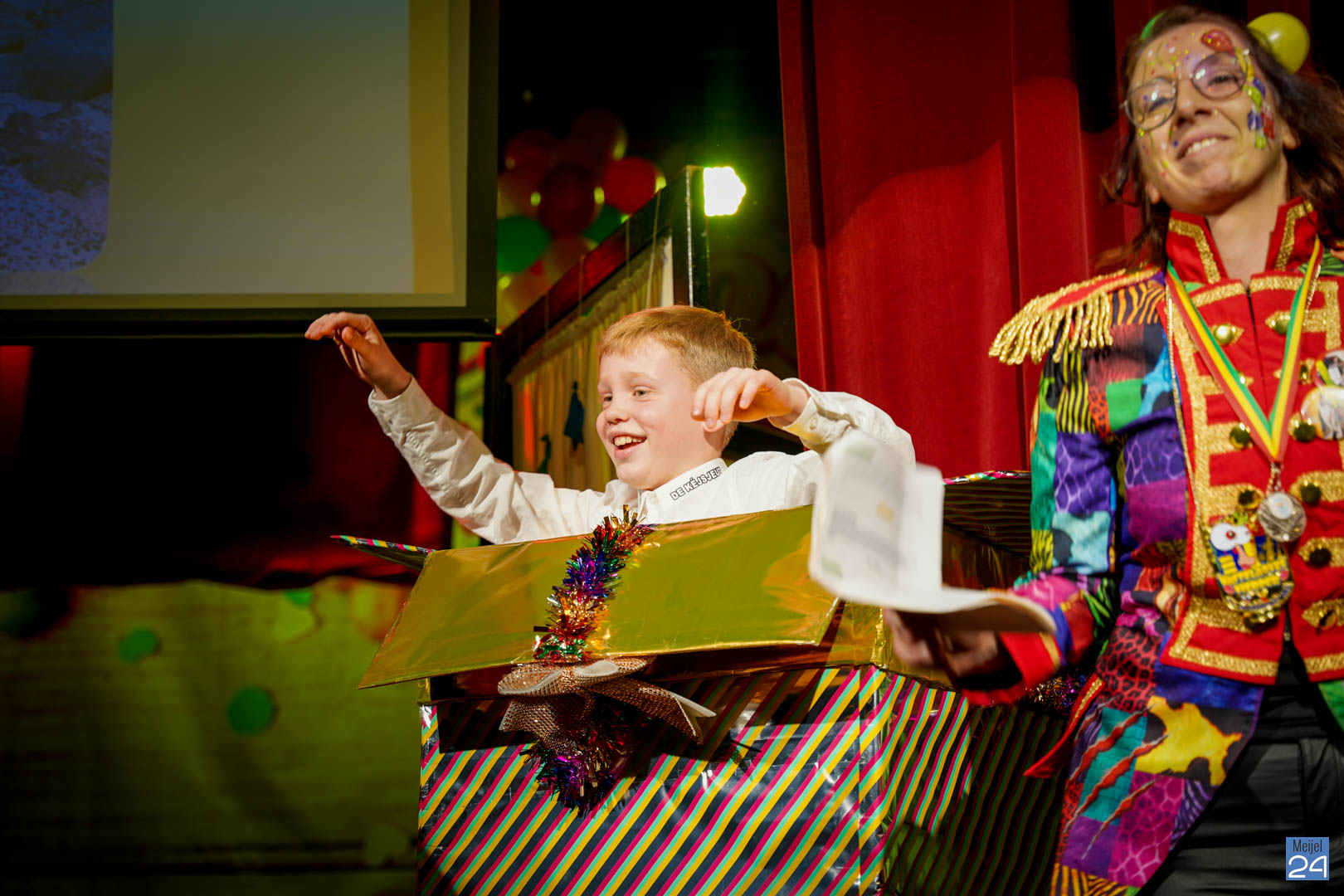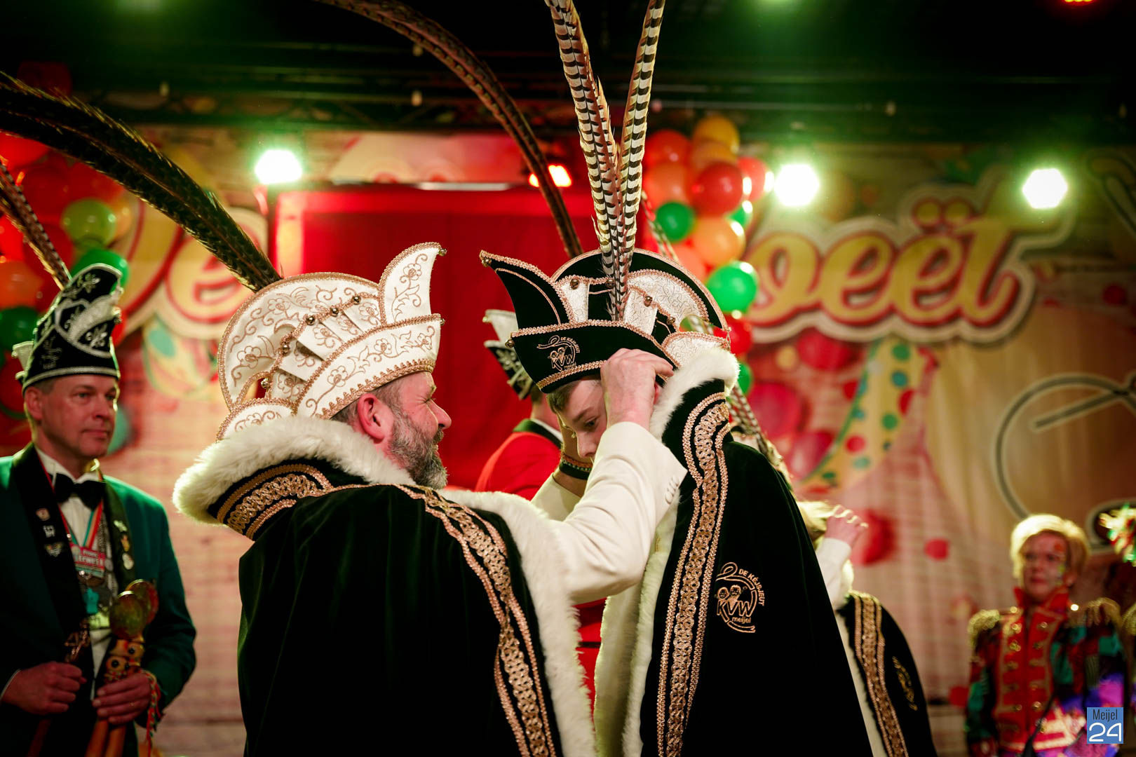Maar ja, wat is een Kéjsjeutebal zonder Kéjsjeut? Nadat er afscheid was genomen van de ‘club van de Kéjsjeut’ van 2022, was het tijd voor de onthulling. Welke kinderen zaten er al in weken in spanning? Wie moest geheim houden dat hij/zij voorop mocht gaan dit jaar? De grote cadeaus die op het podium stonden kwamen nog wat meer in beeld en 1 voor 1 sprongen hier de leden van de spiksplinternieuwe Raad van 11 uit; Indy Meuwissen, Noud Rooijakkers, Lucy van Haaren, Lieke Theeuwen, Juul Hoefnagels, Fer Vercoulen, Fiep Rooijakkers, Britt Verstappen, Sam Strijbos, Kris Lansbergen en Ymke Tillemans!