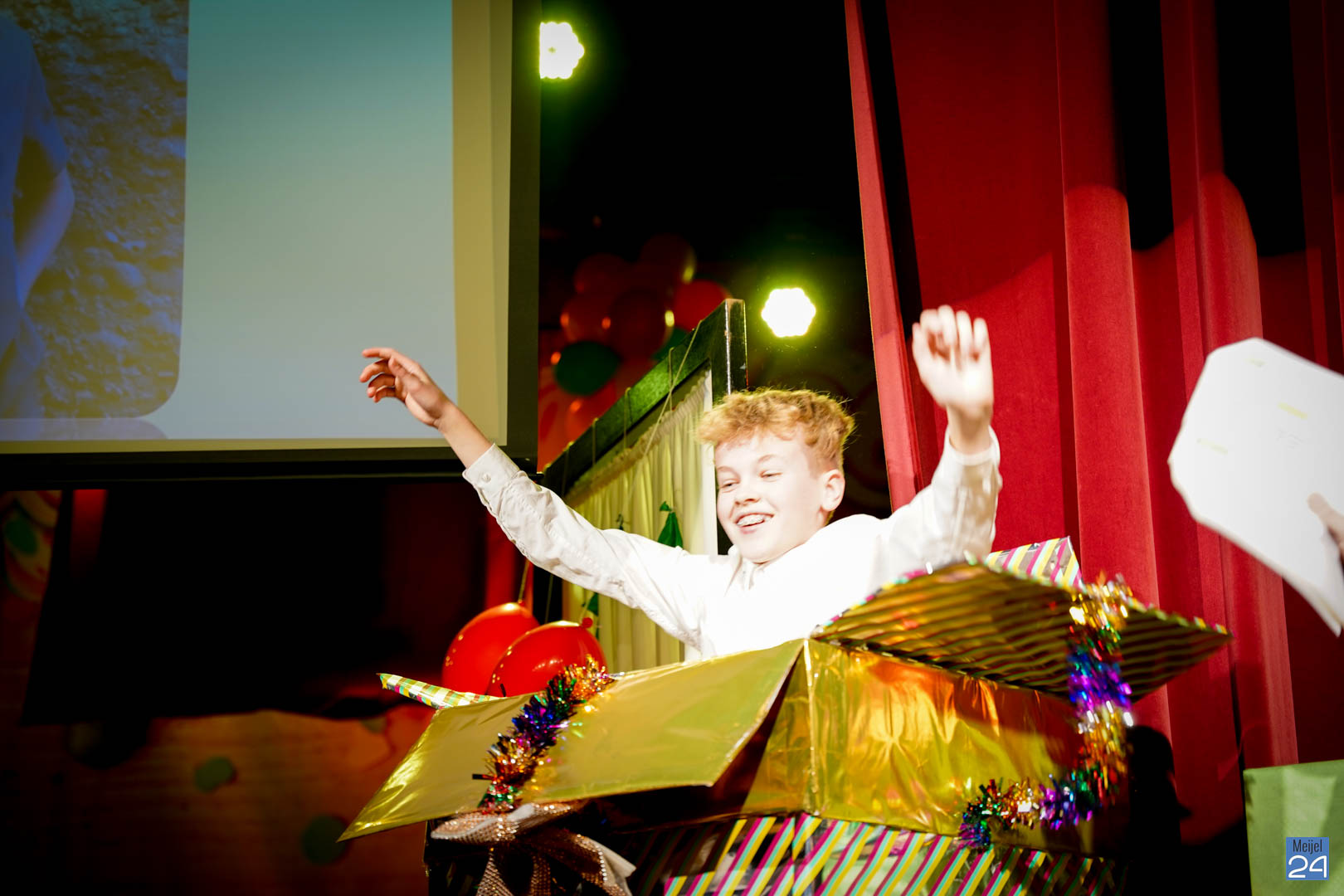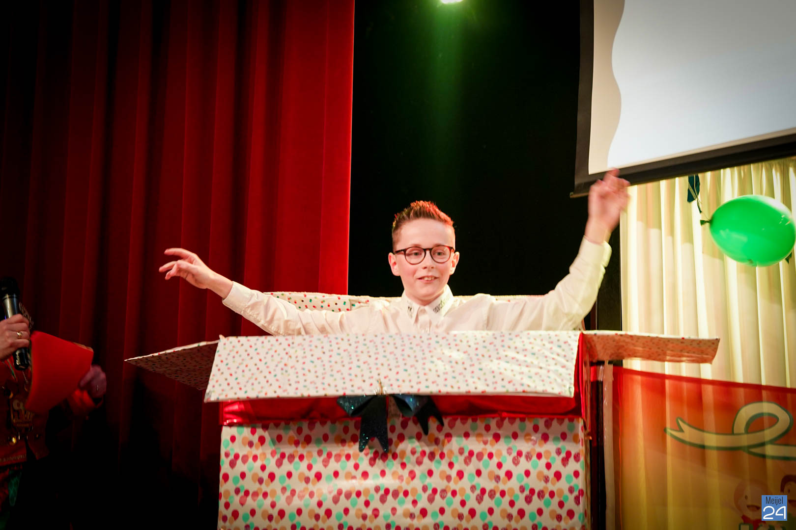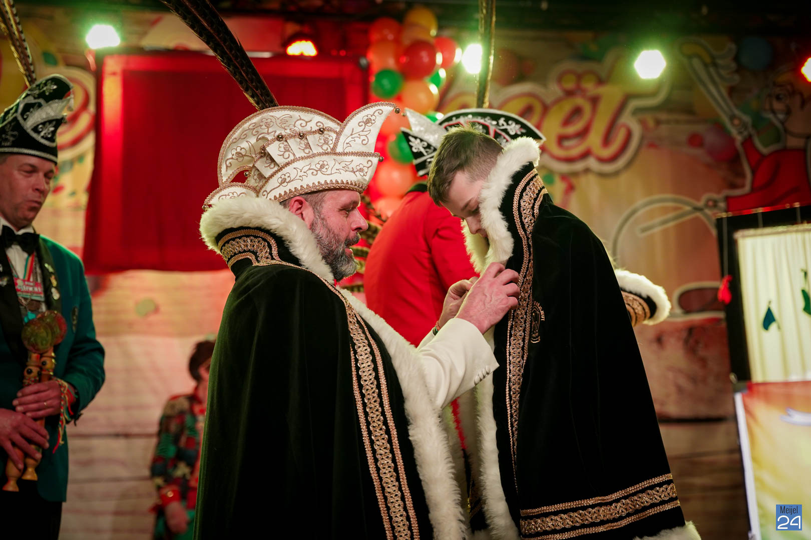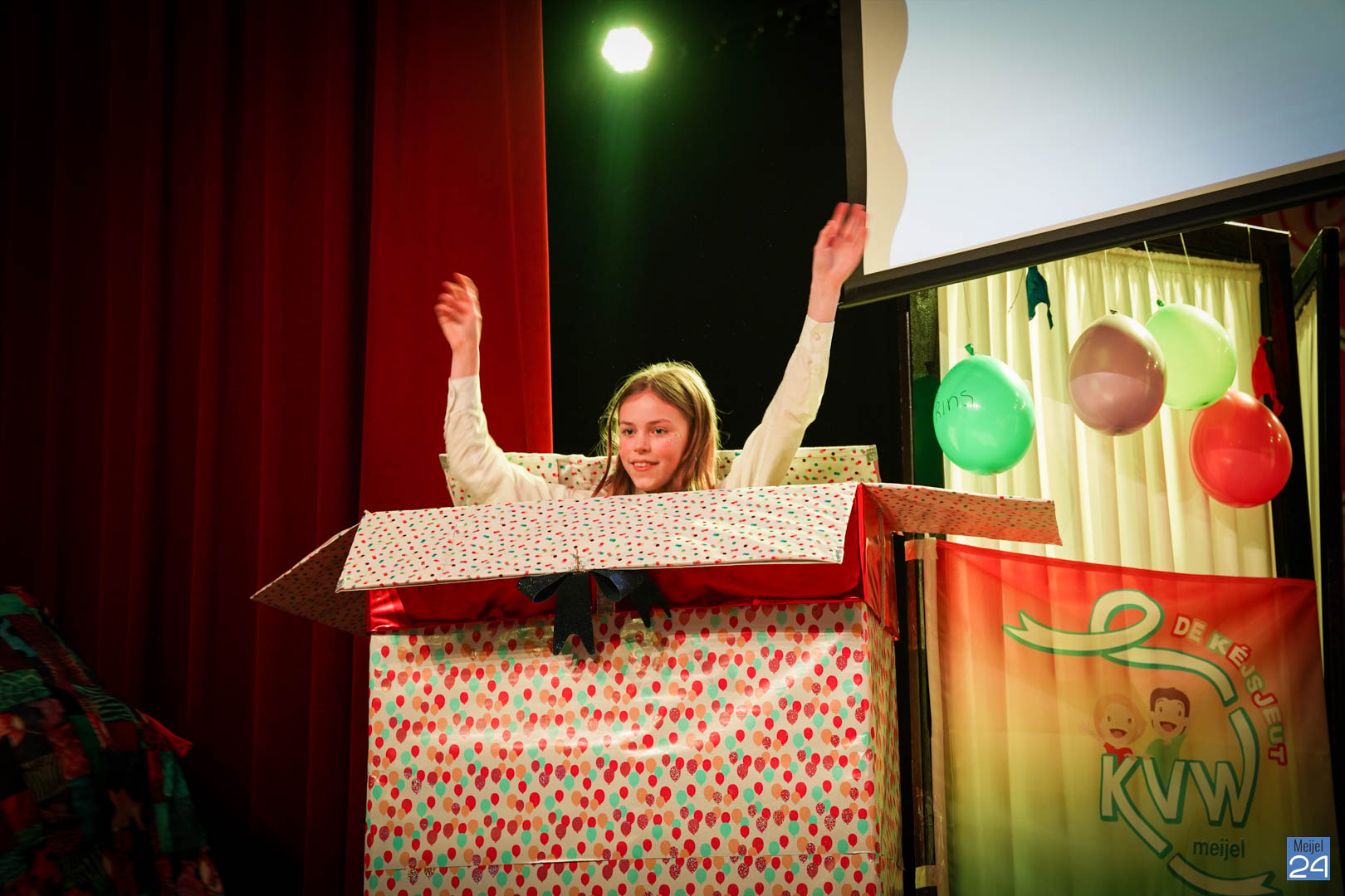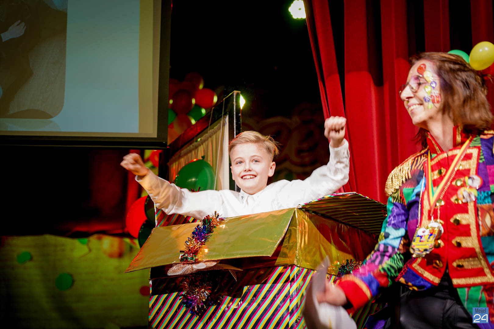 Maar ja, wat is een Kéjsjeutebal zonder Kéjsjeut? Nadat er afscheid was genomen van de ‘club van de Kéjsjeut’ van 2022, was het tijd voor de onthulling. Welke kinderen zaten er al in weken in spanning? Wie moest geheim houden dat hij/zij voorop mocht gaan dit jaar? De grote cadeaus die op het podium stonden kwamen nog wat meer in beeld en 1 voor 1 sprongen hier de leden van de spiksplinternieuwe Raad van 11 uit; Indy Meuwissen, Noud Rooijakkers, Lucy van Haaren, Lieke Theeuwen, Juul Hoefnagels, Fer Vercoulen, Fiep Rooijakkers, Britt Verstappen, Sam Strijbos, Kris Lansbergen en Ymke Tillemans!