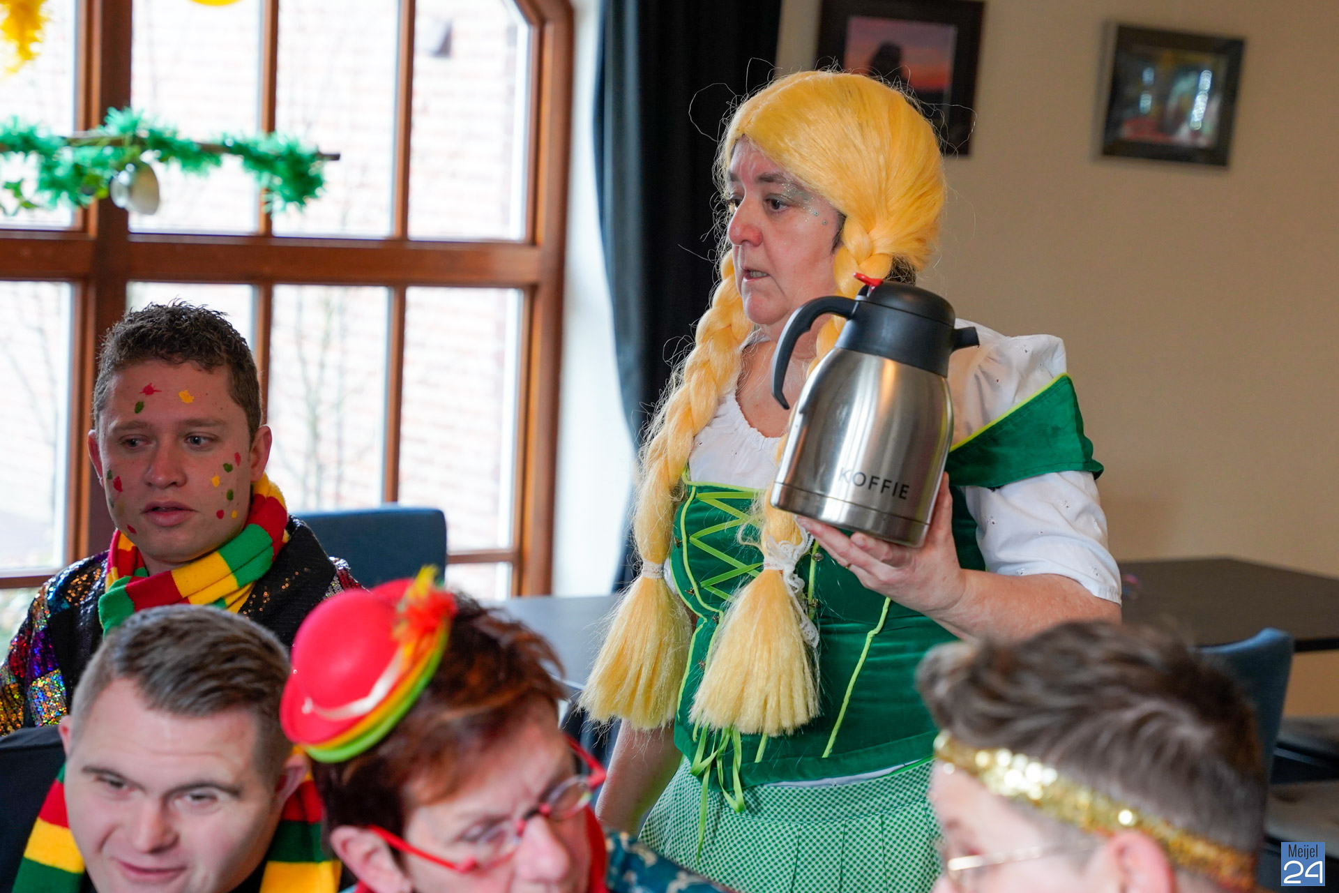 Nadat ze aan de traditie had voldaan en het snoepgoed in elke hoek van de lunchroom had gegooid, werd geprobeerd om de normale taken van de dag te hervatten. Onder de indruk van de ondersjééjing om haar hals – een echte Jan van Rijt – en met de vastelaovesmuziek op de achtergrond, werd de komst van carnavalsvereniging de Kieveloeët afgewacht, waar ook de zoon van Rien bij zit. Rond de middag komt ‘dè is nog femilie van méj’ prins Erwin I, die een ondersjééjing van prinses Rien mag verwachten, voordat ze samen gaan genieten van een echte vastelaoveslunch. Voor een leuke sfeerimpressie, bekijk de video van Hay Cuijpers.