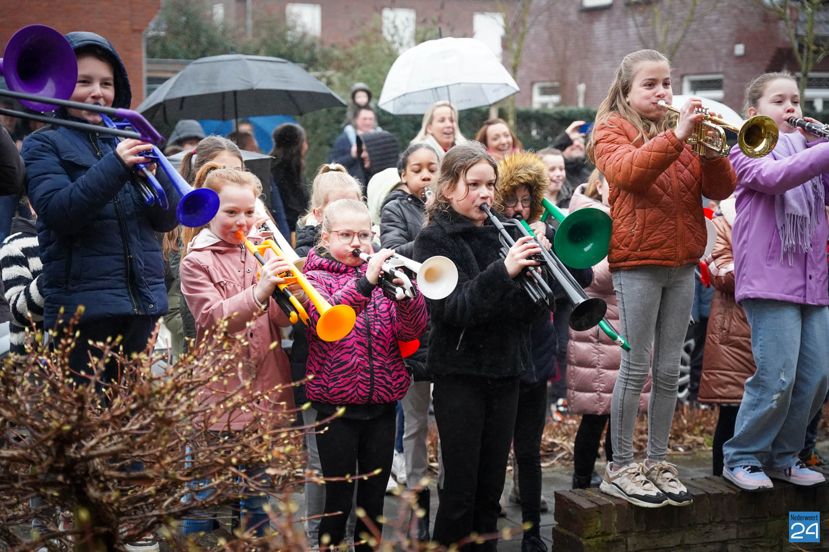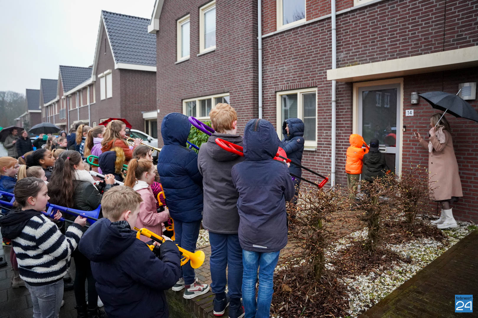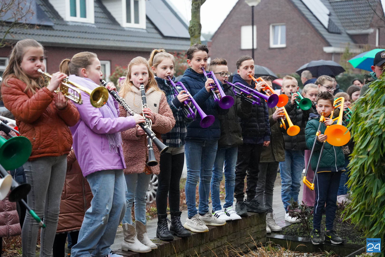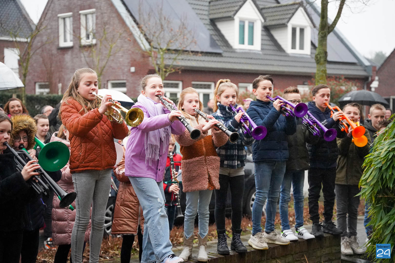 Na al dat enthousiaste oefenen van de kinderen vonden de ouders het de hoogste tijd dat meester Hidde alvast een voorproefje zou krijgen van de blaasbende. In het geheim verzamelden de kinderen zich op zondagmorgen om 8.45 uur in het speeltuintje aan de Rijtakker, om vanaf daar naar meester Hidde zijn huis te trekken en hem een serenade te brengen.