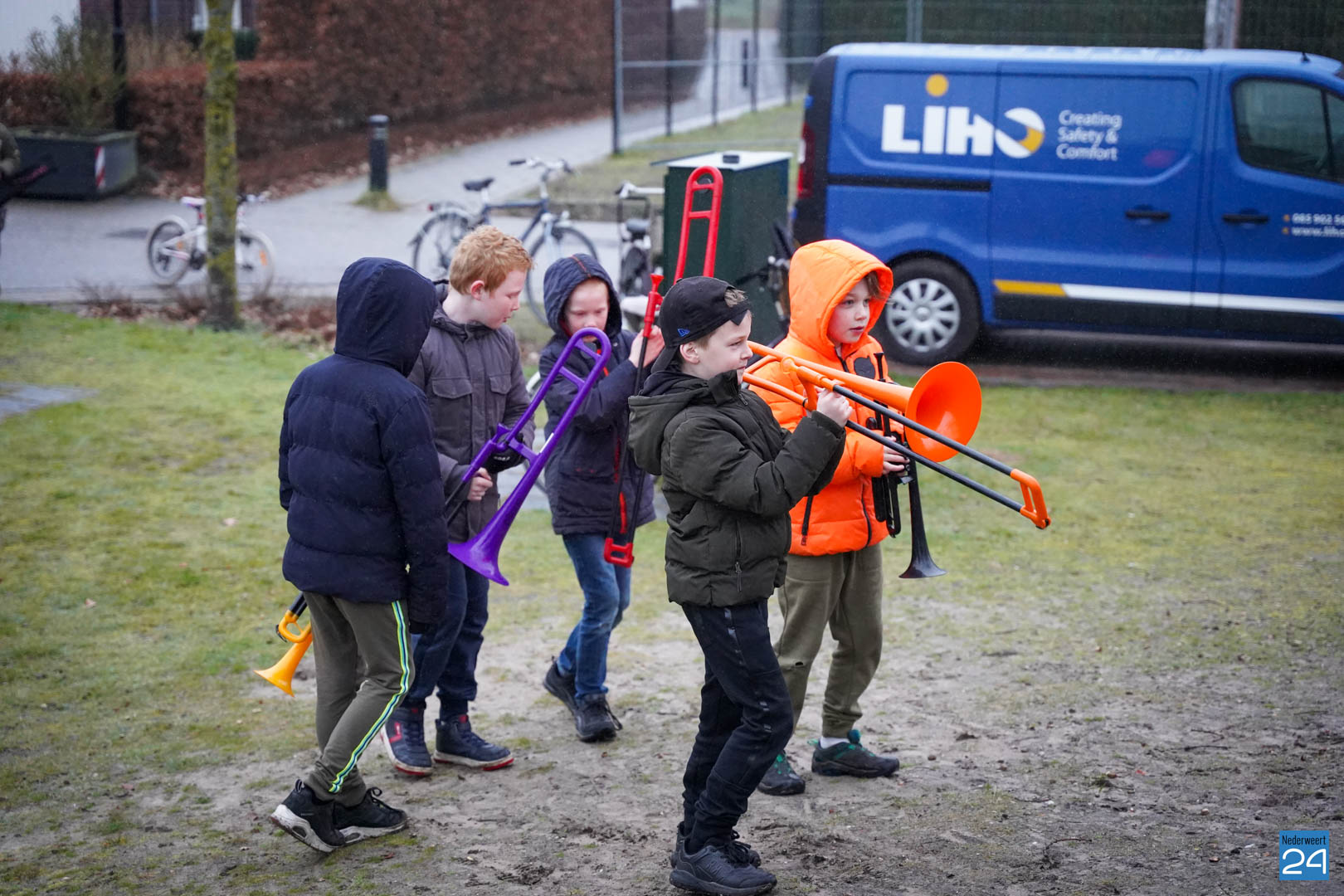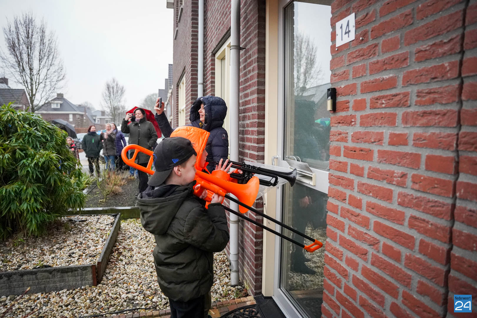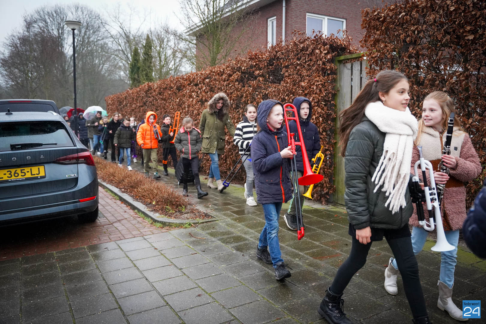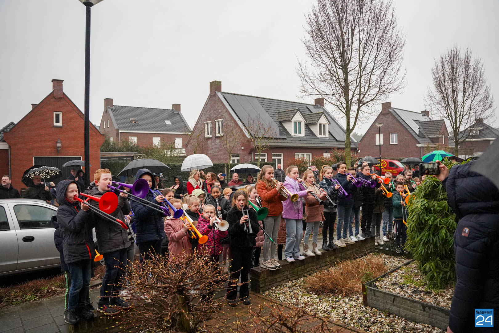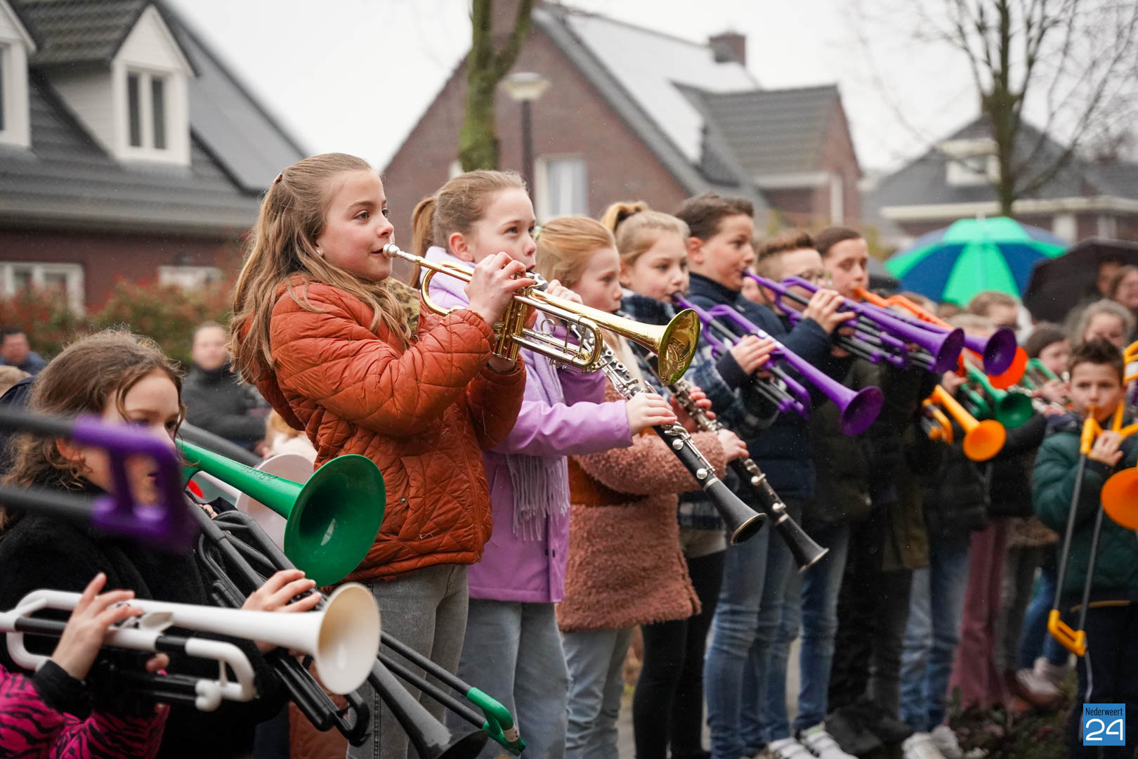 Na al dat enthousiaste oefenen van de kinderen vonden de ouders het de hoogste tijd dat meester Hidde alvast een voorproefje zou krijgen van de blaasbende. In het geheim verzamelden de kinderen zich op zondagmorgen om 8.45 uur in het speeltuintje aan de Rijtakker, om vanaf daar naar meester Hidde zijn huis te trekken en hem een serenade te brengen.