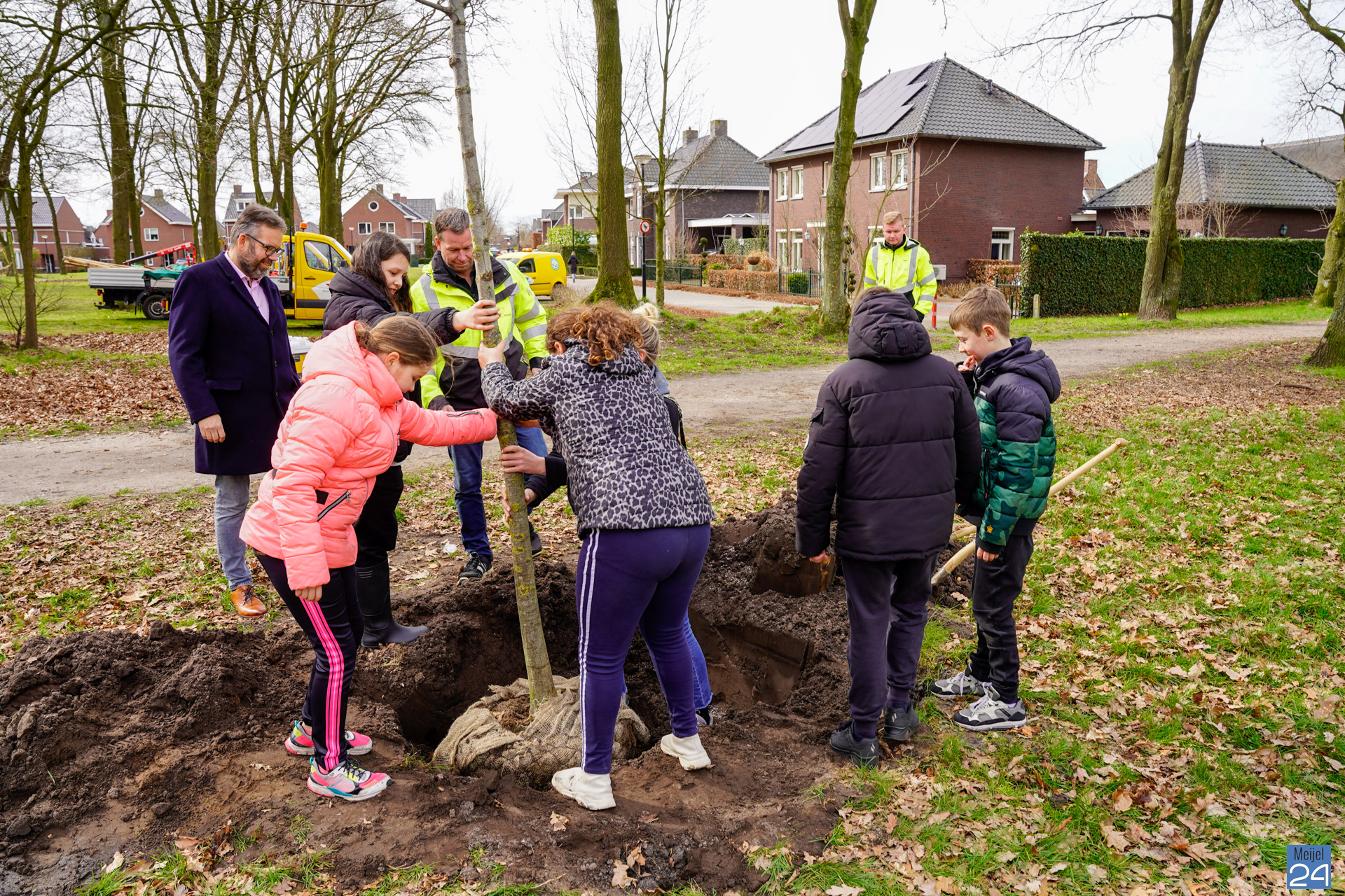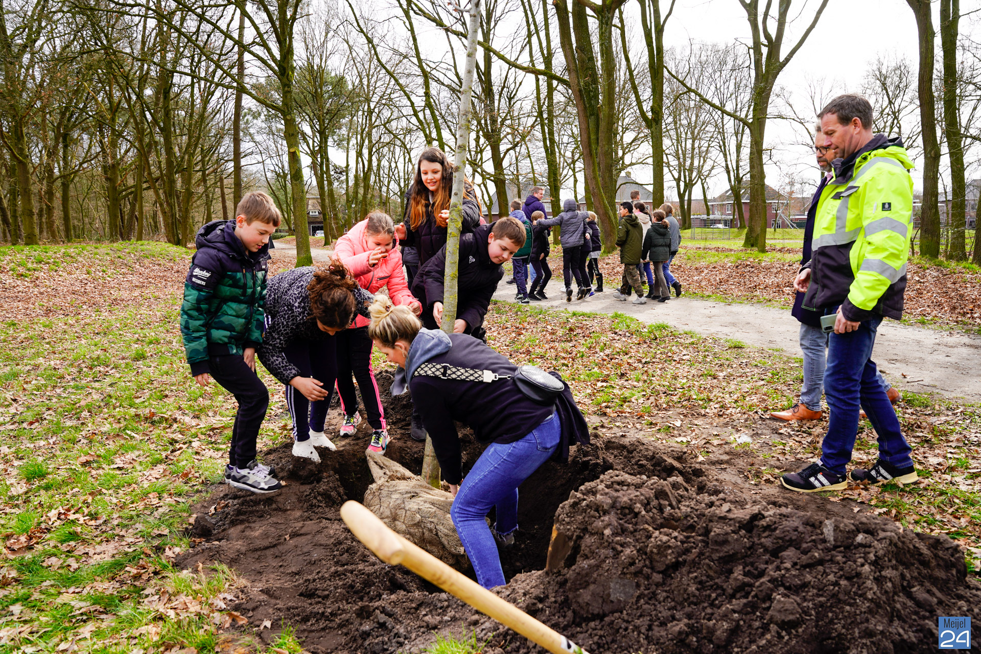 Tijdens het thema ‘Stem op mijn partij’ mochten de leerlingen uit unit 7 en 8 van basisschool Den Doelhof een eigen politieke partij oprichten en daar een maatschappelijk probleem aan koppelen. Eén van de groepjes heeft zich ingezet voor meer bomen in Meijel. In dat kader is er contact gezocht met burgemeester Wilma Delissen-van Tongerlo. Er werd blijkbaar zo’n goede mail opgesteld met overtuigende argumenten dat dit bij de gemeente zeer serieus werd opgepakt. Wethouder Erik Nijssen heeft samen met adviseur Pim Hillen een bezoek gebracht aan het groepje leerlingen. De leerlingen kregen te horen dat ze mee mochten denken én beslissen over de nieuwe bomen in Meijel.