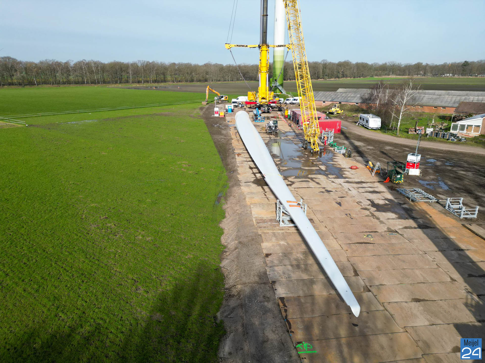 De scheur werd in december ontdekt tijdens een controle en sinds die tijd staat de windturbine stil. Deze week wordt het rotorblad vervangen. Het rotorblad is inmiddels op de locatie aanwezig.