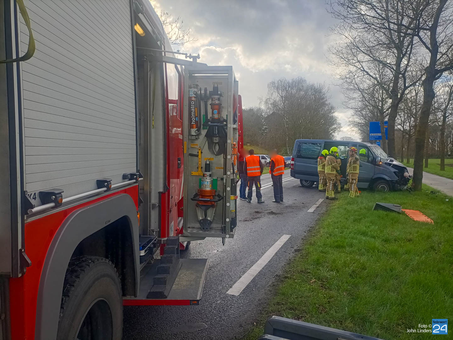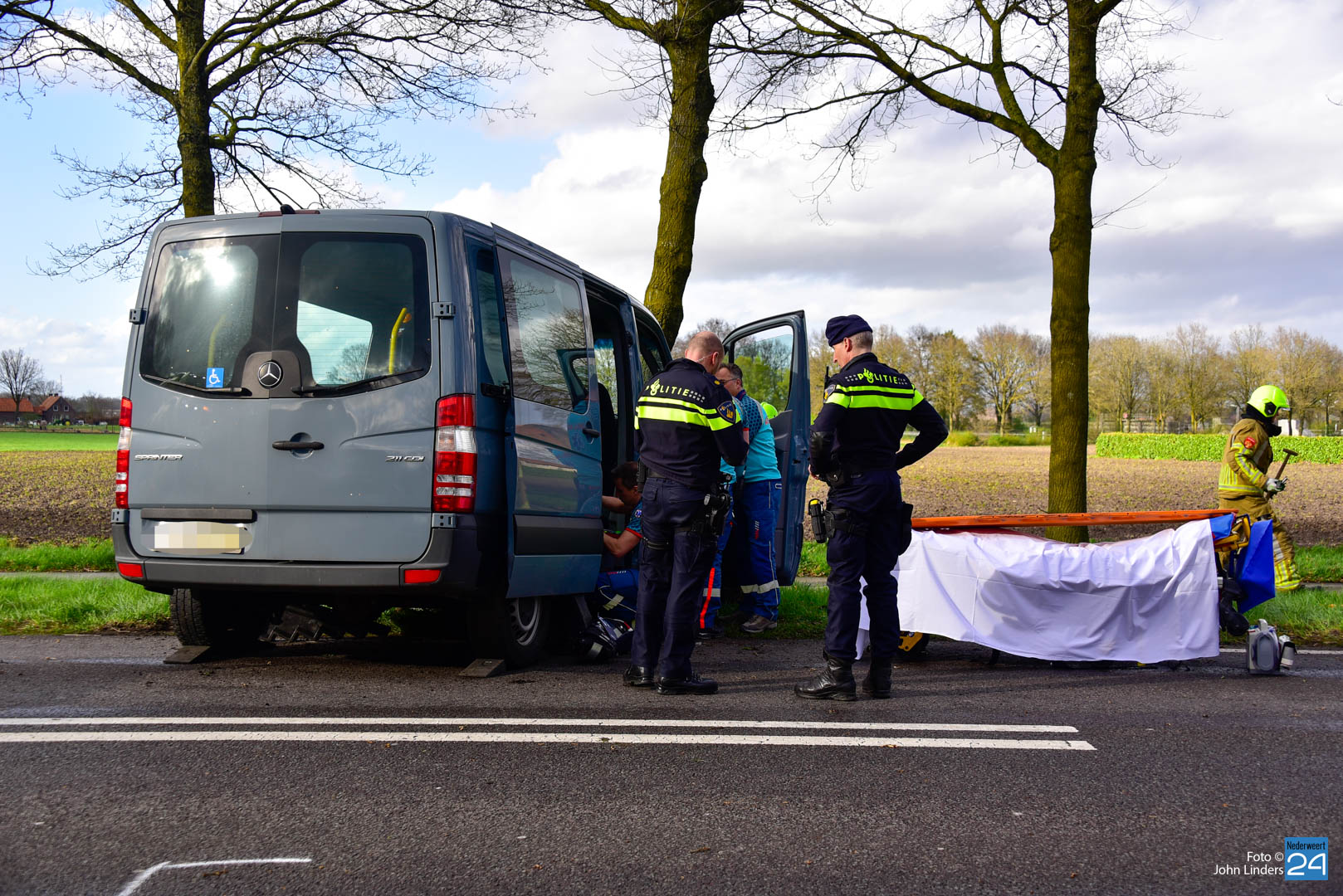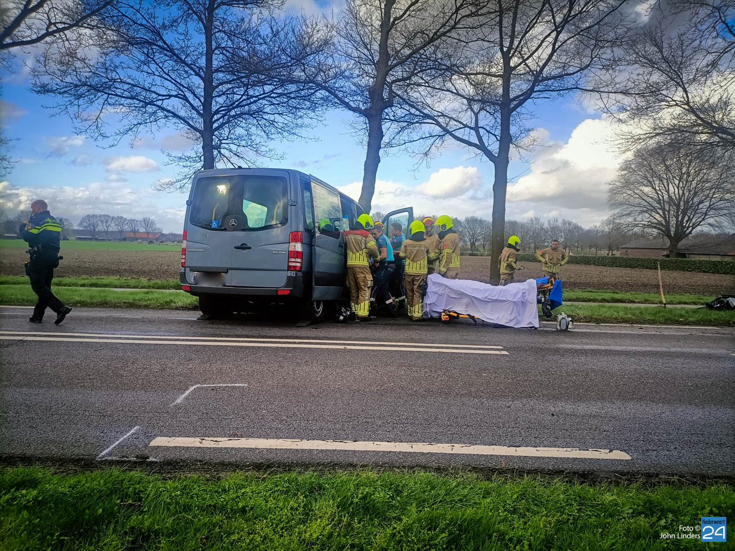 Hoe het slachtoffer van de weg raakte en het ongeval kon gebeuren is niet duidelijk. Brandweer, politie en een ambulance zijn aanwezig, de brandweer heeft met hulp van de ambulance de persoon uit het busje bevrijd.