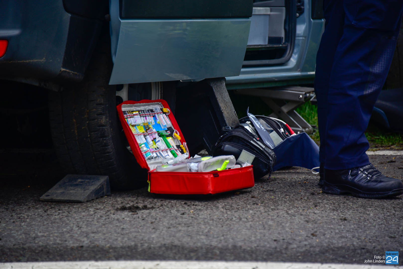 Een buurtbewoner verleende eerste hulp aan het slachtoffer, het slachtoffer is aanspreekbaar en zal door de ambulanceverplegers worden onderzocht. De weg is afgesloten.