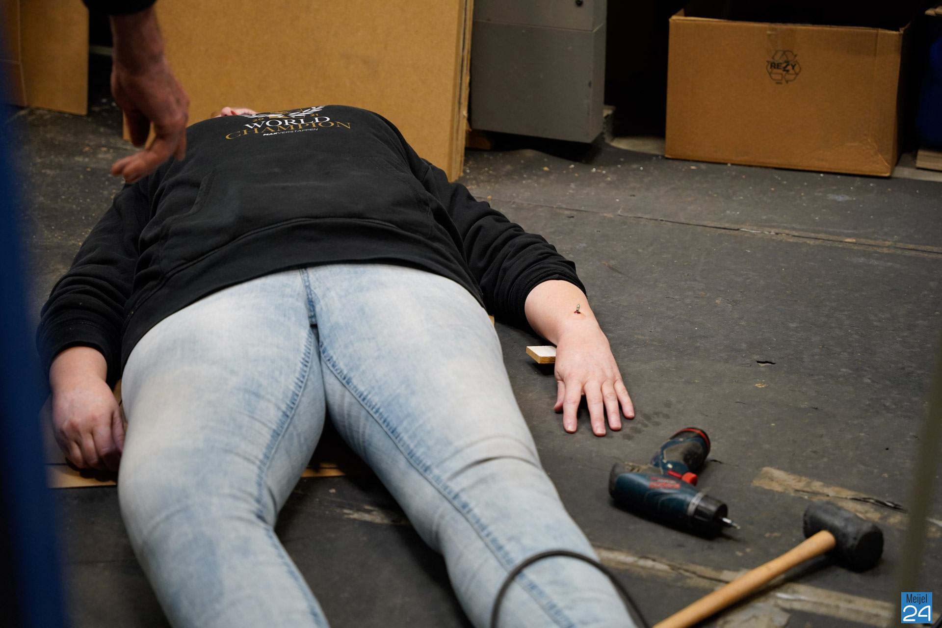 De Meijelse EHBO’ers oefenen 6 tot 8 avonden per jaar binnen. Ook hier worden zo veel als mogelijk reële ongevallen en ziektebeelden uitgebeeld. Afgelopen dinsdagavond vond de oefening plaats op het industrieterrein in Meijel. Van een ongeval met een fiets tot een geamputeerde hand, de hulpverleners hadden het flink voor hun kiezen.