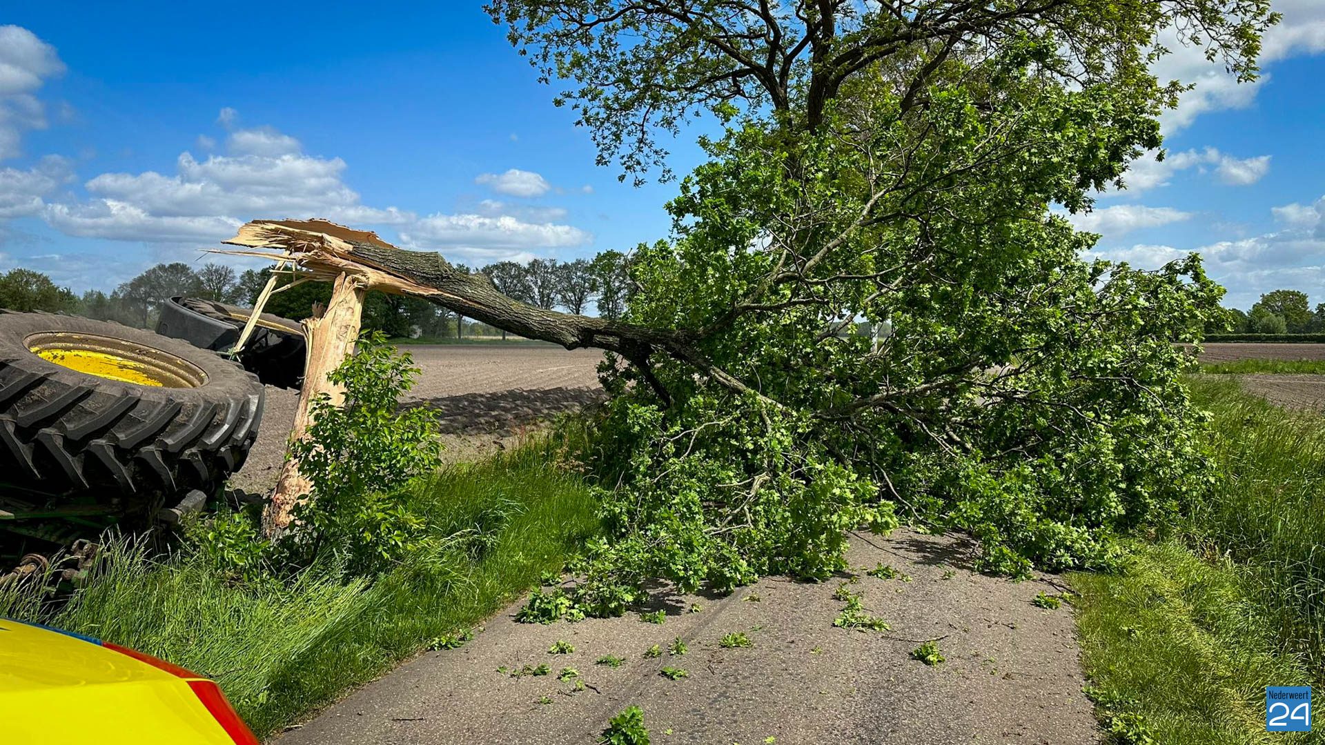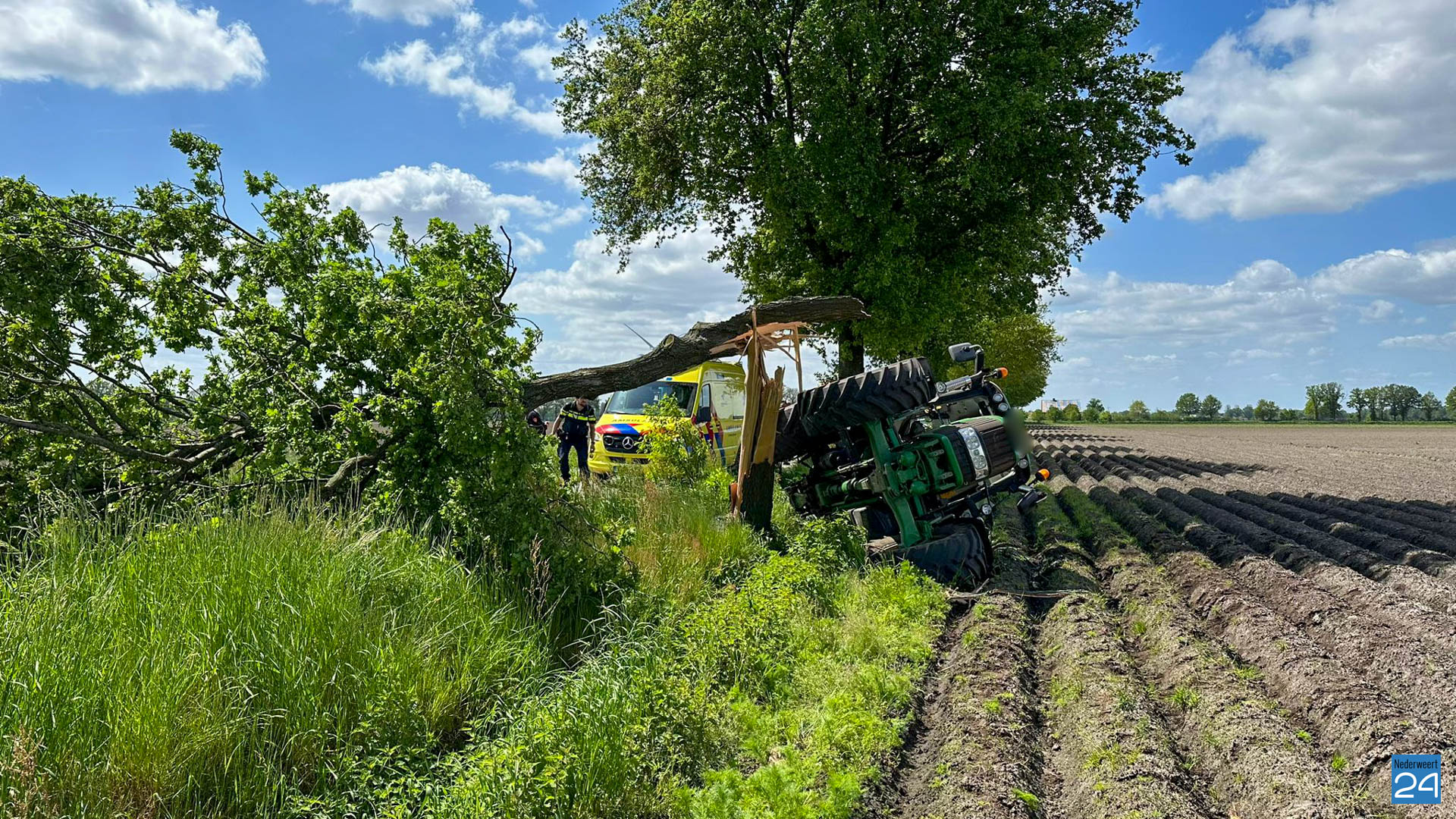 Woensdagmiddag is een tractor tegen een boom gereden op de Witteplakdijk tussen Nederweert en Meijel.