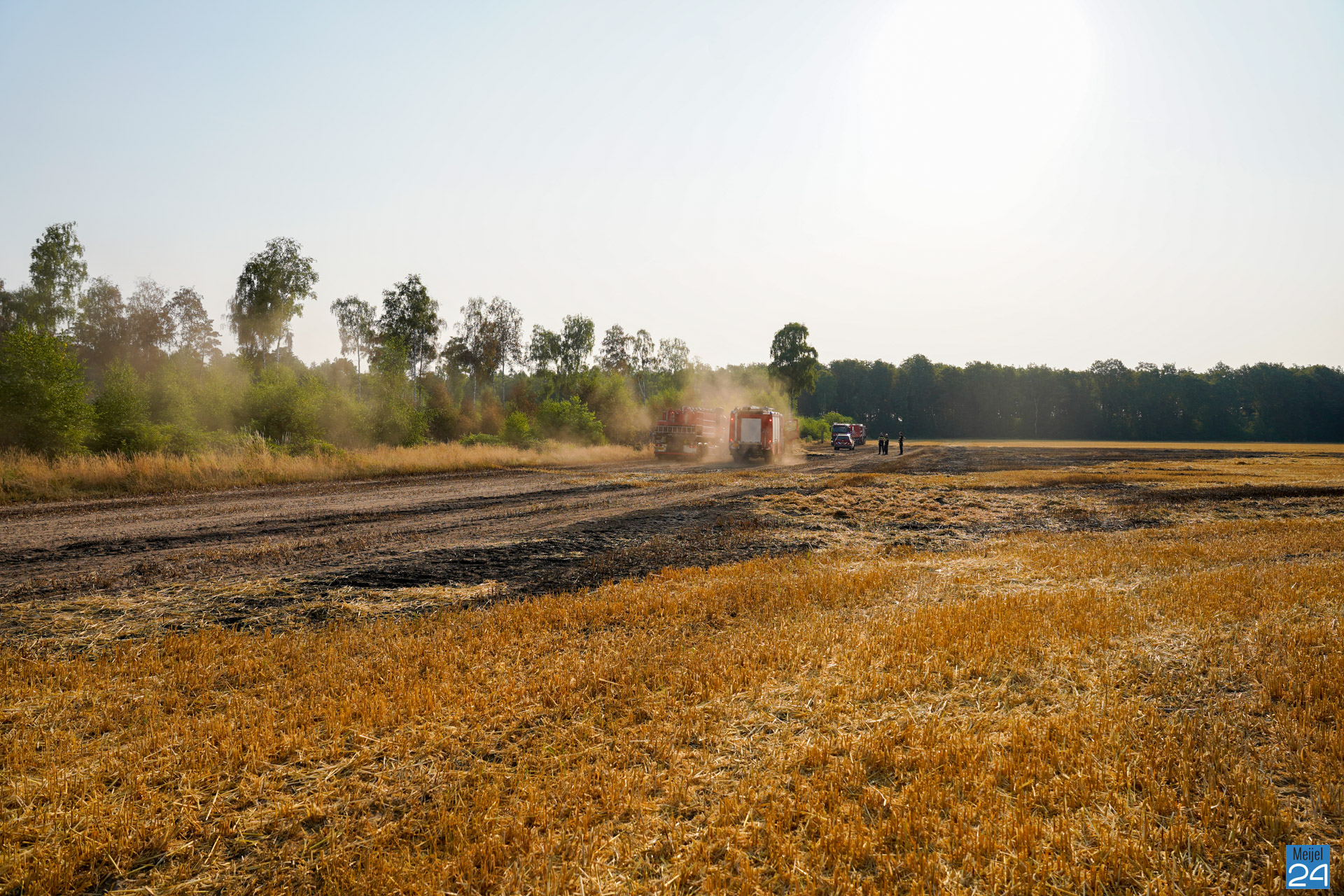 De brand ontstond in de stro-pers tijdens het persen van de strobalen. De brandweer had groot opgeschaald vanwege de ontstane natuurbrand en de droogte op dit moment. De brand is bestreden met vier tankautospuiten en vier waterwagens. Een waterwagen is waarschijnlijk in brand geraakt doordat er strovezels op de hete remmen vlam hebben gevat. De brand is beperkt gebleven tot ongeveer 400 m² akker en 250 m² bosperceel.