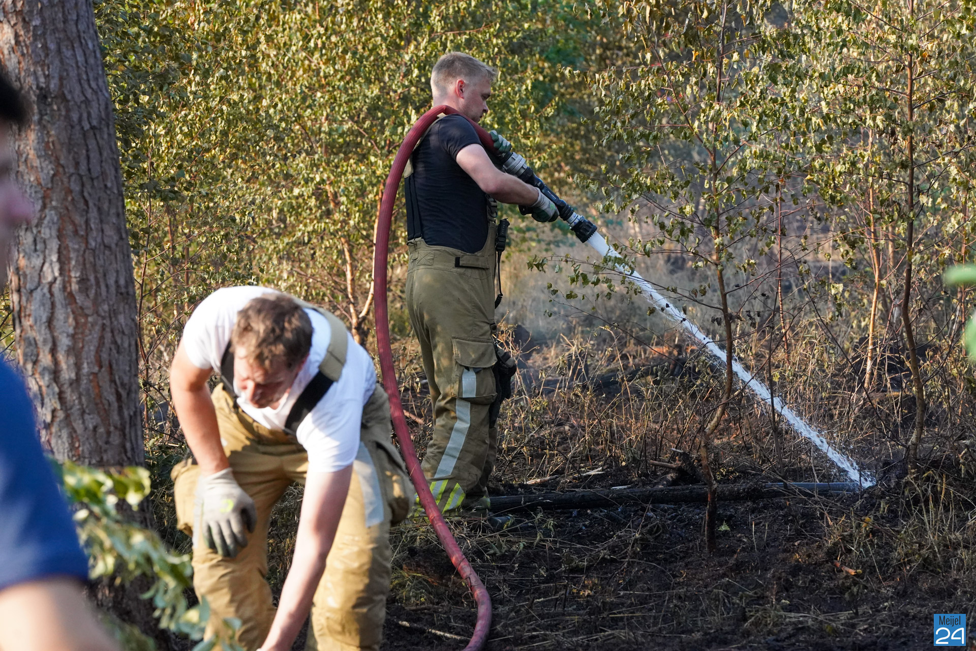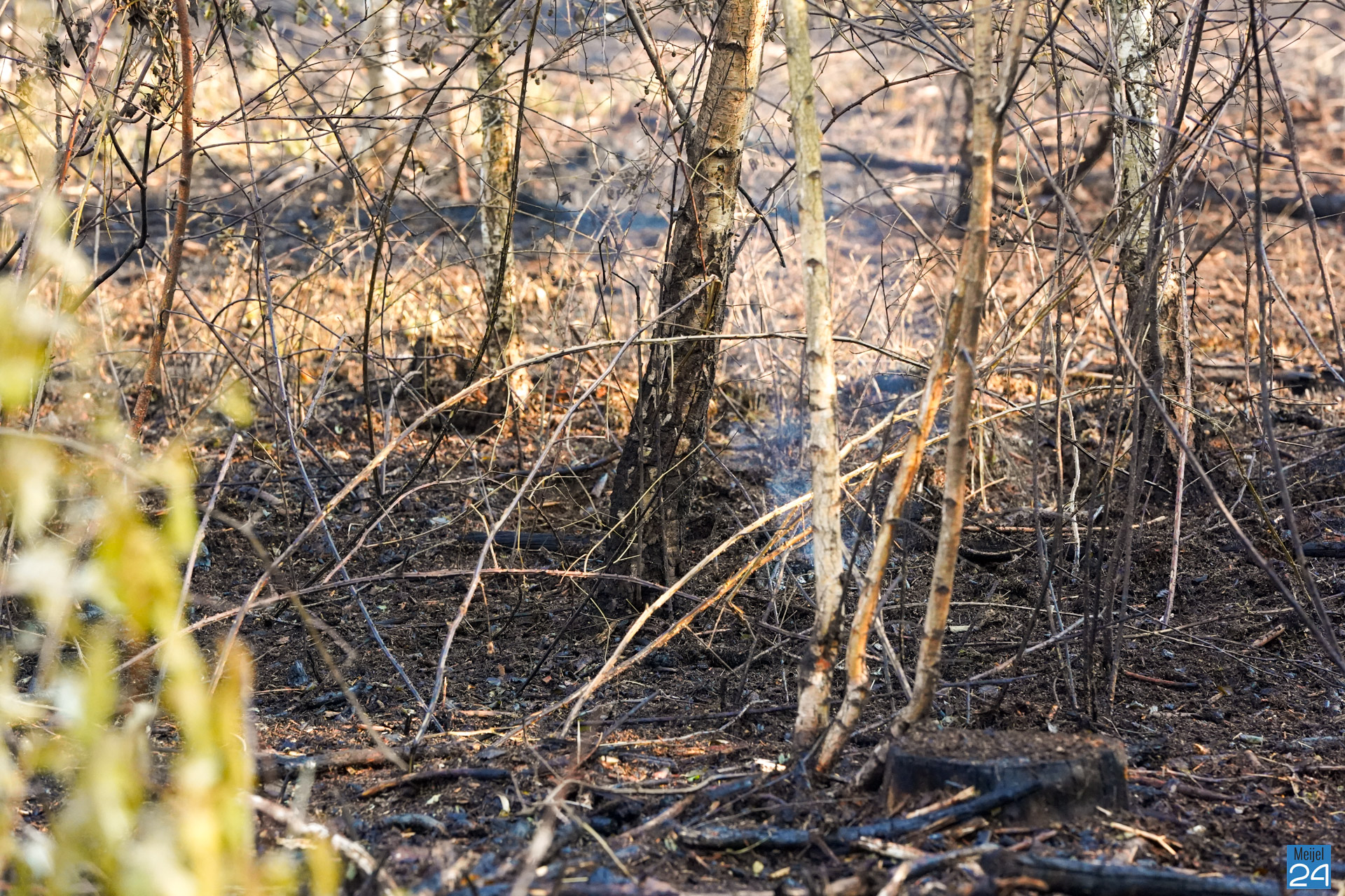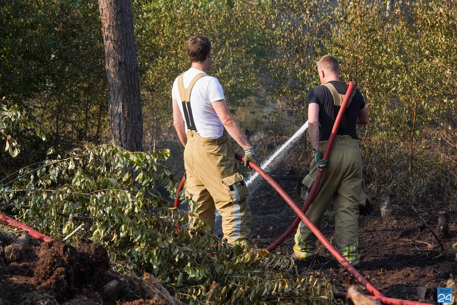 Opnieuw is de brandweer zondagmorgen teruggekeerd naar het Marisbaan in Grashoek. Het vuur was weer opgelaaid.