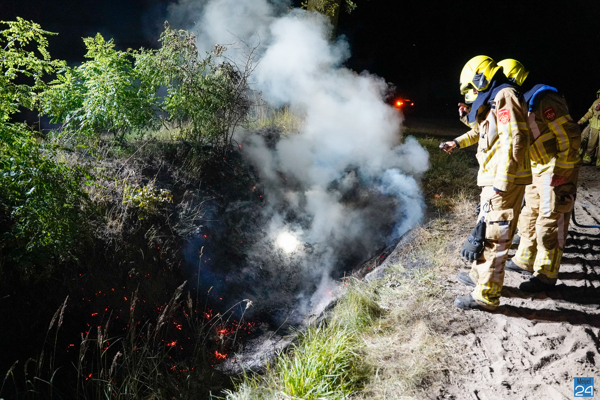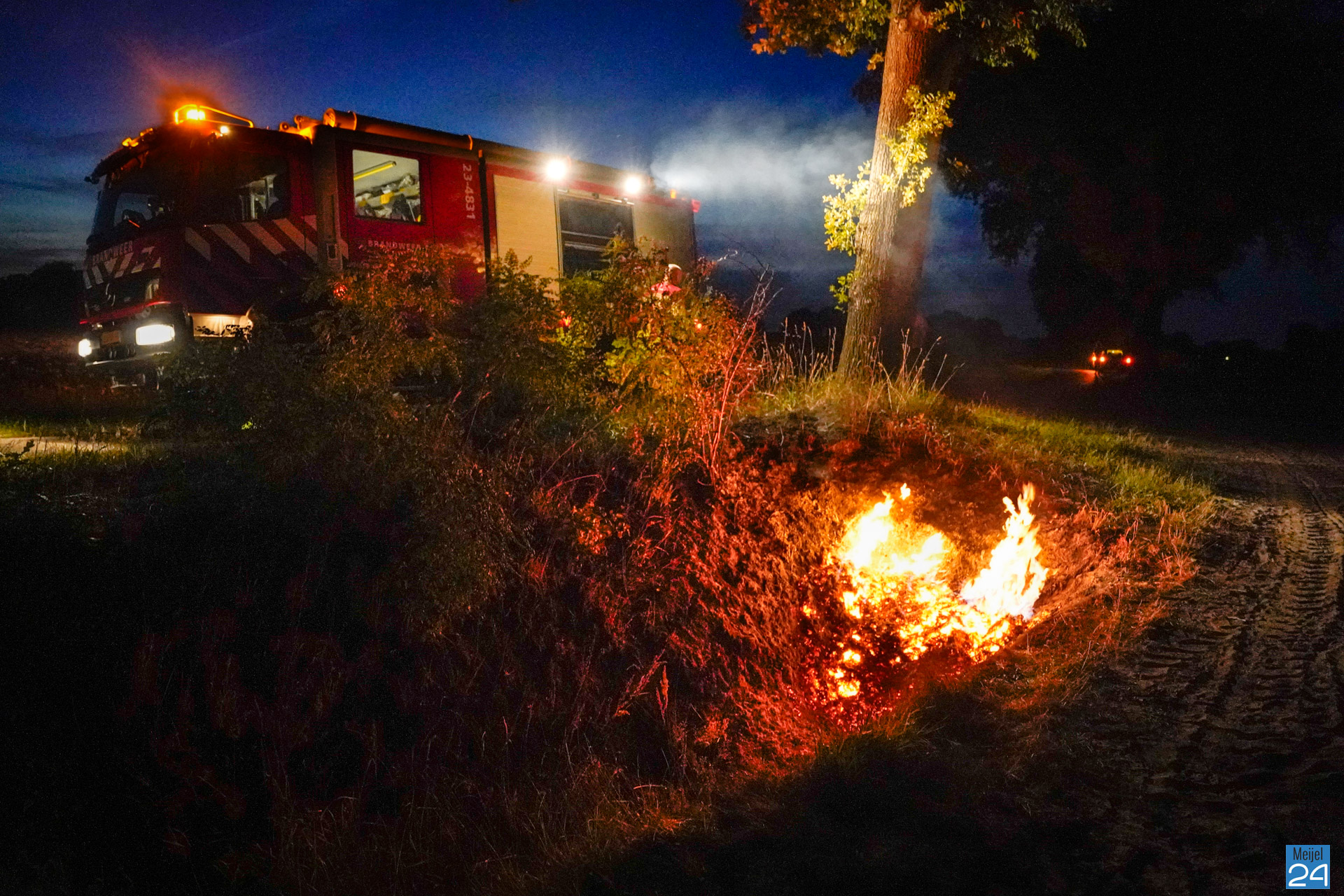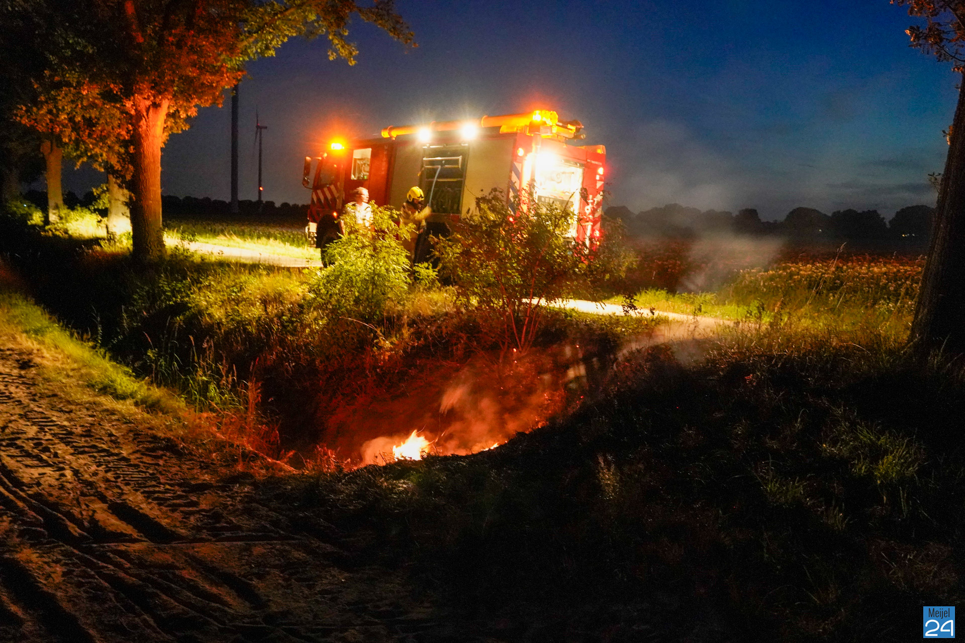 Een stuk berm aan de Visvijverweg in Ospel, net over de grens bij Meijel, is maandag aan het einde van de avond gaan branden. Hoe dat kon gebeuren is vooralsnog onduidelijk.