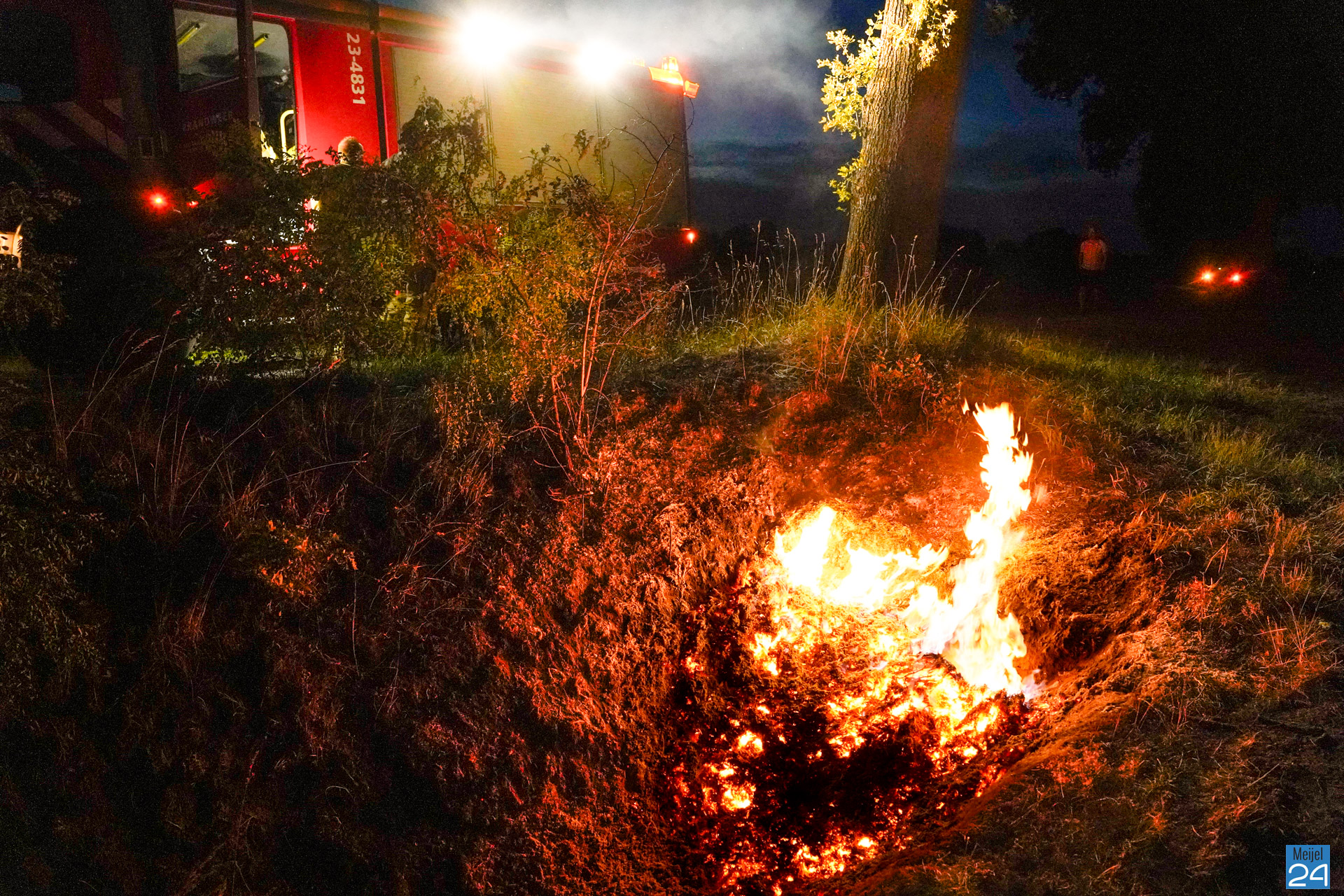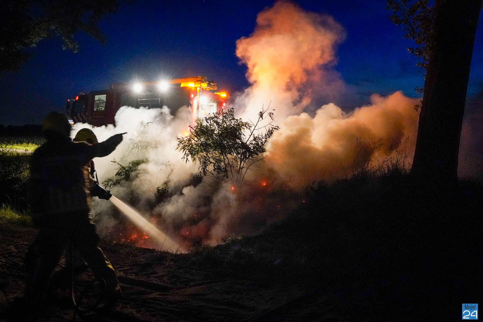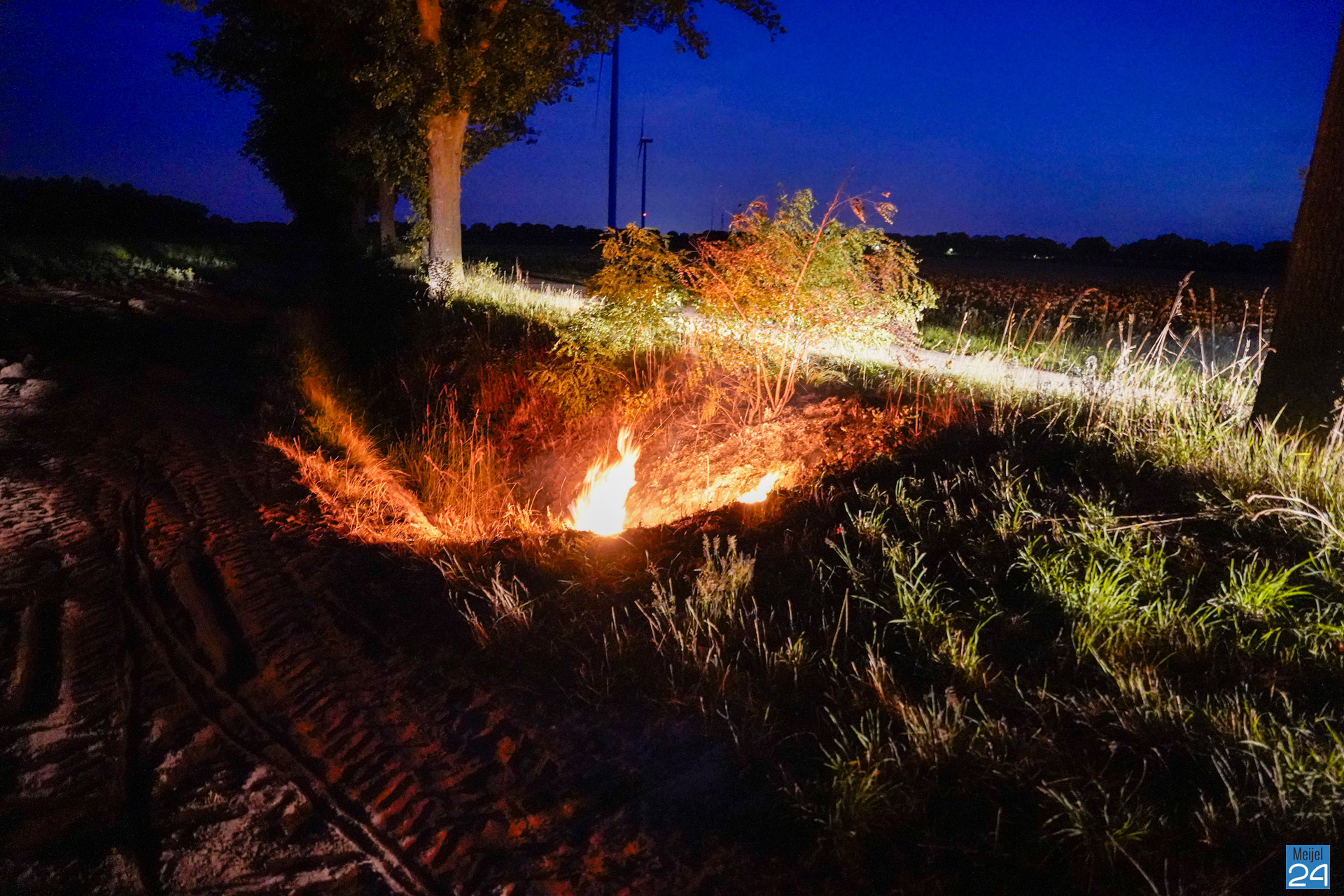 Een stuk berm aan de Visvijverweg in Ospel, net over de grens bij Meijel, is maandag aan het einde van de avond gaan branden. Hoe dat kon gebeuren is vooralsnog onduidelijk.