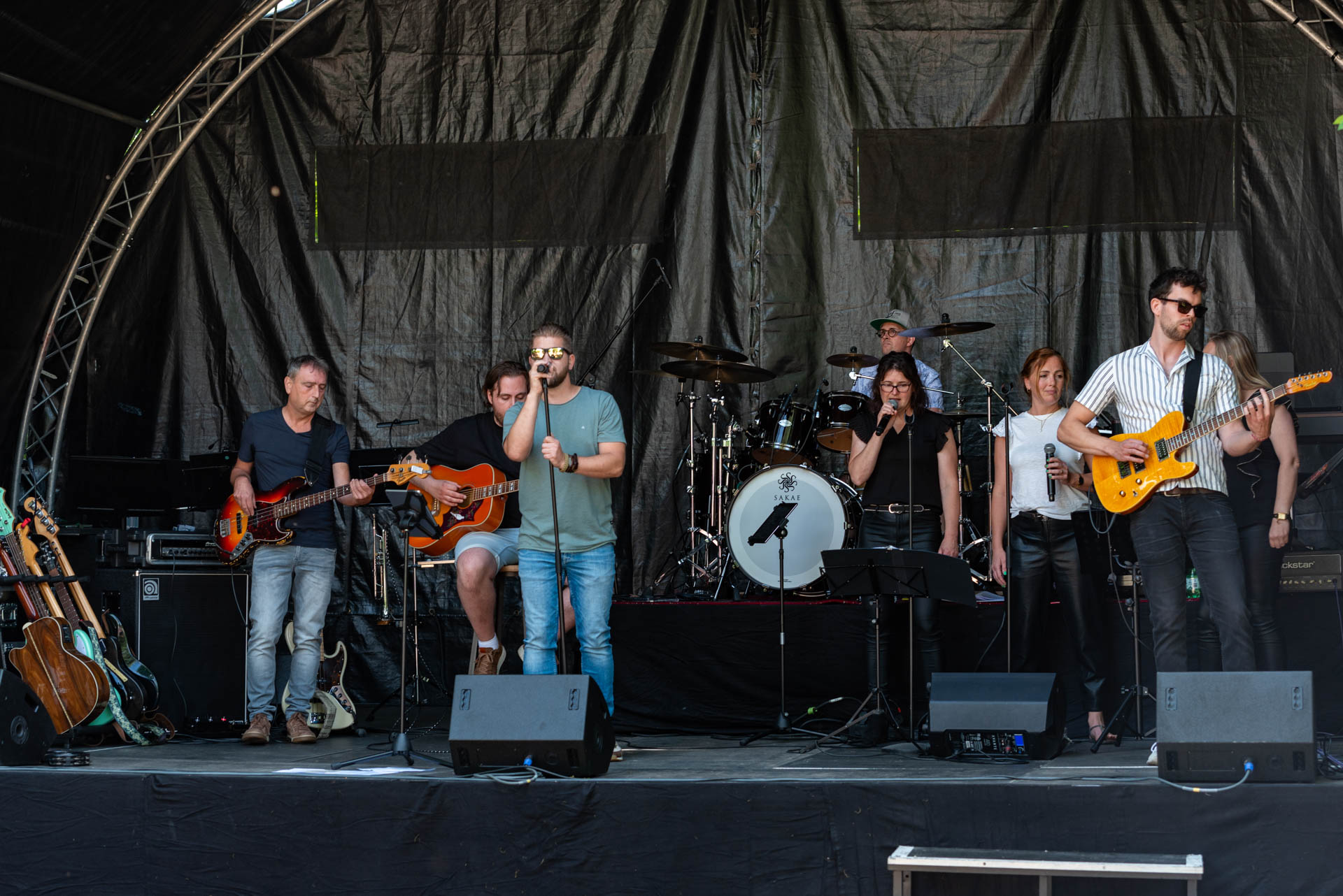 Vanaf 13.00 uur werden de bezoekers getrakteerd op verrassende bandsamenstellingen die de hele middag door wisselden. Het repertoire was divers en bood voor ieder wat wils. Het enthousiasme van de muzikanten en de energieke optredens zorgden voor een geweldige sfeer in het park. Naast de muziek konden de bezoekers genieten van heerlijke hapjes en verfrissende drankjes. De zon scheen volop, wat zorgde voor een zomerse ambiance waarin iedereen kon ontspannen en genieten van de muzikale klanken.