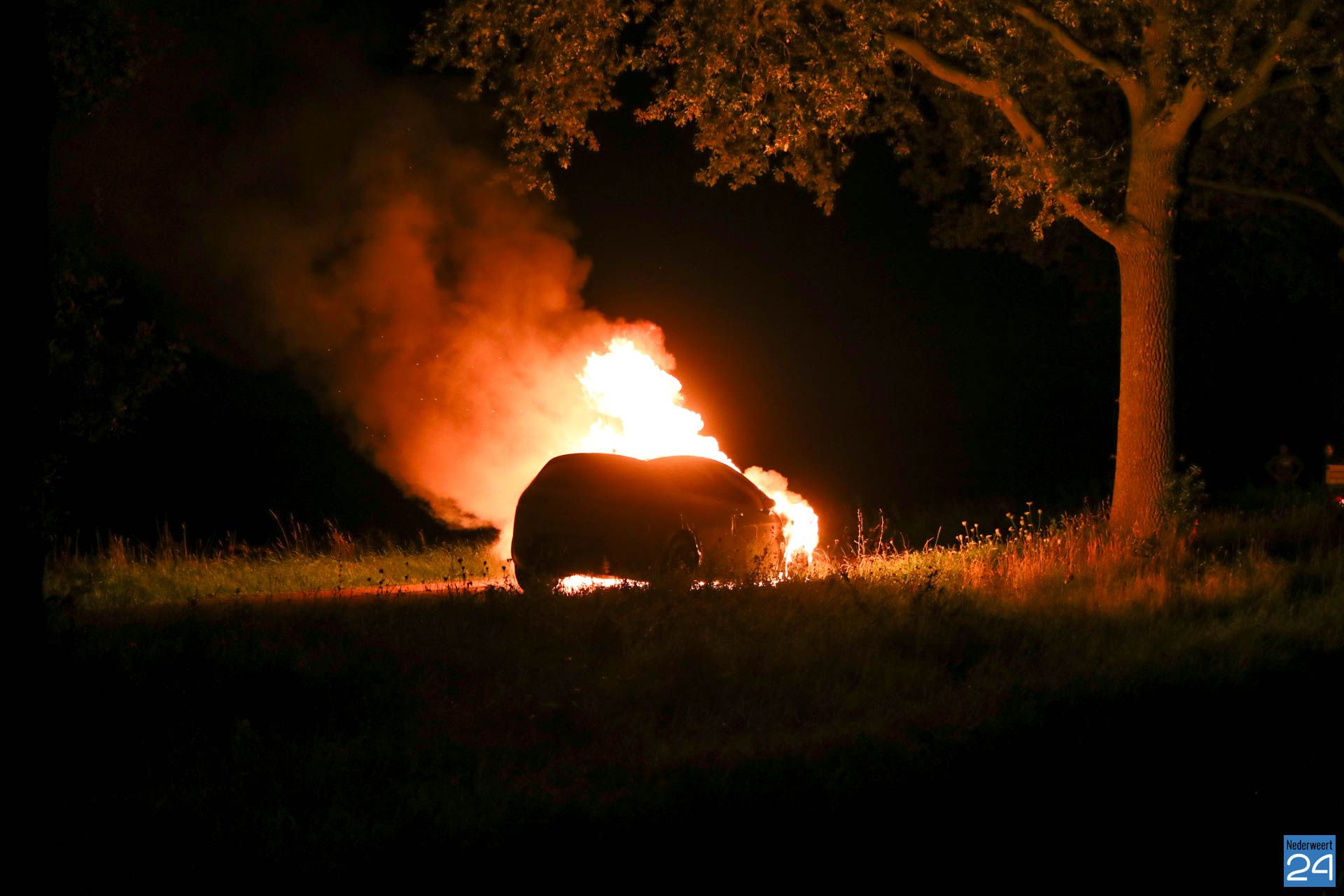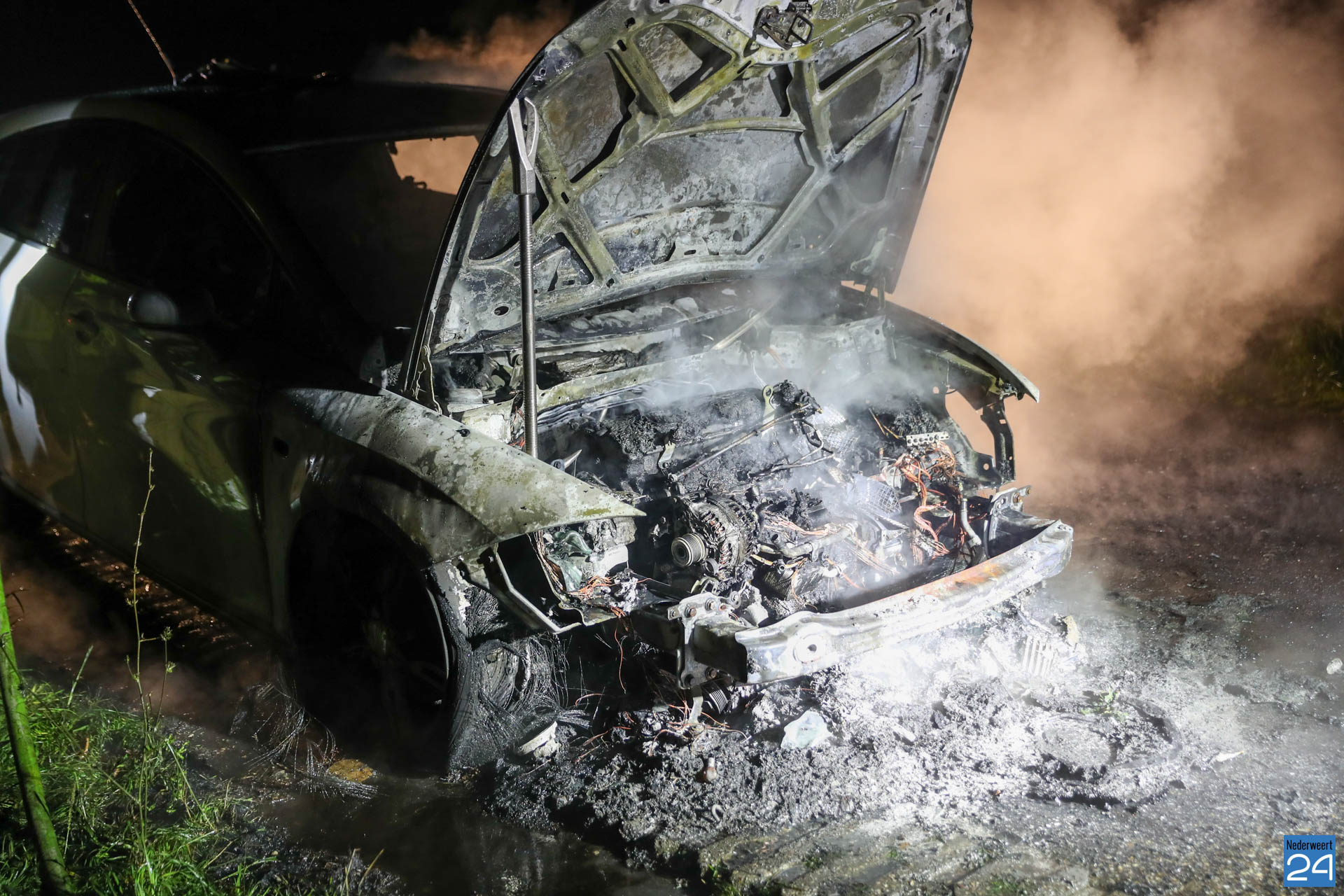 Vrijdagavond, even voor half elf, is een auto volledig uitgebrand op de Kruisstraat in Nederweert-Eind.
