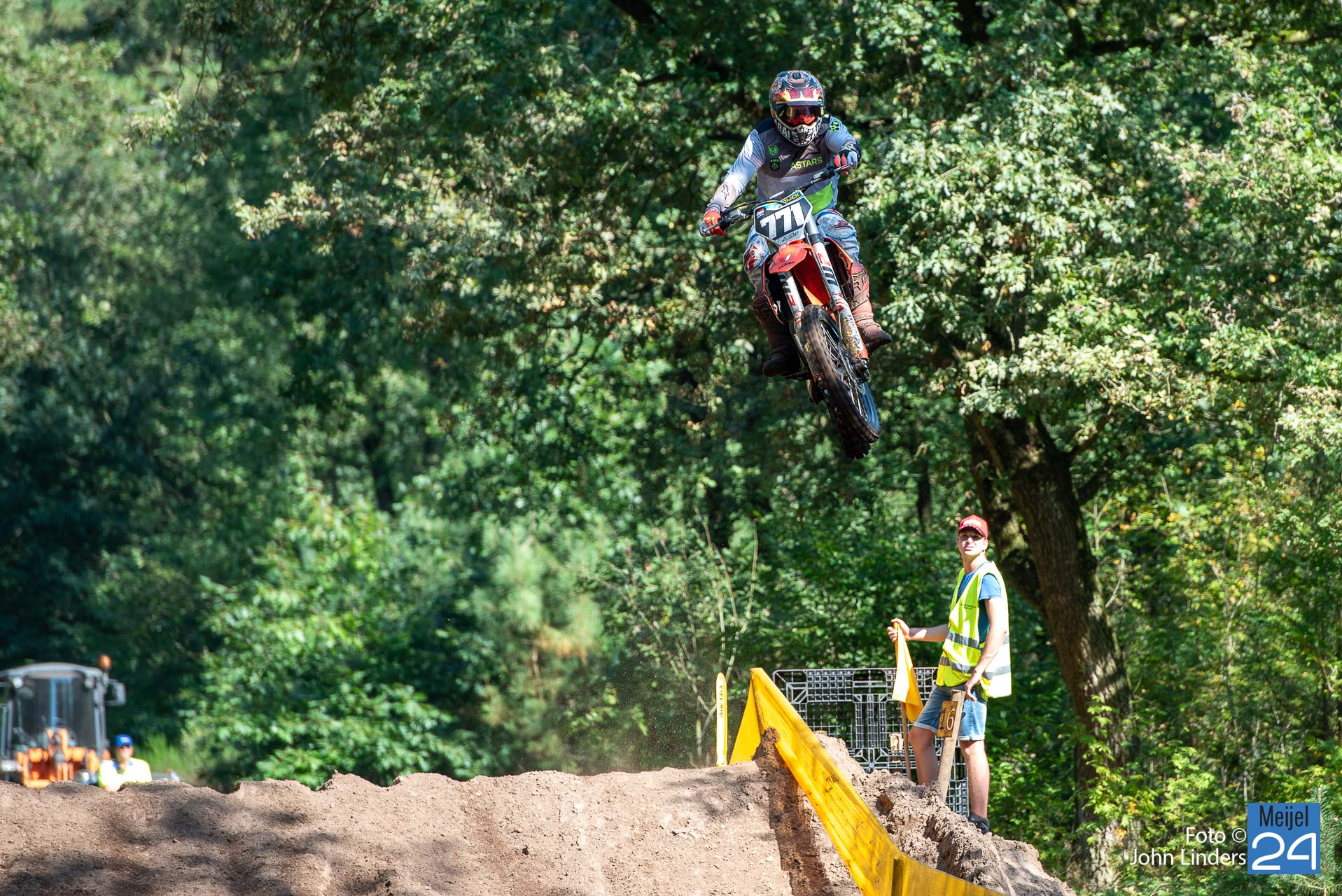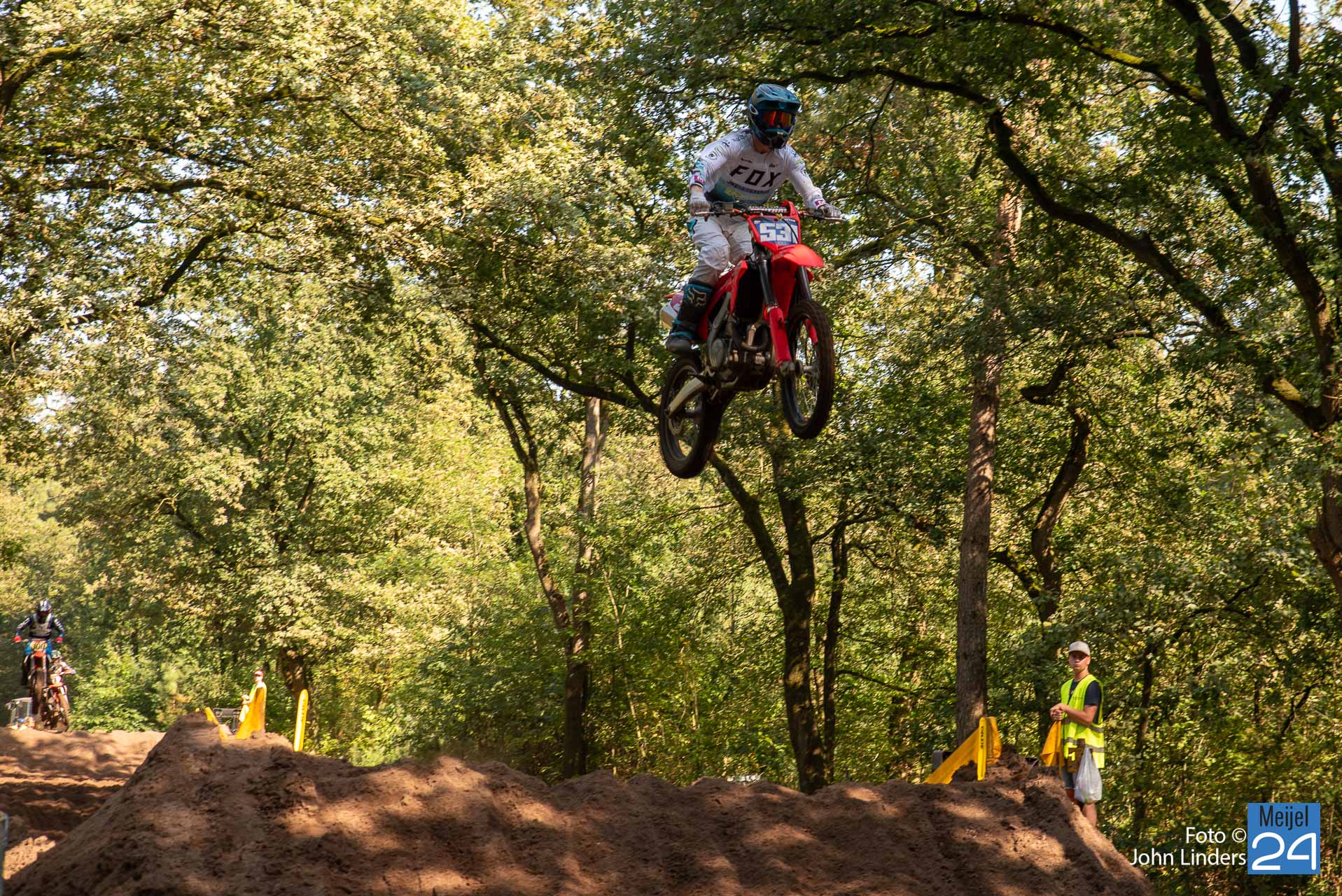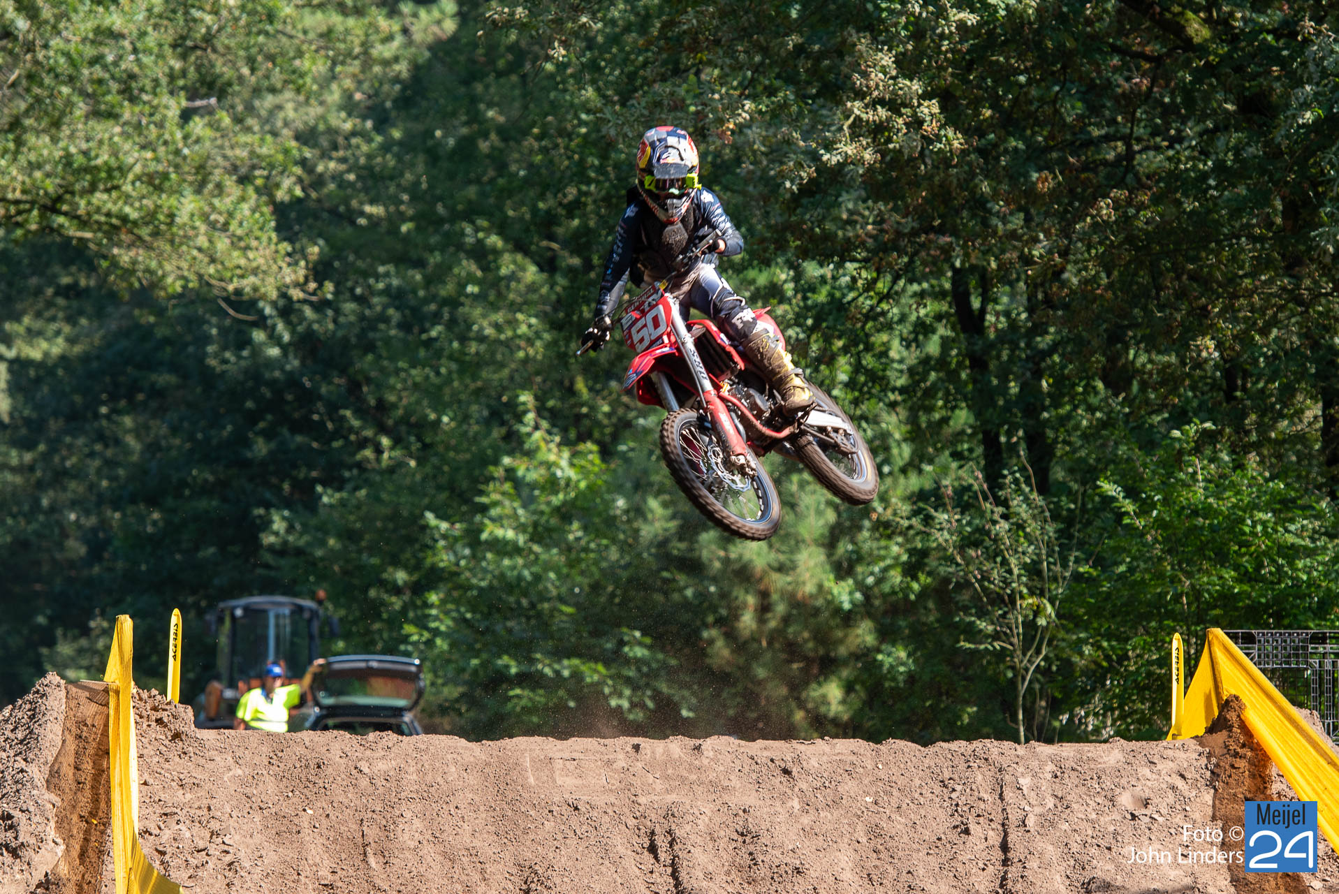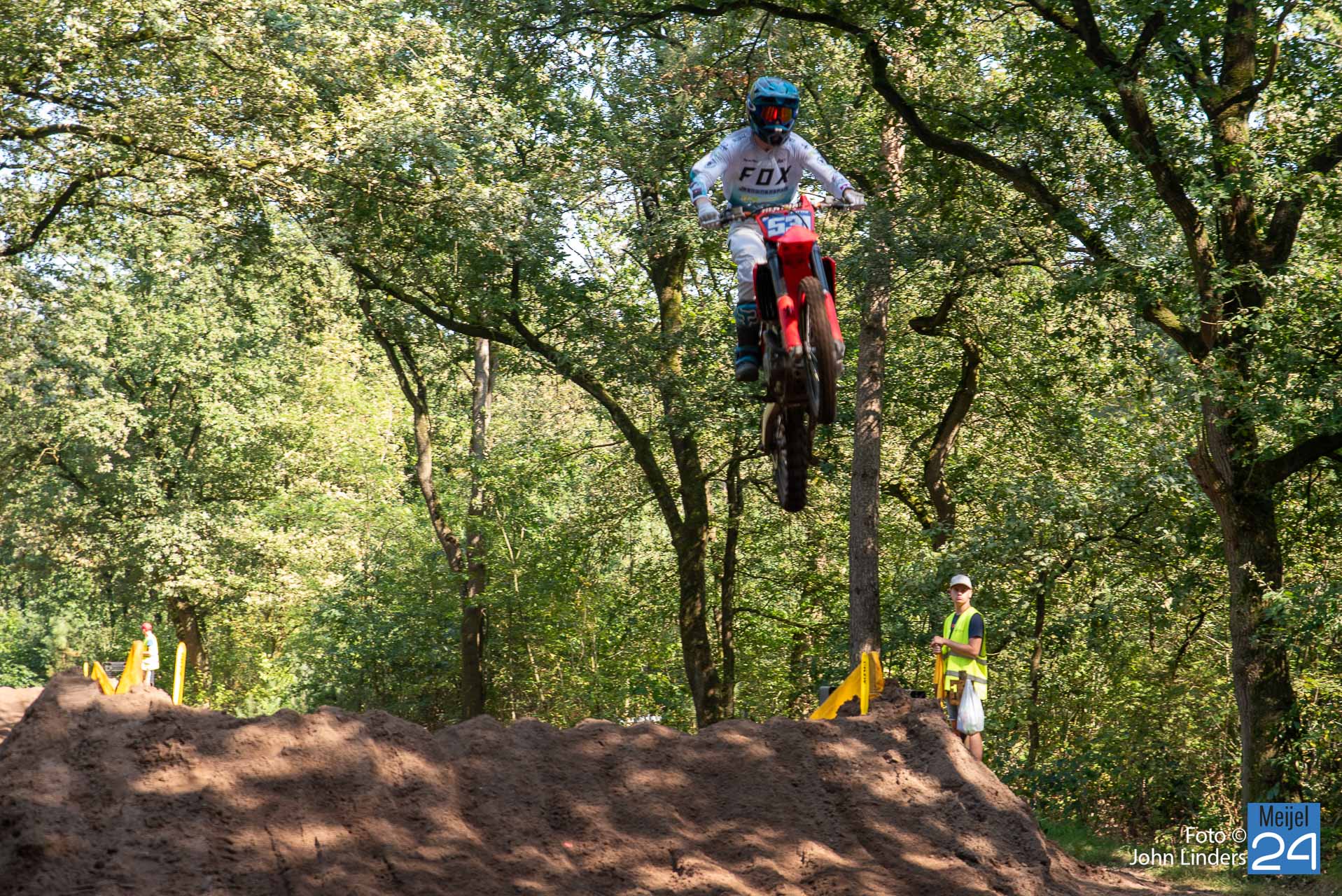 Wil je zelf ook eens genieten van dit spektakel in de bossen van Meijel? Dan is morgen zondag 10 september weer een kans. Dan komen er vele rijders aan de start in de 250cc en 500cc klasse en dat beloofd weer geweldige snelheden en hoge spectaculaire sprongen op de vele springbulten die het circuit “De Vossenberg” kent.