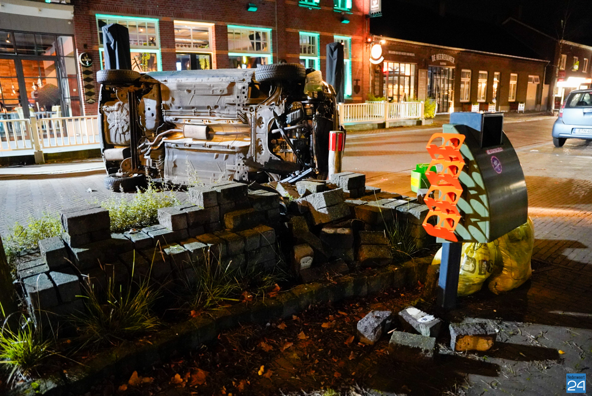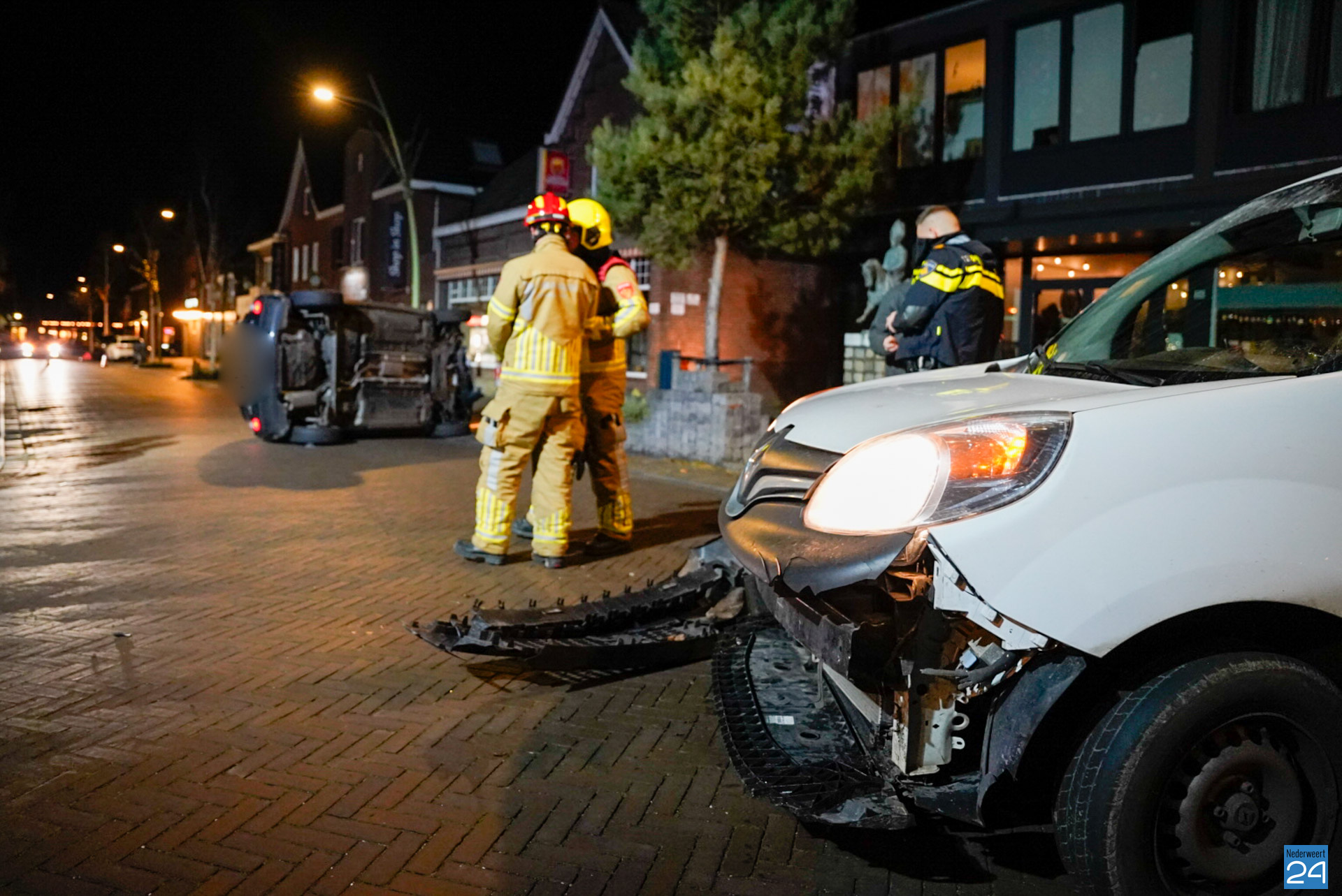 De bestuurder van de bedrijfsauto kwam uit de Kurversweg gereden. De automobiliste, komende vanaf de richting van de kerk, zag de bestuurder over het hoofd. De auto werd aangetikt, schoof een stukje door en kwam vervolgens op de zijkant terecht. Beide voertuigen raakten beschadigd. Ook werden decoratiestukken op het trottoir geraakt.