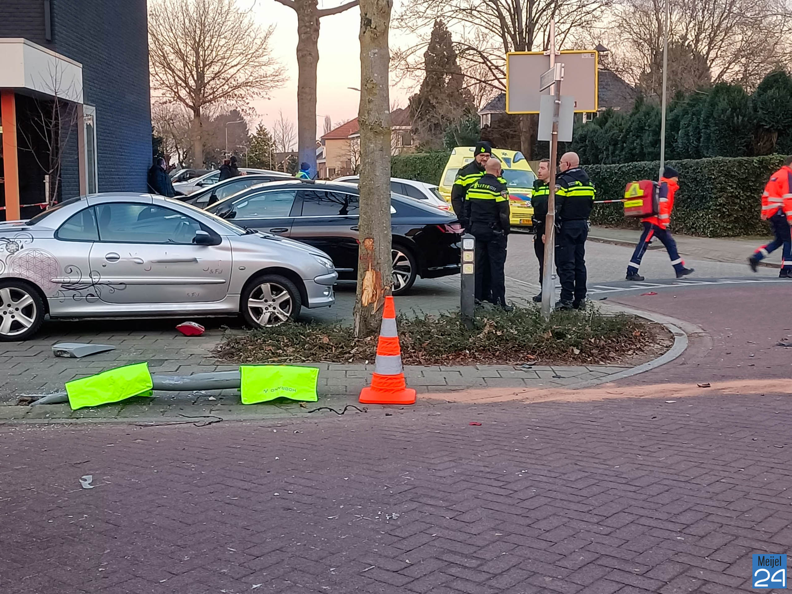 Woensdagmiddag is een auto tegen een lantaarnpaal aangereden op de Ruijsstraat ter hoogte van de Tuindersweg in Helden.