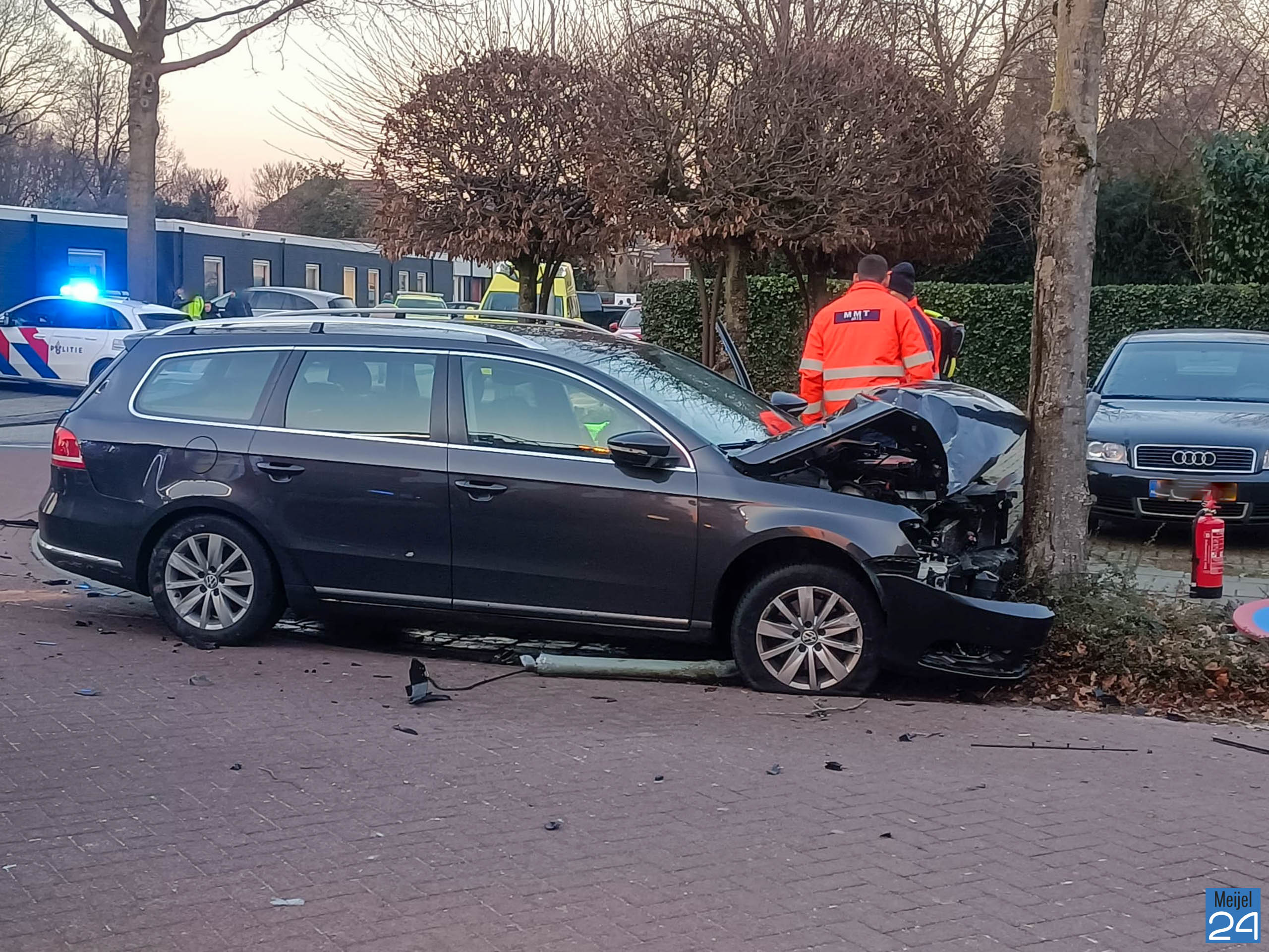 Een personenauto reed door nog onbekende oorzaak eerst tegen een lantaarnpaal en vervolgens tegen een boom. Hoe het ongeluk heeft kunnen gebeuren is nog onbekend. De politie stelt een onderzoek in.