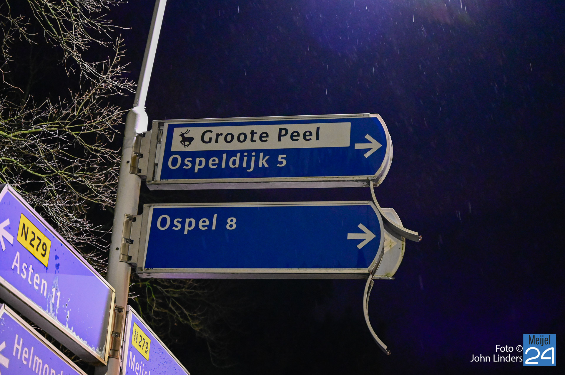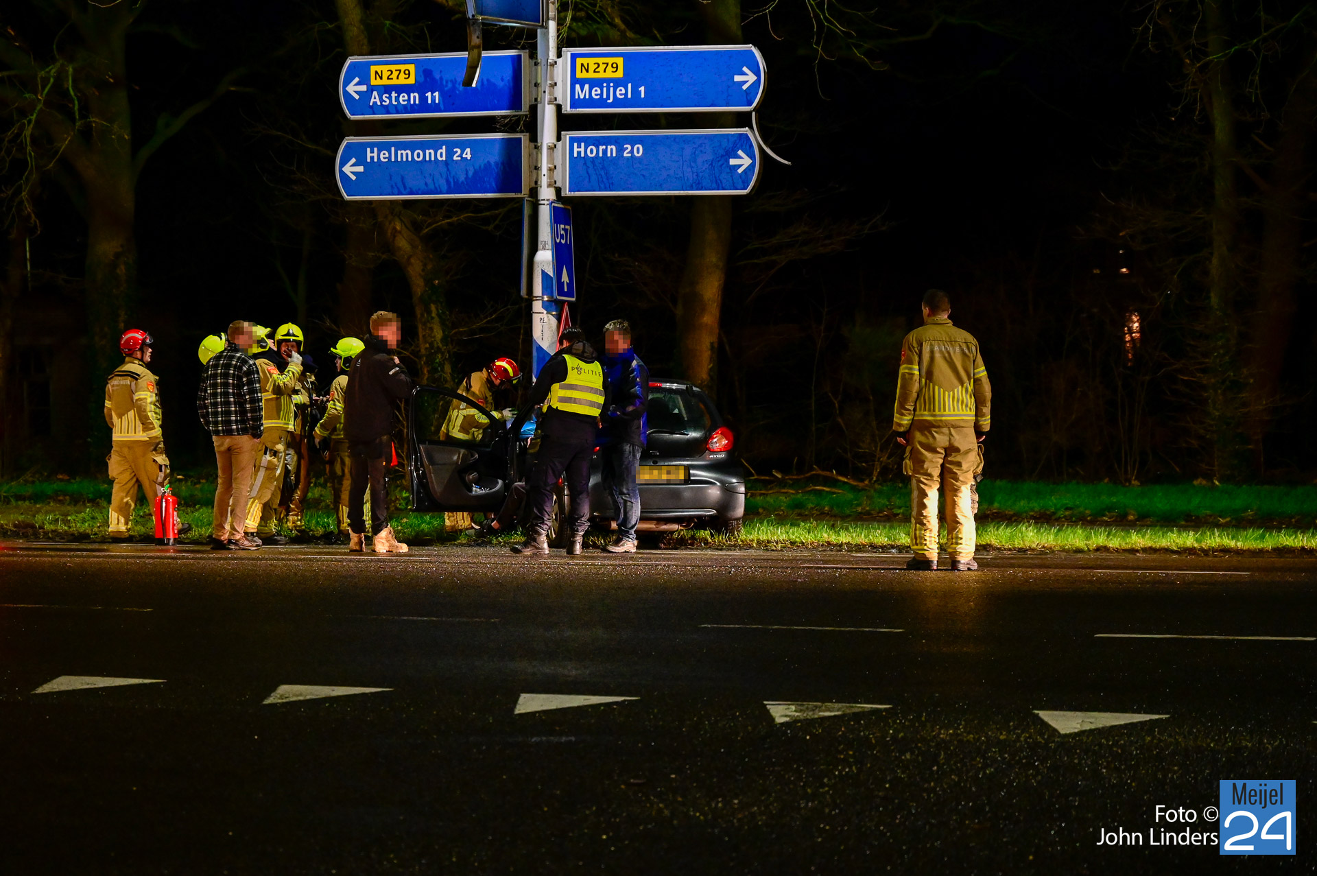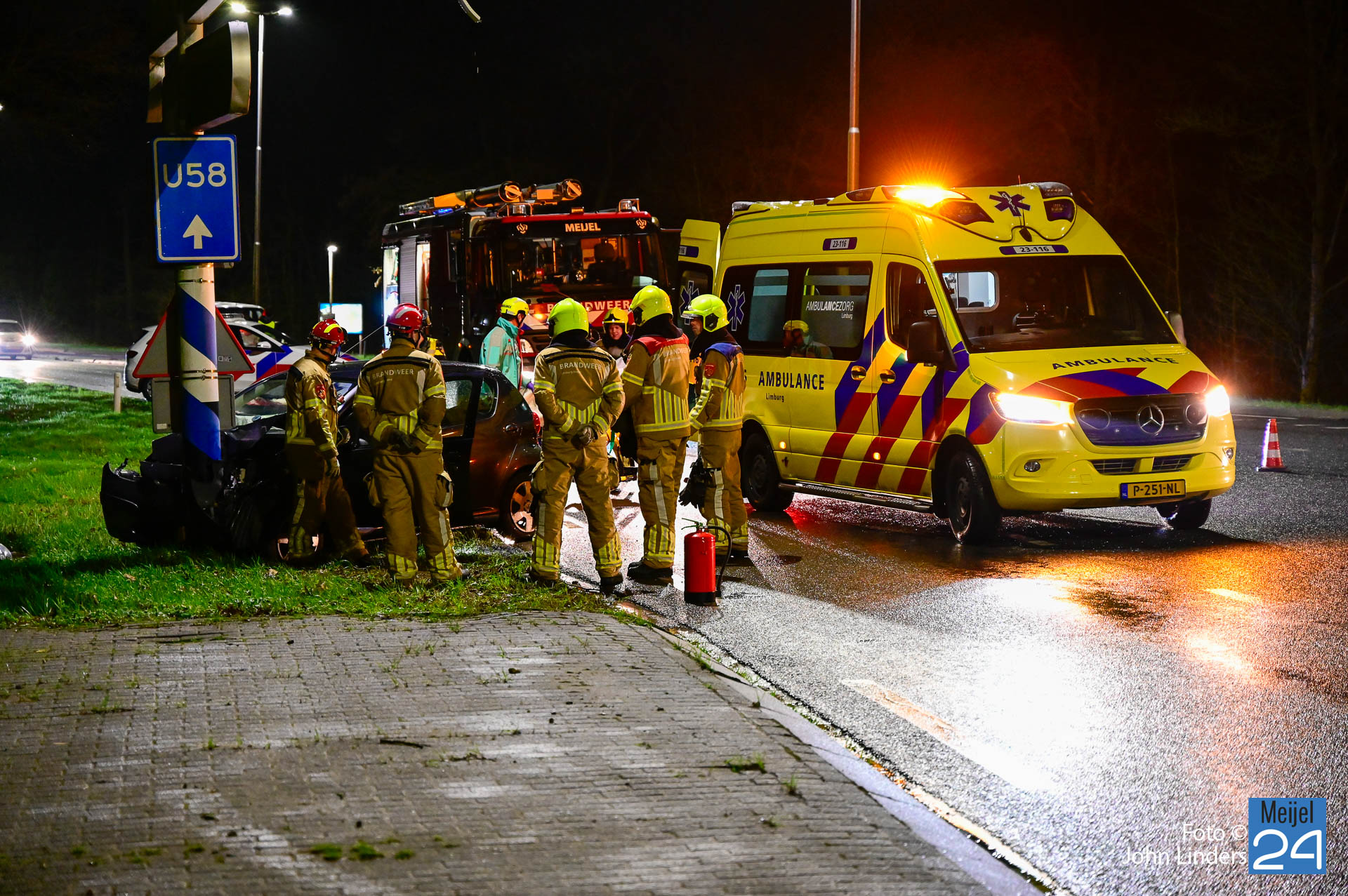 Een auto reed vanuit Ospel richting Meijel. Bij de t-splitsing ging het mis. Door nog onbekende oorzaak knalde de bestuurder met zijn auto hard tegen een paal van verkeersborden. De bestuurder is met ondersteuning van de brandweer en het ambulancepersoneel uit het voertuig gestapt. Hij is voor nader onderzoek meegenomen naar het ziekenhuis.