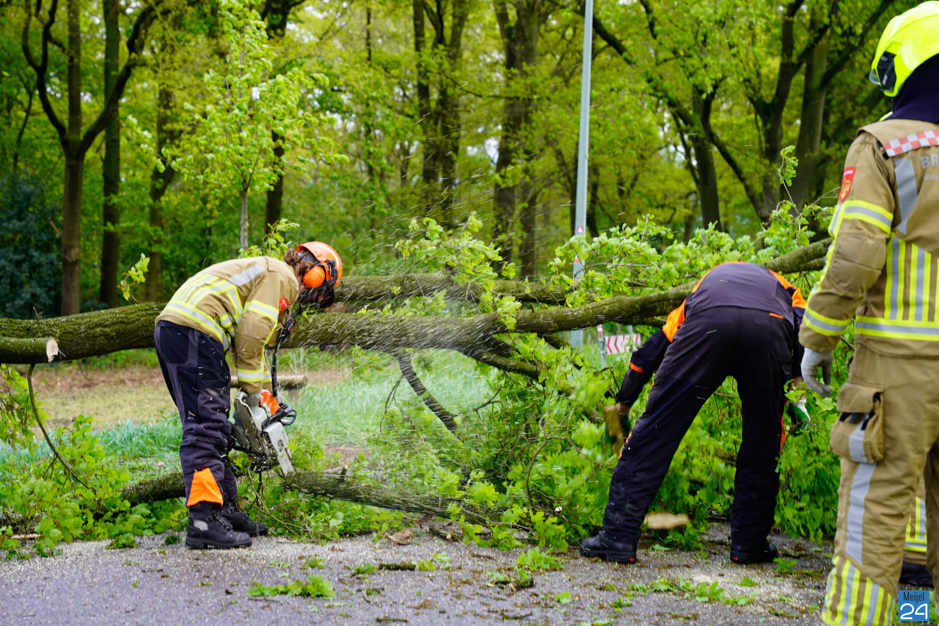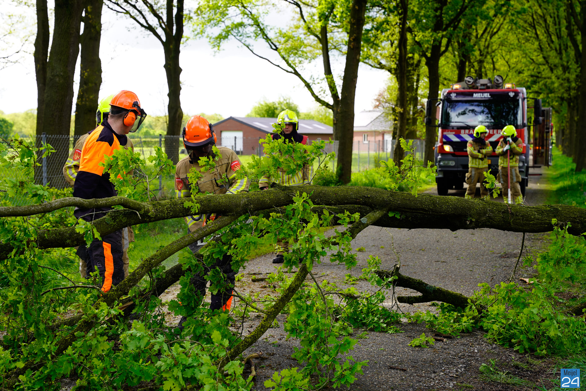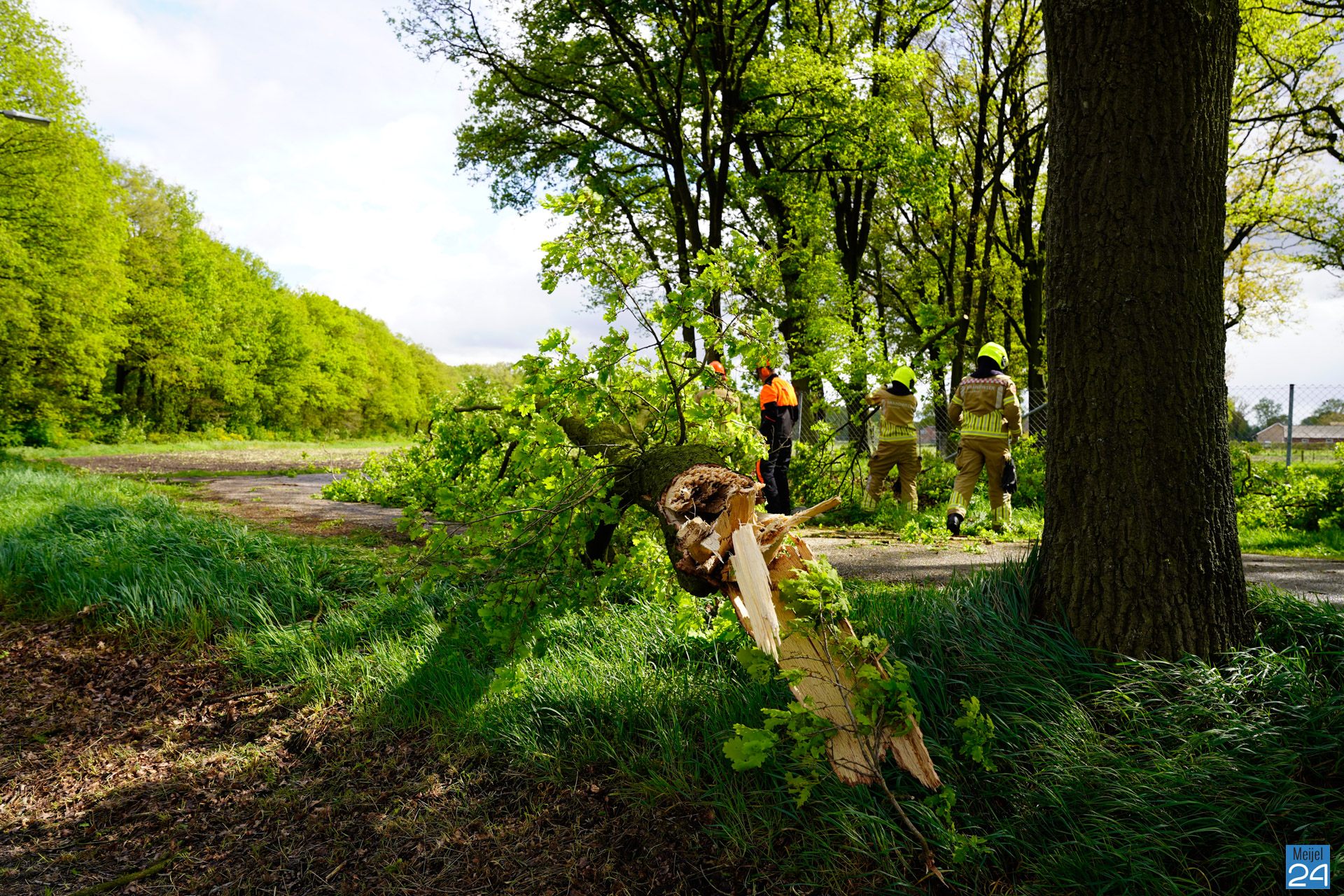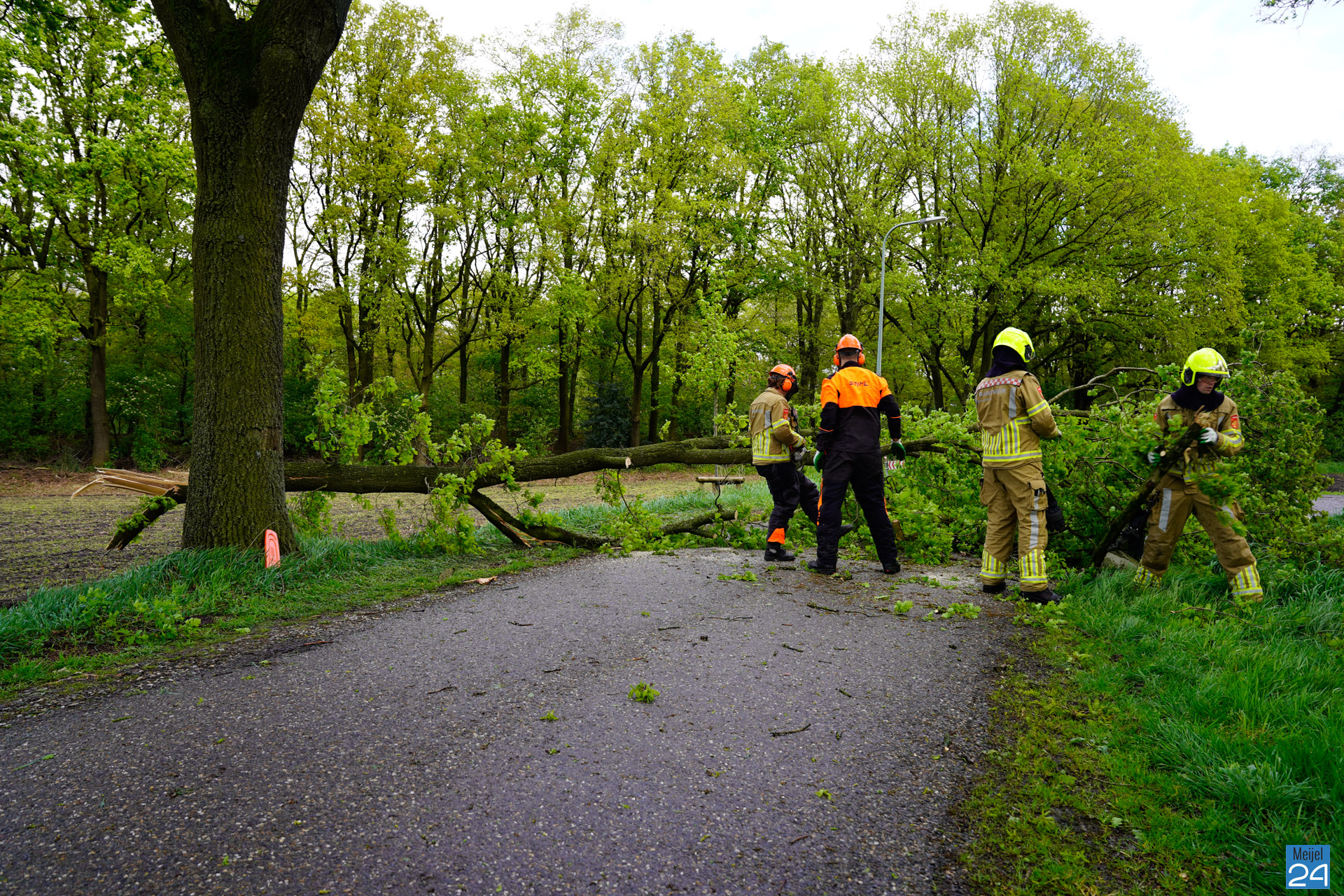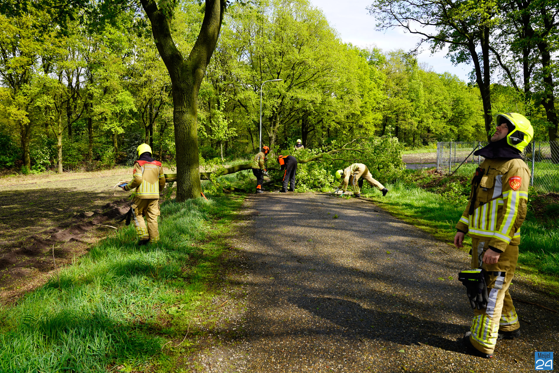 De brandweer van Meijel moest vrijdagmiddag in actie komen voor een gevaarlijk hangende grote tak aan het Vieruitersten.