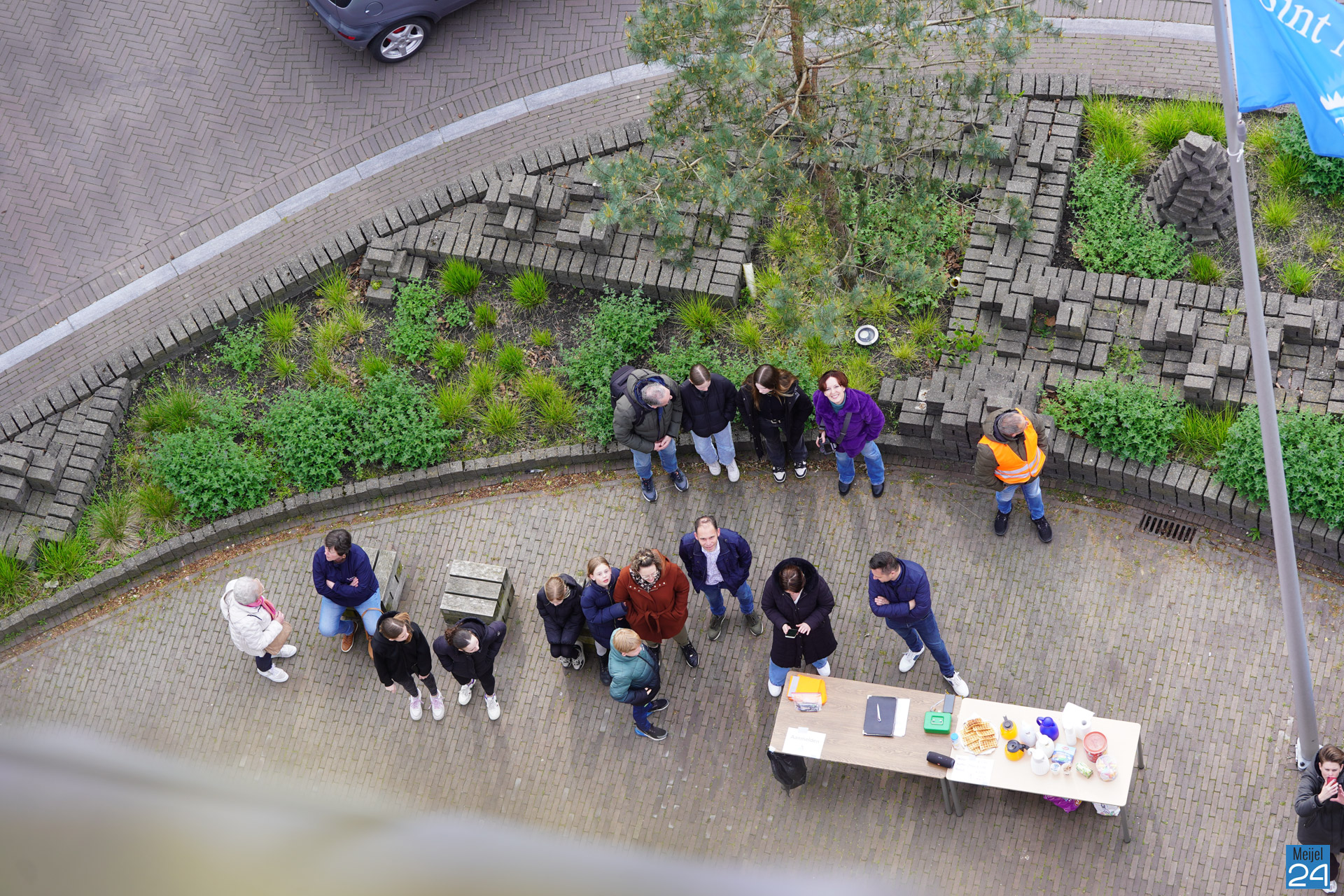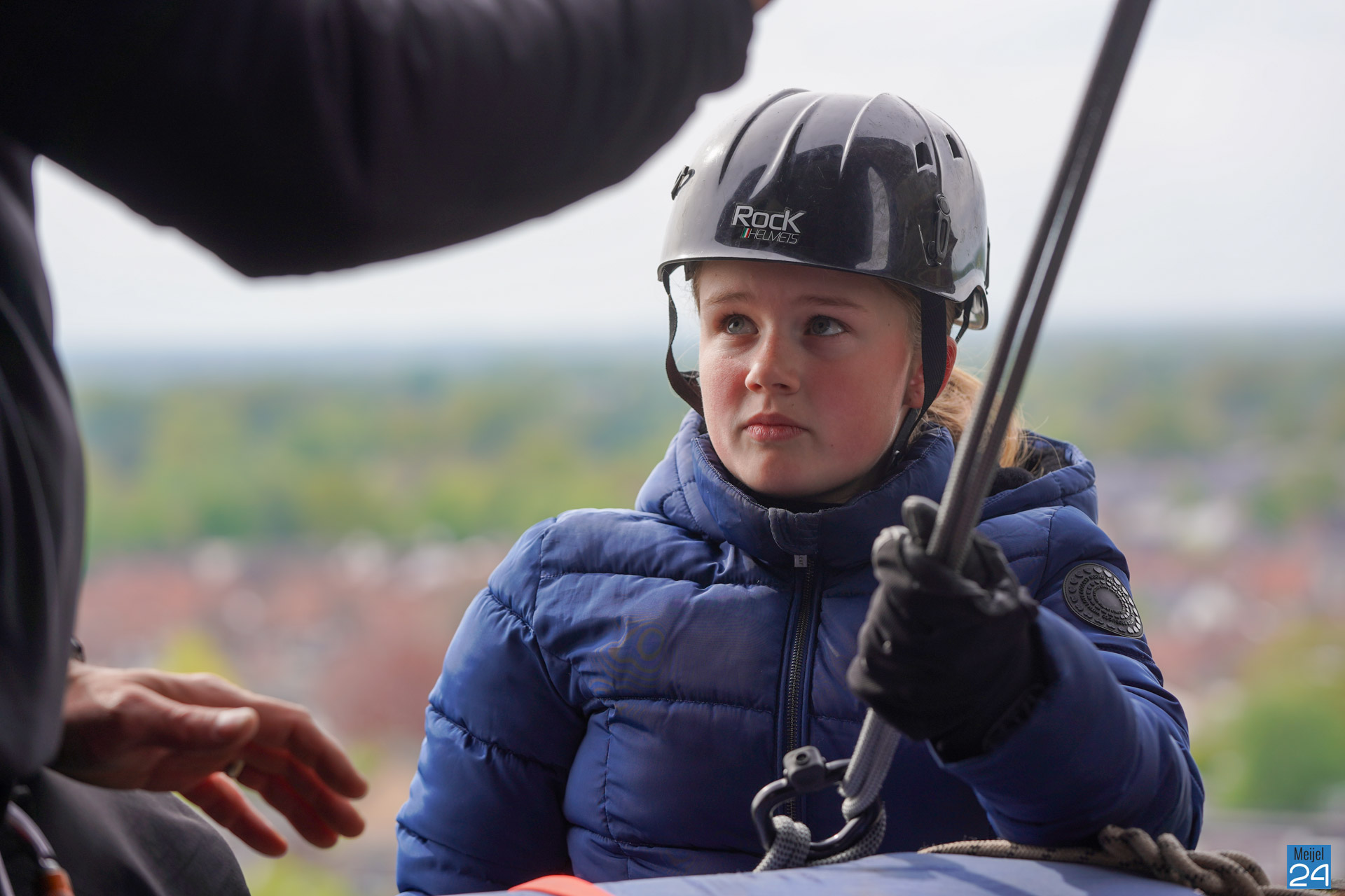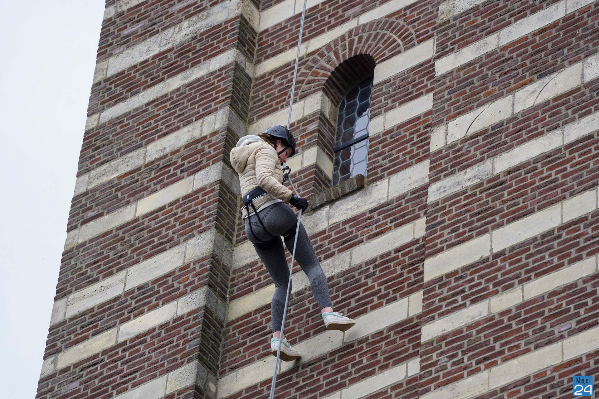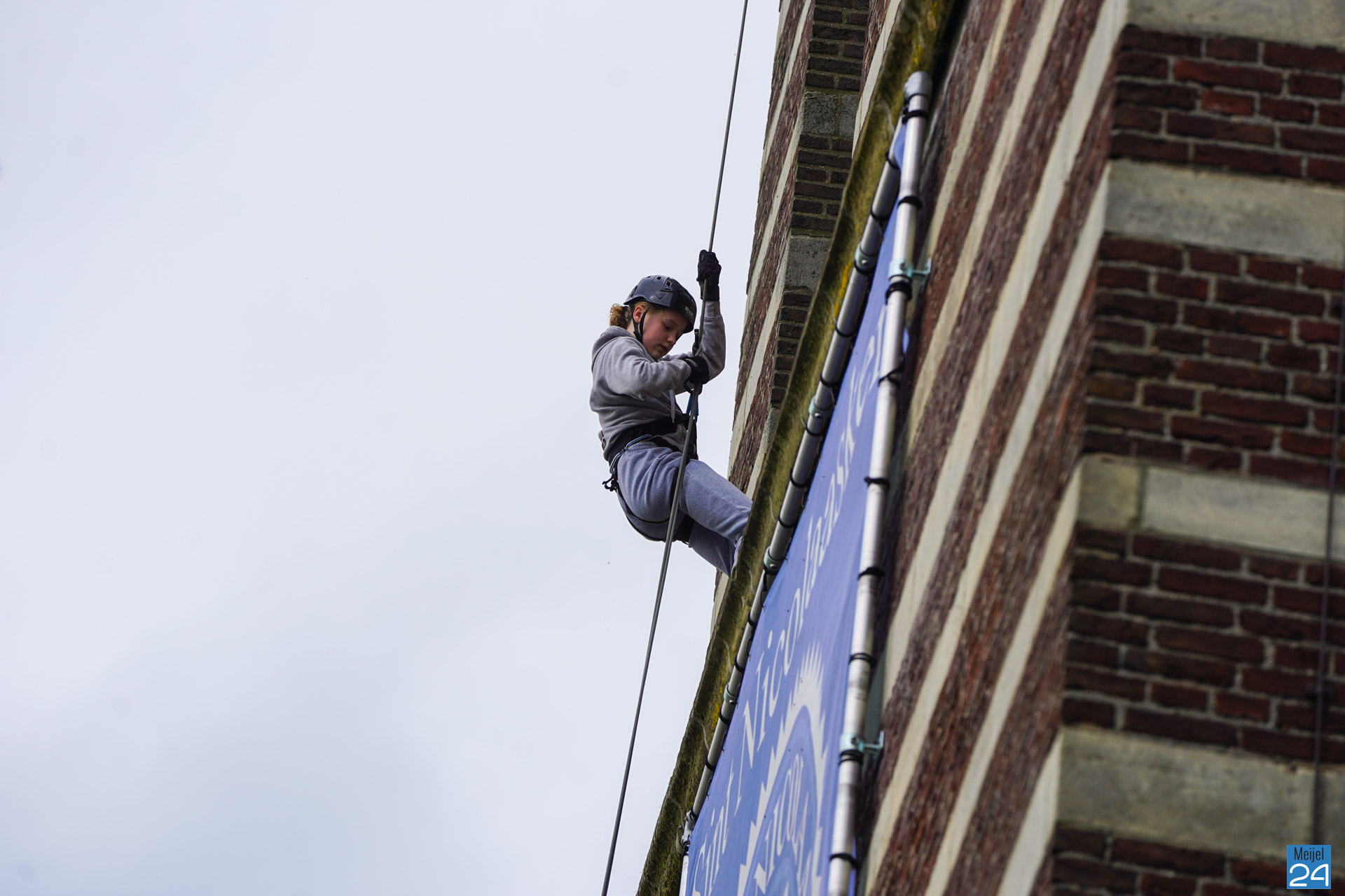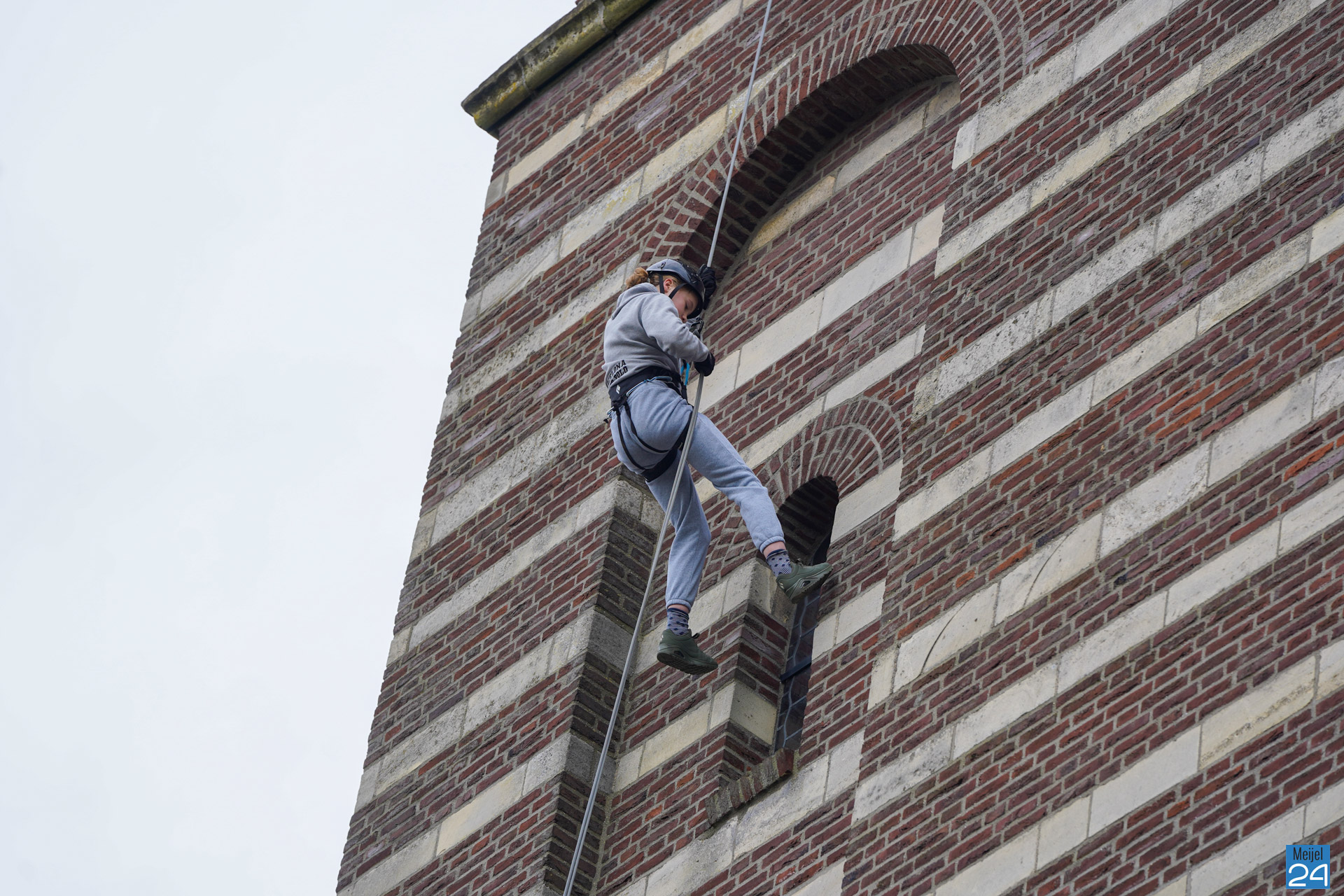 Tussen het abseilen door konden de deelnemers genieten van het uitzicht over het Meijelse dorp. Om het half uur moesten alleen de oren even dichtgehouden worden, de kerkklokken waren immers gewoon in dienst.