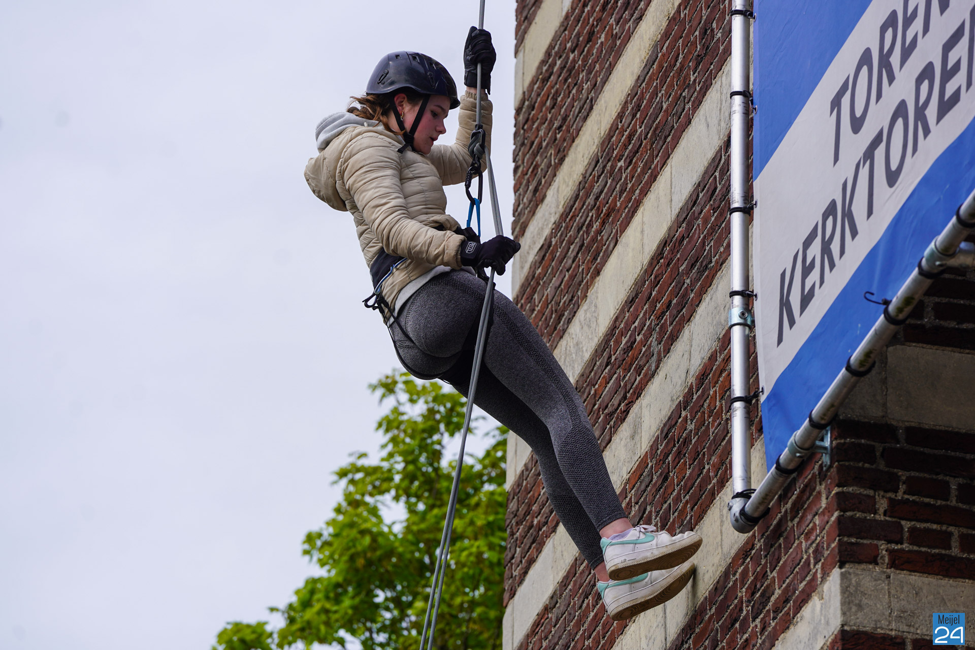 Abseilen van de kerk in Meijel