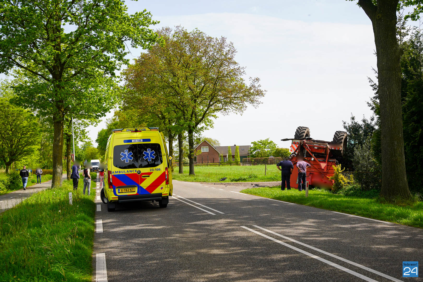 De bestuurder van de personenauto werd opgevangen door buurtbewoners en is uiteindelijk door de ambulance meegenomen voor verder onderzoek. De politie heeft de weg afgezet om onderzoek te kunnen doen naar hoe het ongeval heeft kunnen gebeuren. De bestuurder van het landbouwvoertuig kwam met de schrik vrij.