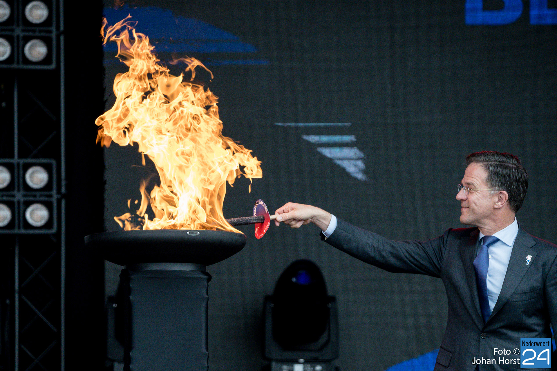 Demissionair minister-president Mark Rutte is naar Roermond gekomen om het vrijheidsvuur aan te steken. Onder andere Claude en John Tana stonden zondag op het programma.