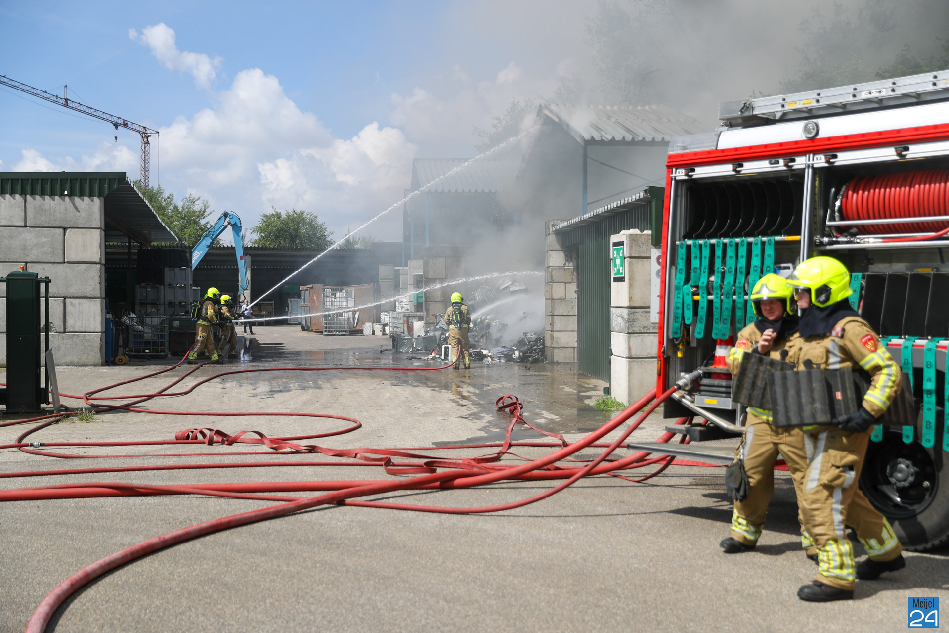 De brand werd ontdekt door een medewerker van het bedrijf, die direct de brandweer waarschuwde. De brandweer schaalde snel op naar ‘Middel Brand‘, waardoor meerdere blusvoertuigen ter plaatse kwamen. Dankzij hun snelle optreden kon de brand beperkt blijven tot de ‘bunker‘ waar het elektronische afval was opgeslagen. Volgens de brandweer gaat het om een afval van ‘witgoed‘. De afvalhoop wordt uit elkaar getrokken door een kraan om vervolgens volledig te kunnen blussen.