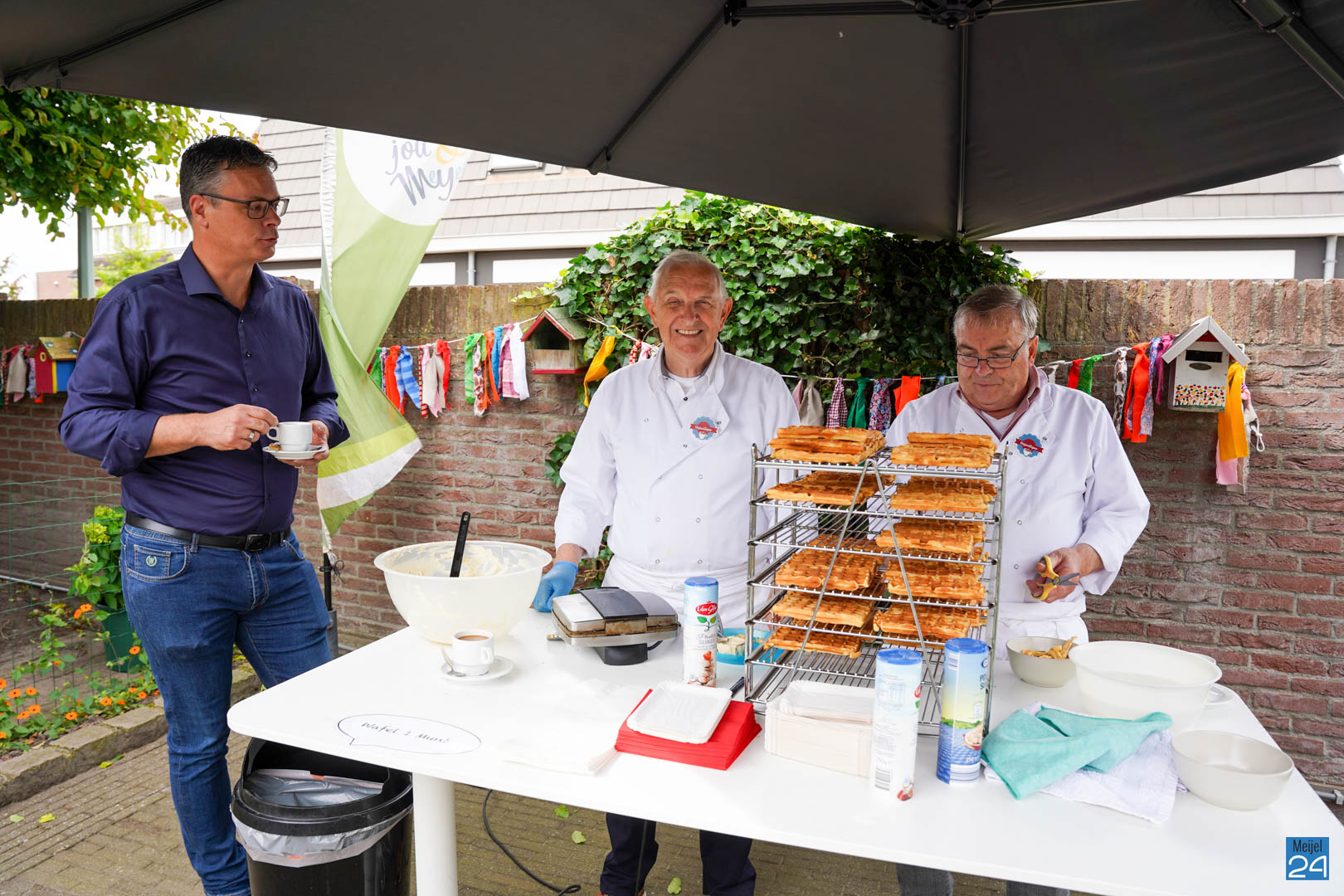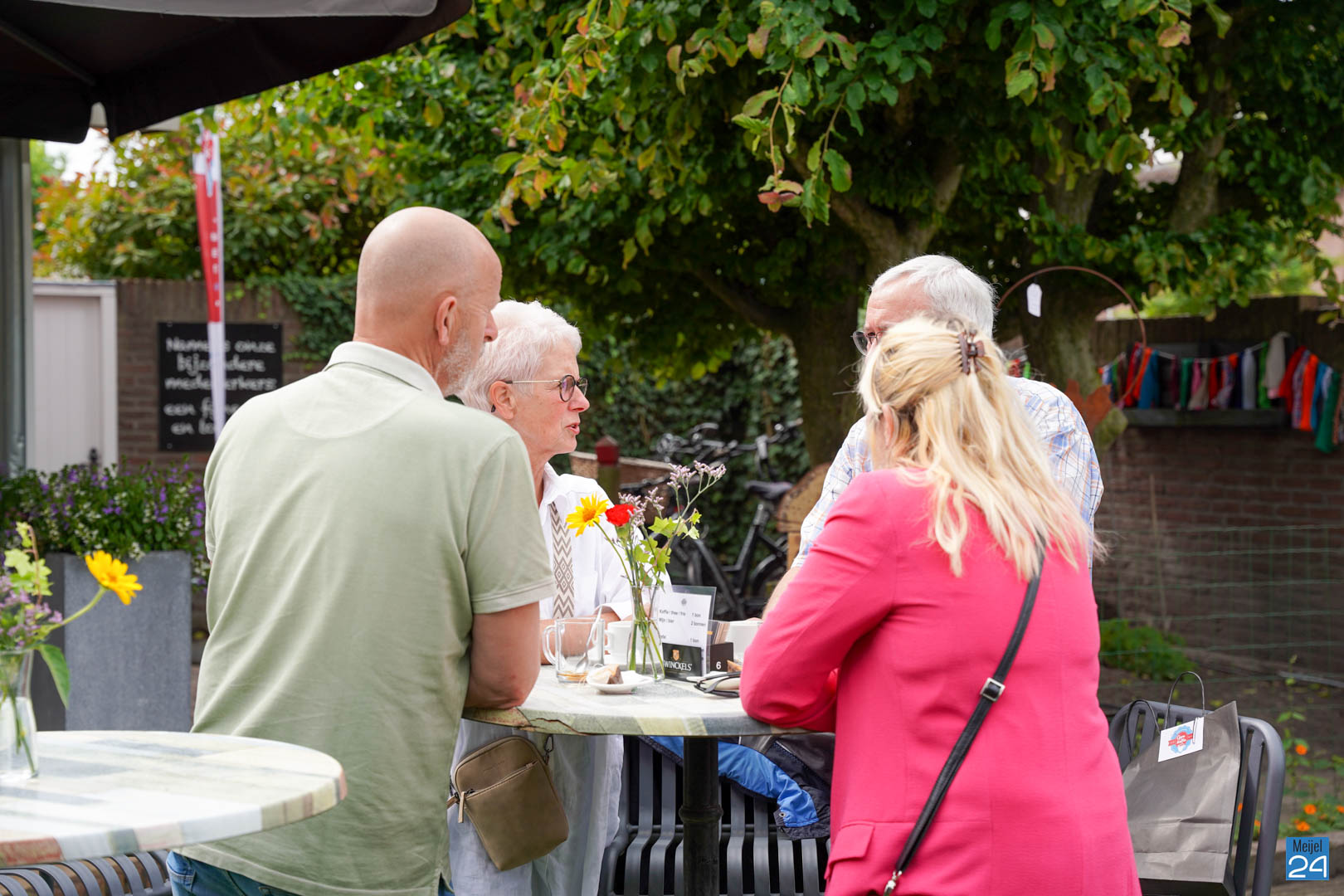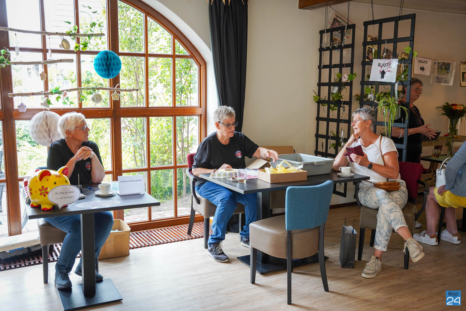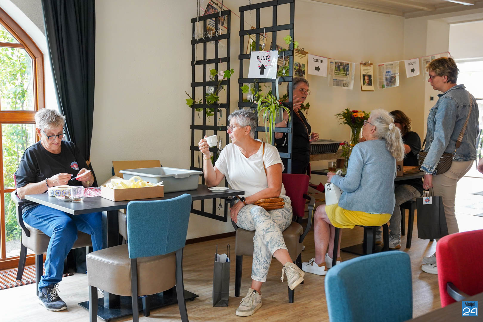 Het begon iets meer dan 10 jaar geleden. De (vaste!) telefoon ging. Wilmy belt met Bertine, of ze even op de koffie mocht komen. “En oh ja, weet jij wie ik ben?” Dat wist ze niet, maar welkom was ze natuurlijk wel. Enkele maanden daarvoor had Bertine een ondernemersplan uitgewerkt voor het destijds leeg liggende oude gemeentehuis. Wilmy had van haar plannen gehoord en liep al een tijdje met vergelijkbare ideeën over zorgbehoefte in Meijel op gebied van dagbesteding. Een half jaar na deze ‘goej tas koffie’ gaven de dames elkaar een hand bij de KvK en Oppe Koffie was geboren.