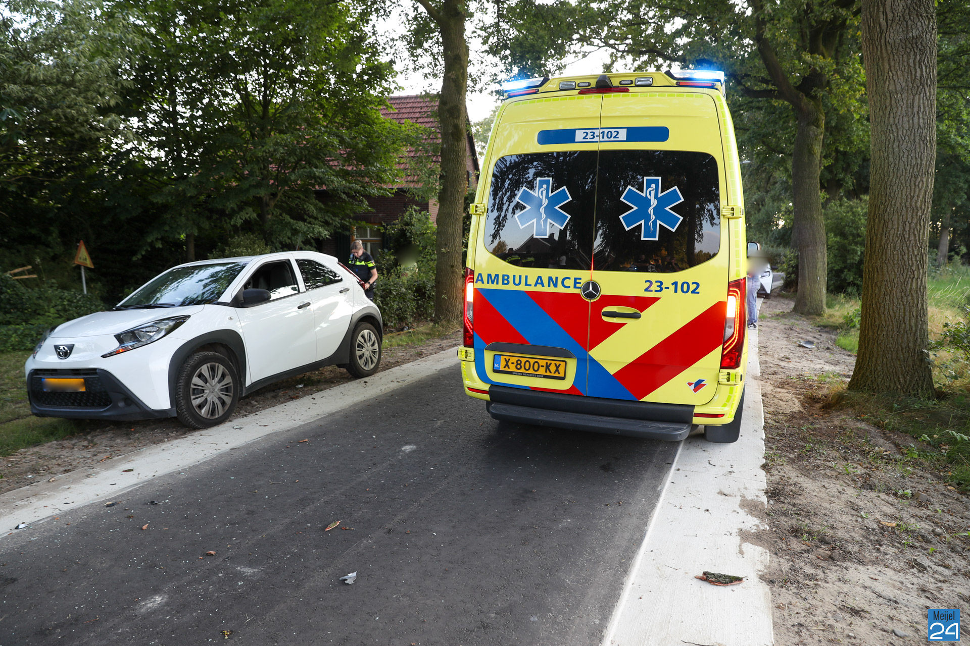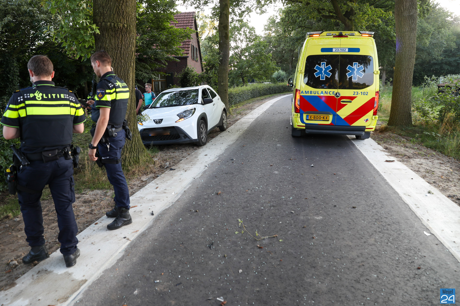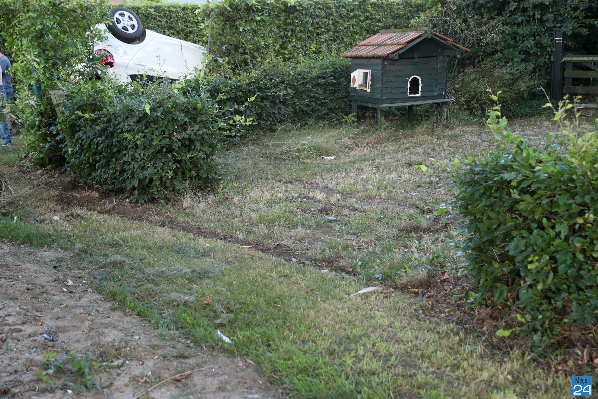 Het ongeval gebeurde rond kwart over acht. De bestuurder raakte door onbekende oorzaak een boom, vloog door de tuin van een woning en kwam op de kop aan de andere kant van een heg tot stilstand. In het voertuig zaten vier personen. Eén vrouw is lichtgewond geraakt en per ambulance overgebracht naar het ziekenhuis voor verdere behandeling.