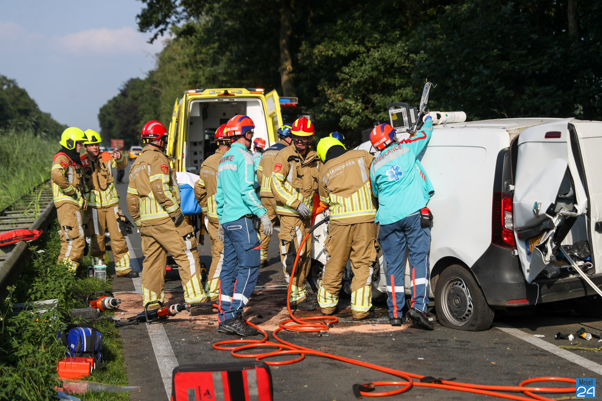 Veel hulpdiensten kwamen snel ter plaatse. Ook werd een traumahelikopter opgeroepen. De brandweer heeft de auto open moeten knippen om de bestuurder uit het voertuig te kunnen bevrijden. Het slachtoffer is daarna met ambulance naar het ziekenhuis gebracht.