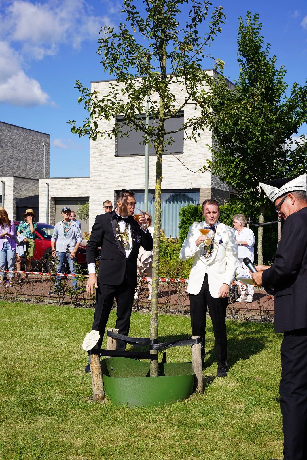 Prins Jarno I had de eer om de ‘Kieveloeëtenbóm’ te dopen zodat het bos officieel geopend is. Vervolgens was het aan burgemeester Delissen om samen met wethouder Tijs Van Lierop onder toeziend oog van vele belangstellenden, bestuur, leden en natuurlijk oud prinsen de onthulling te verrichten van het informatiebord mét QR code.