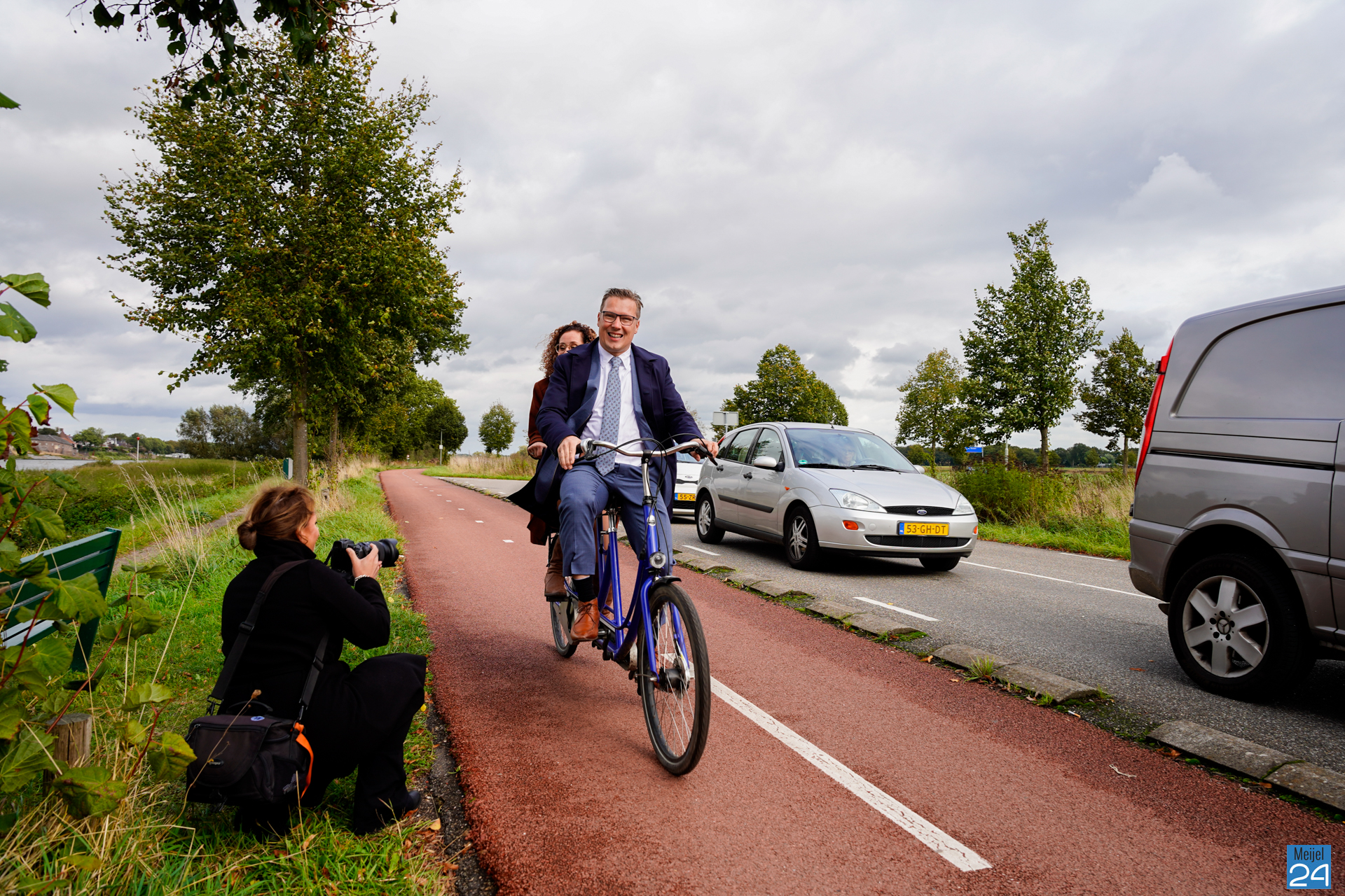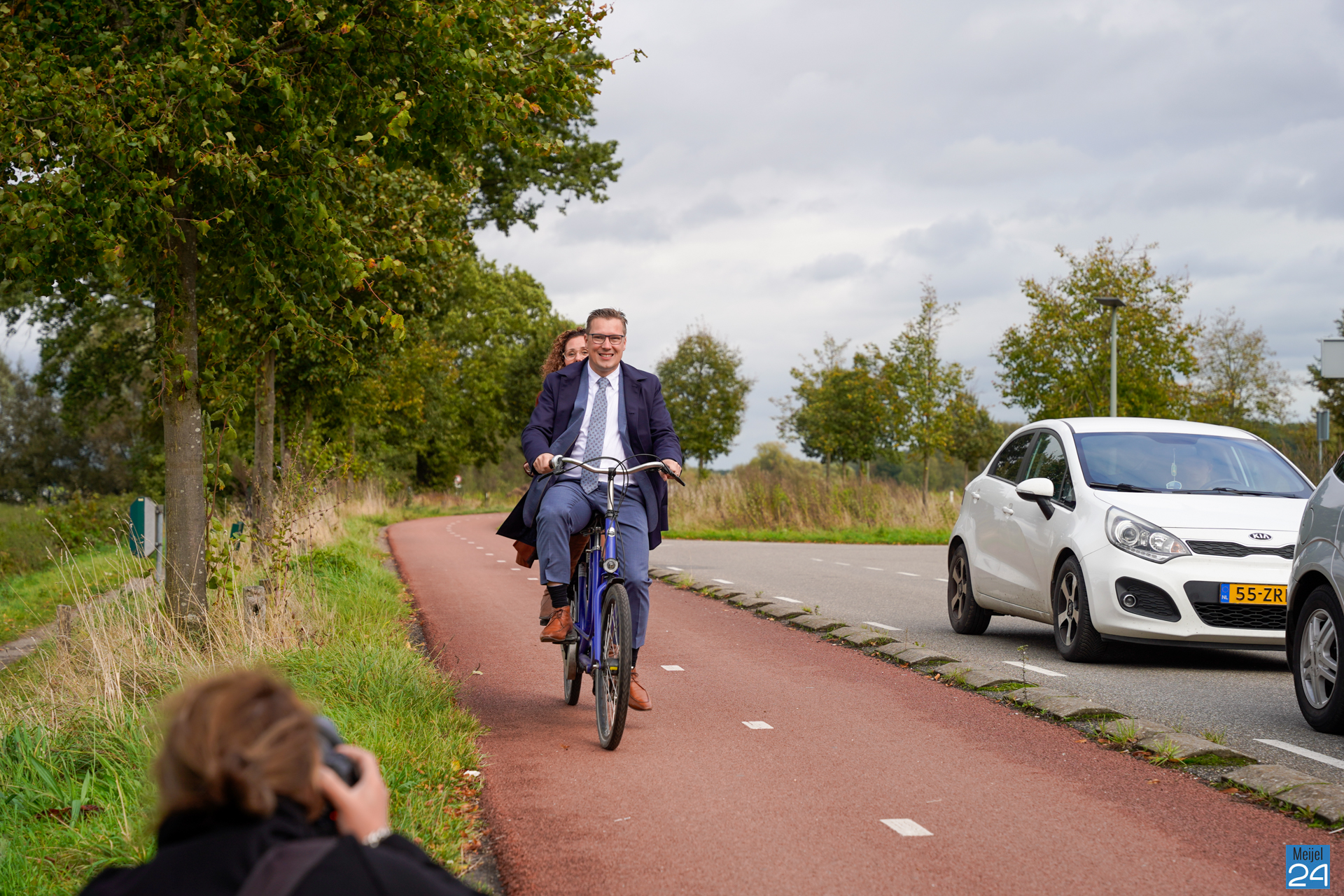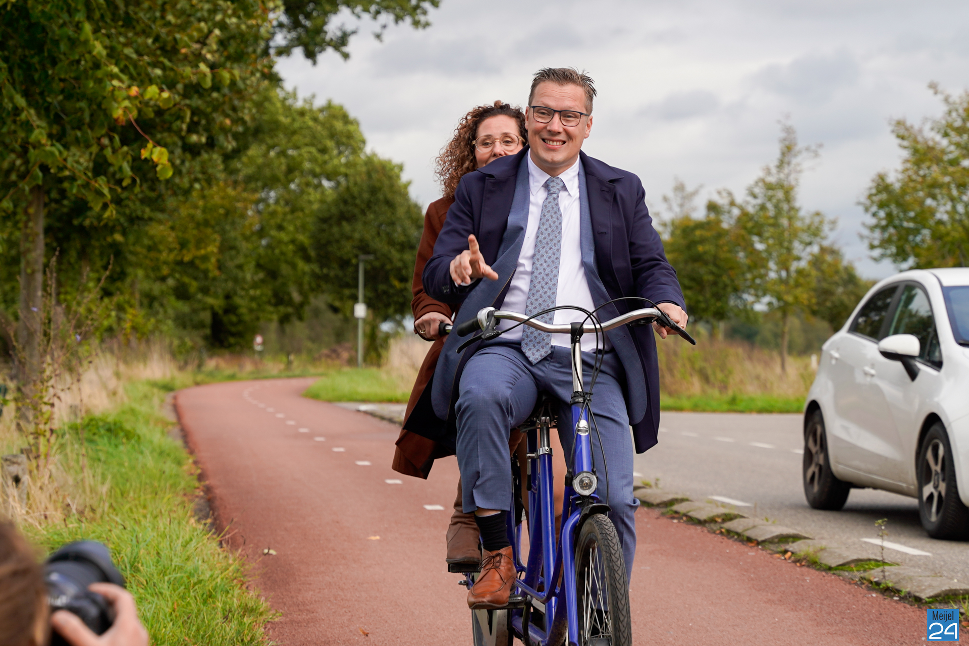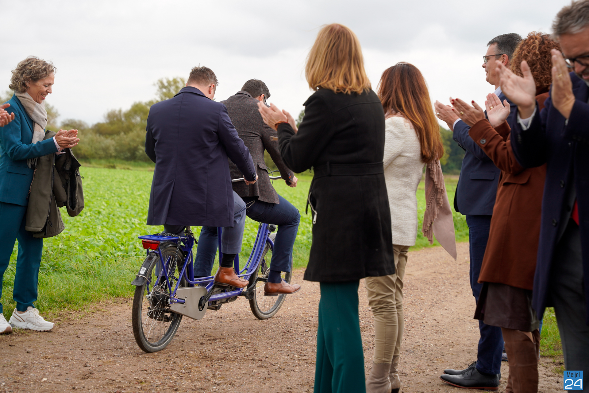 Op een tandem kwamen Vostermans en gemeentesecretaris van de gemeente Beesel, Rick Nillesen aan. Aldaar stond een tentje klaar met een hapje en een drankje. Vervolgens stapte de nieuwe burgemeester weer op de fiets, maar nu samen met gemeentesecretaris van Peel en Maas, Kirsten Werps. Samen zijn ze op dit moment onderweg naar het Huis van de Gemeente in Panningen waar vanavond de installatie plaatsvindt.